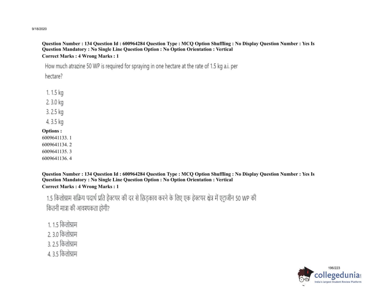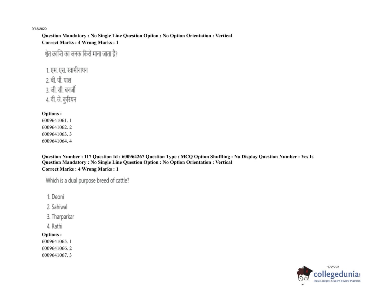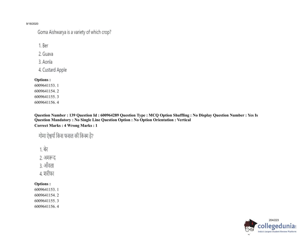 ICAR AIEEA 2020 UG - PCA Question Paper with Answer Key PDFs