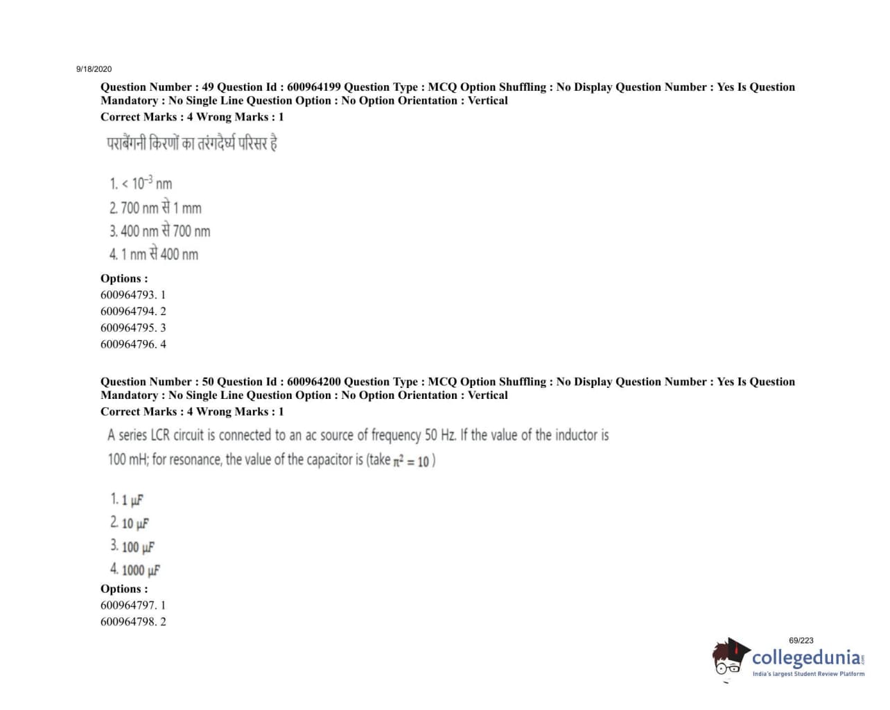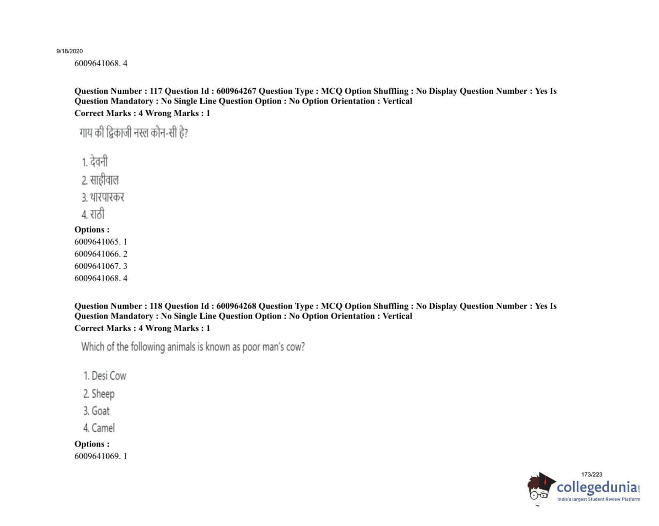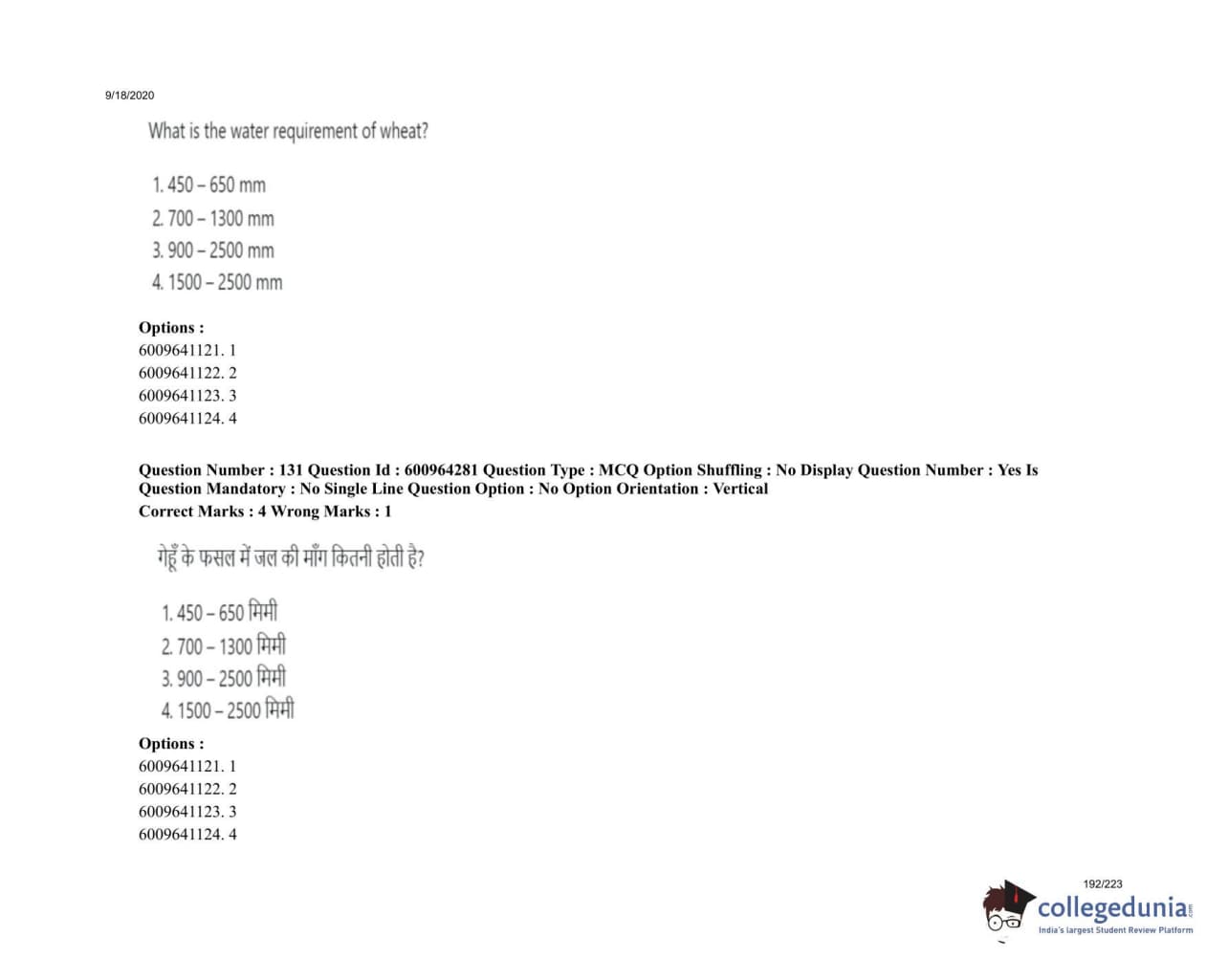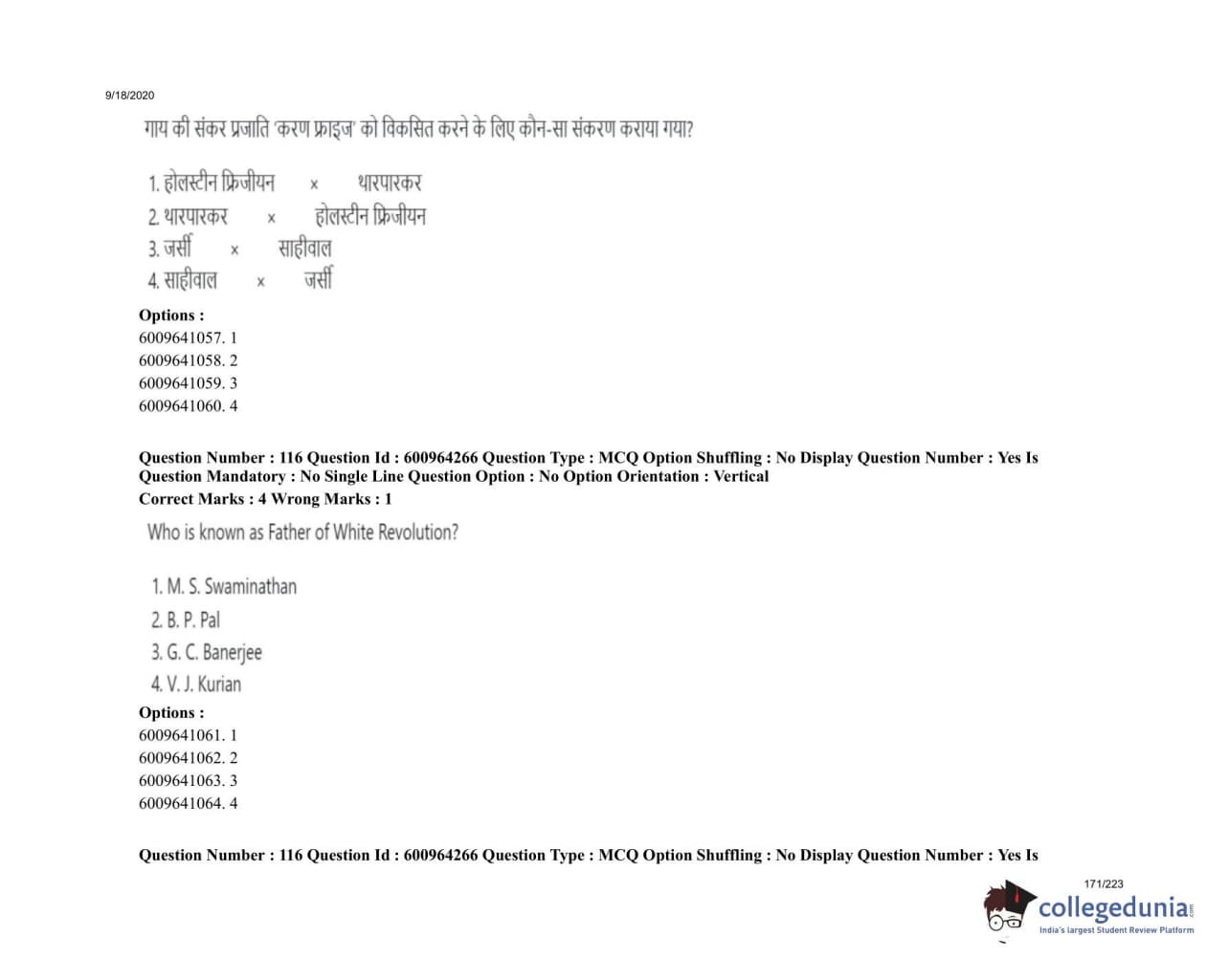 ICAR AIEEA 2020 UG - PCA Question Paper with Answer Key PDFs
