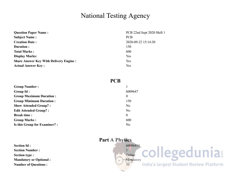 ICAR AIEEA 2020 UG - PCB Question paper with answer key pdf conducted on September 22, 2020 is available for download. The exam was successfully organized by National Testing Agency (NTA). In terms of difficulty level, ICAR AIEEA was of Moderate to Tough level. The question paper comprised a total of 150 questions divided among three sections.