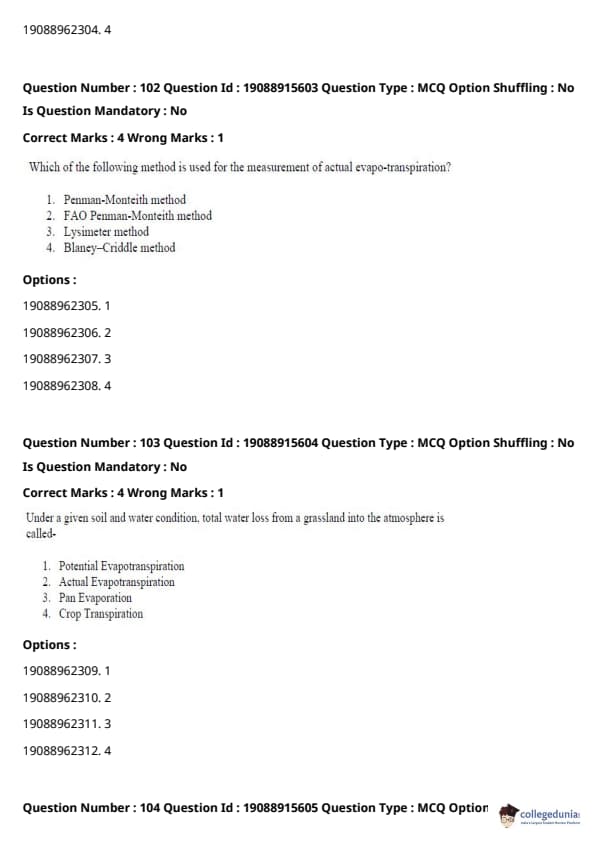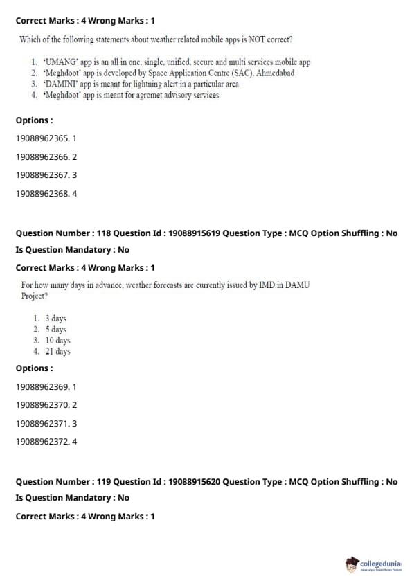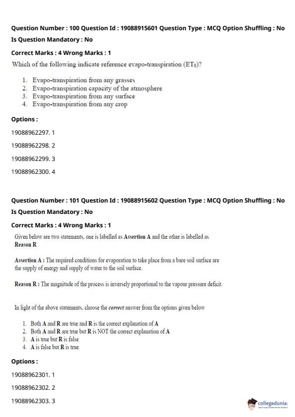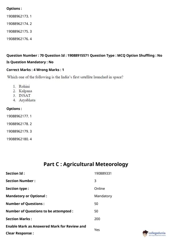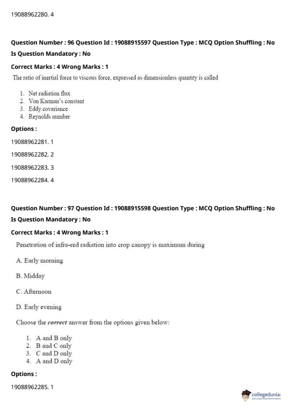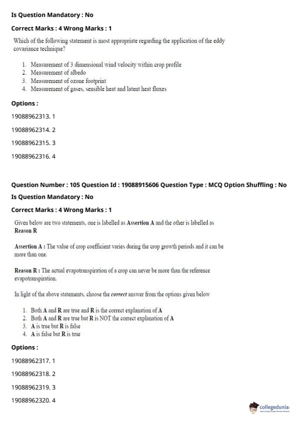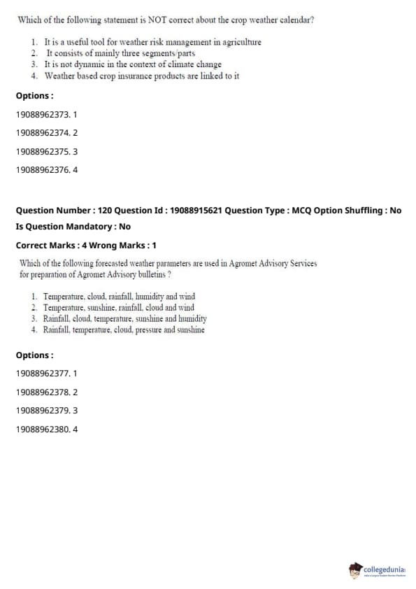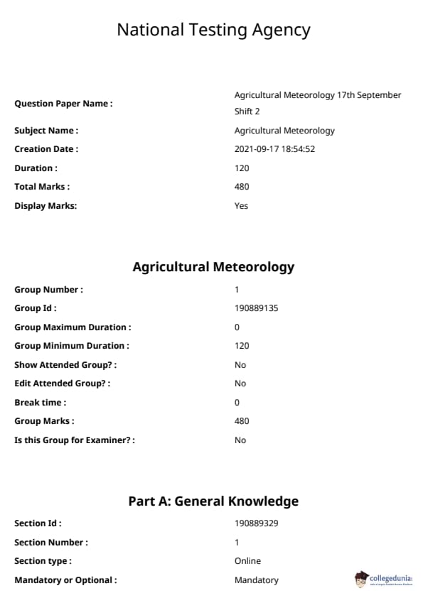 ICAR AIEEA 2021 JRF - AGRICULTURAL METEOROLOGY Question paper with answer key pdf conducted on September 17, 2021 in Afternoon Session is available for download. The exam was successfully organized by National Testing Agency (NTA). The question paper comprised a total of 120 questions.