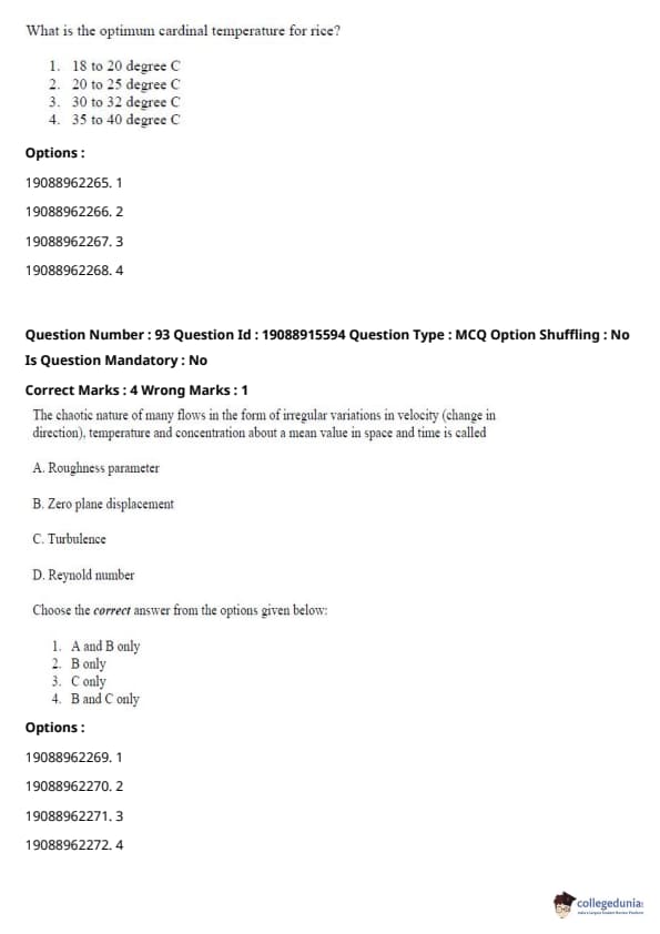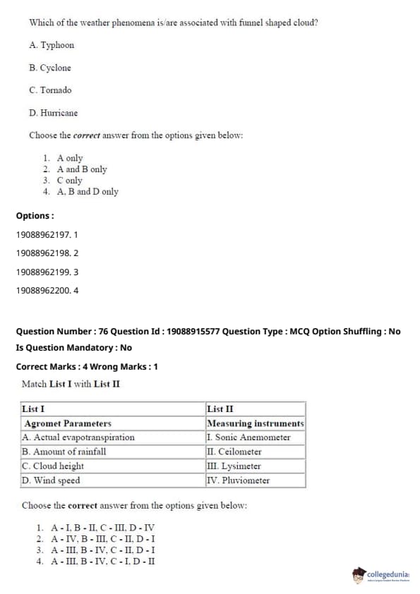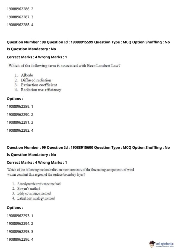 ICAR AIEEA 2021 JRF - AGRICULTURAL METEOROLOGY Question Paper with Answer Key PDFs Afternoon Session