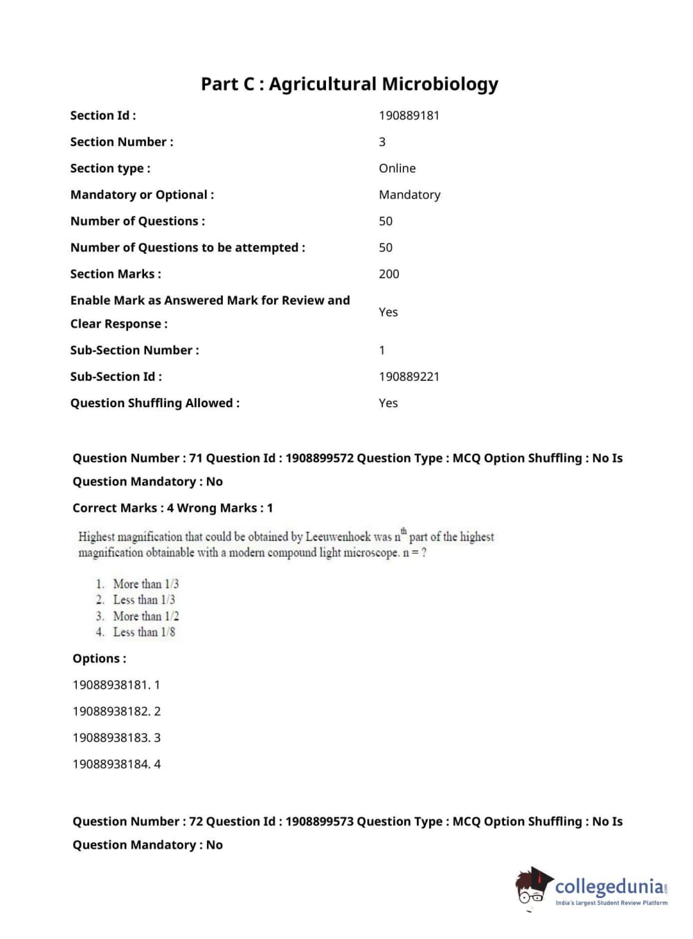 | ICAR AIEEA 2021 JRF - AGRICULTURAL MICROBIOLOGY Question Paper PDF | ICAR AIEEA 2021 JRF - AGRICULTURAL MICROBIOLOGY Answer Key PDF |