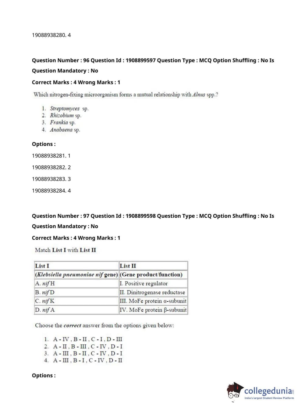 ICAR AIEEA 2021 JRF - AGRICULTURAL MICROBIOLOGY Question Paper with Answer Key PDFs Afternoon Session