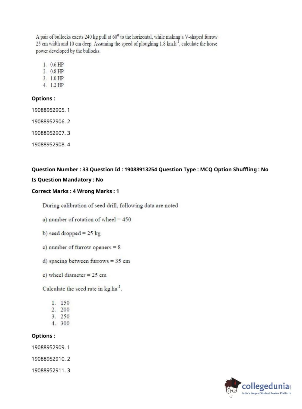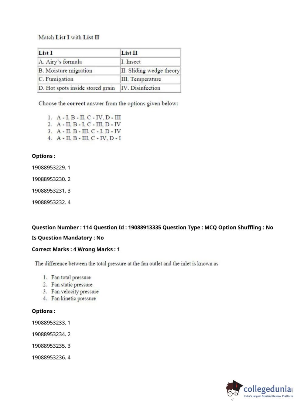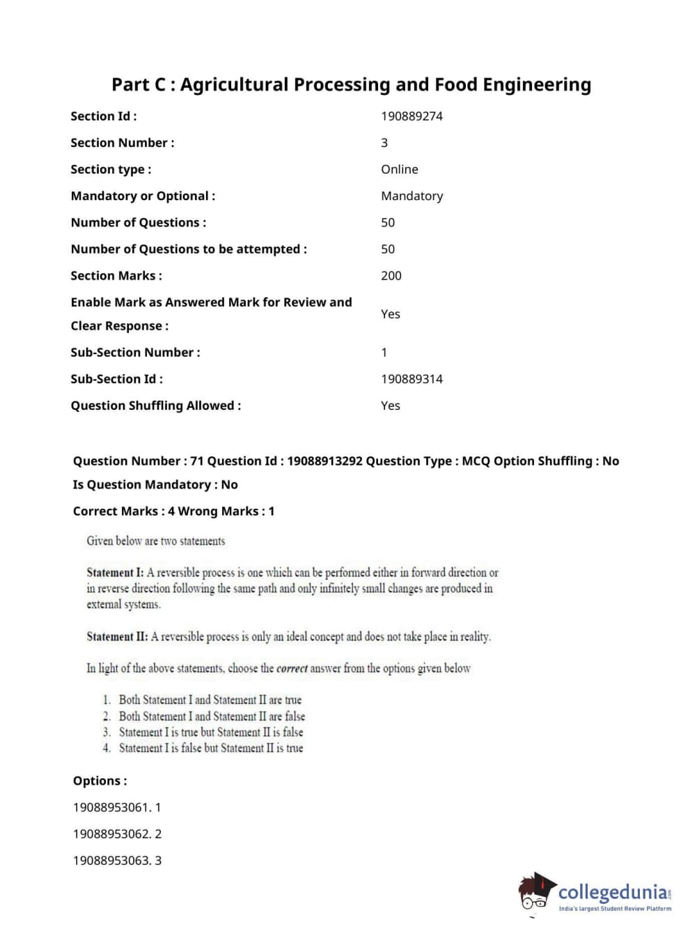 ICAR AIEEA 2021 JRF - AGRICULTURAL PROCESSING AND FOOD ENGINEERING Question Paper with Answer Key PDFs Afternoon Session