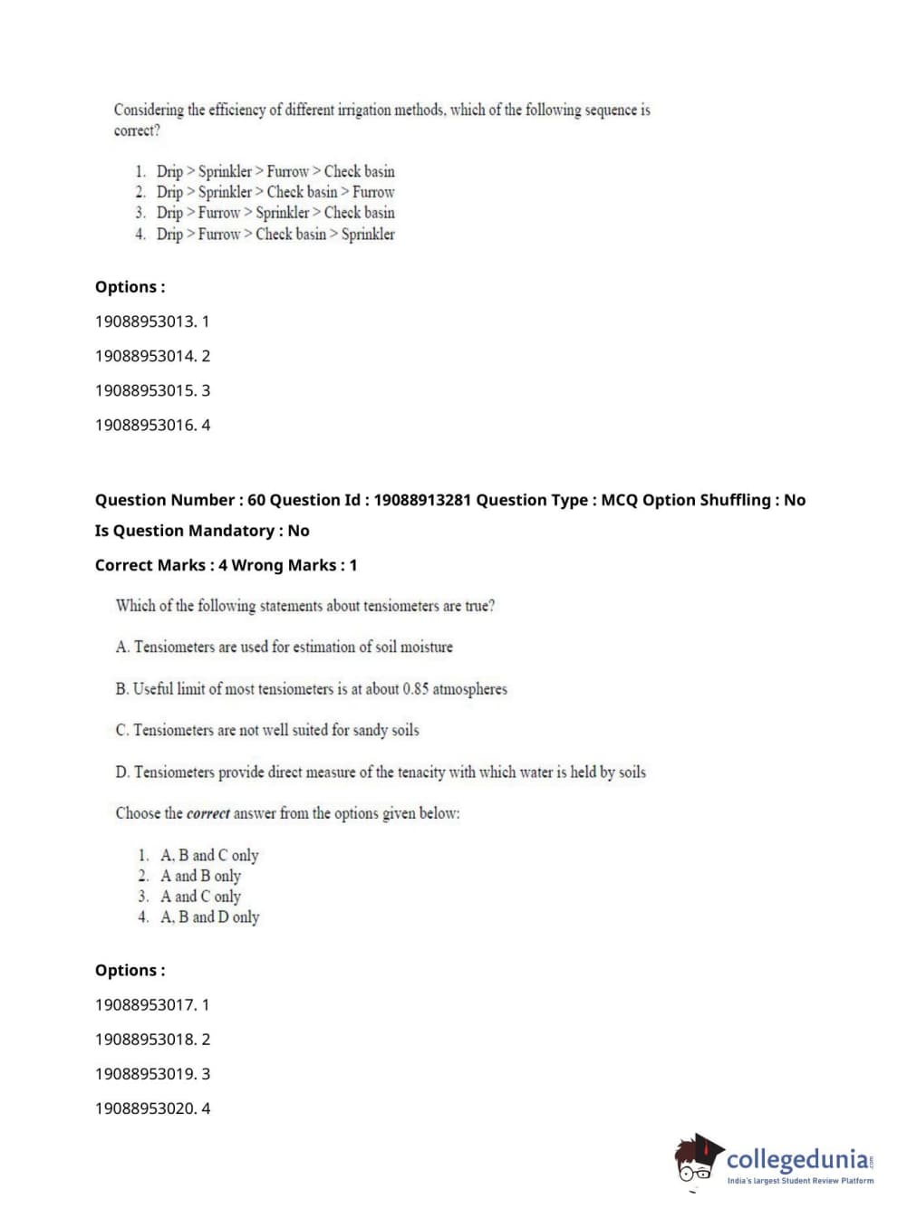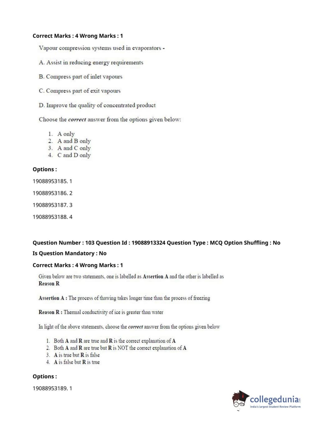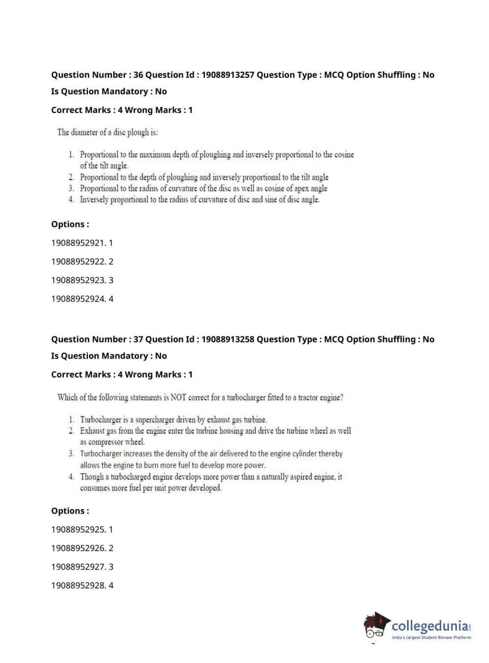 ICAR AIEEA 2021 JRF - AGRICULTURAL PROCESSING AND FOOD ENGINEERING Question Paper with Answer Key PDFs Afternoon Session