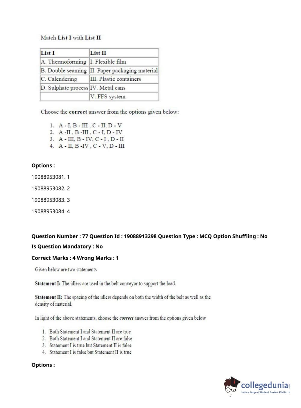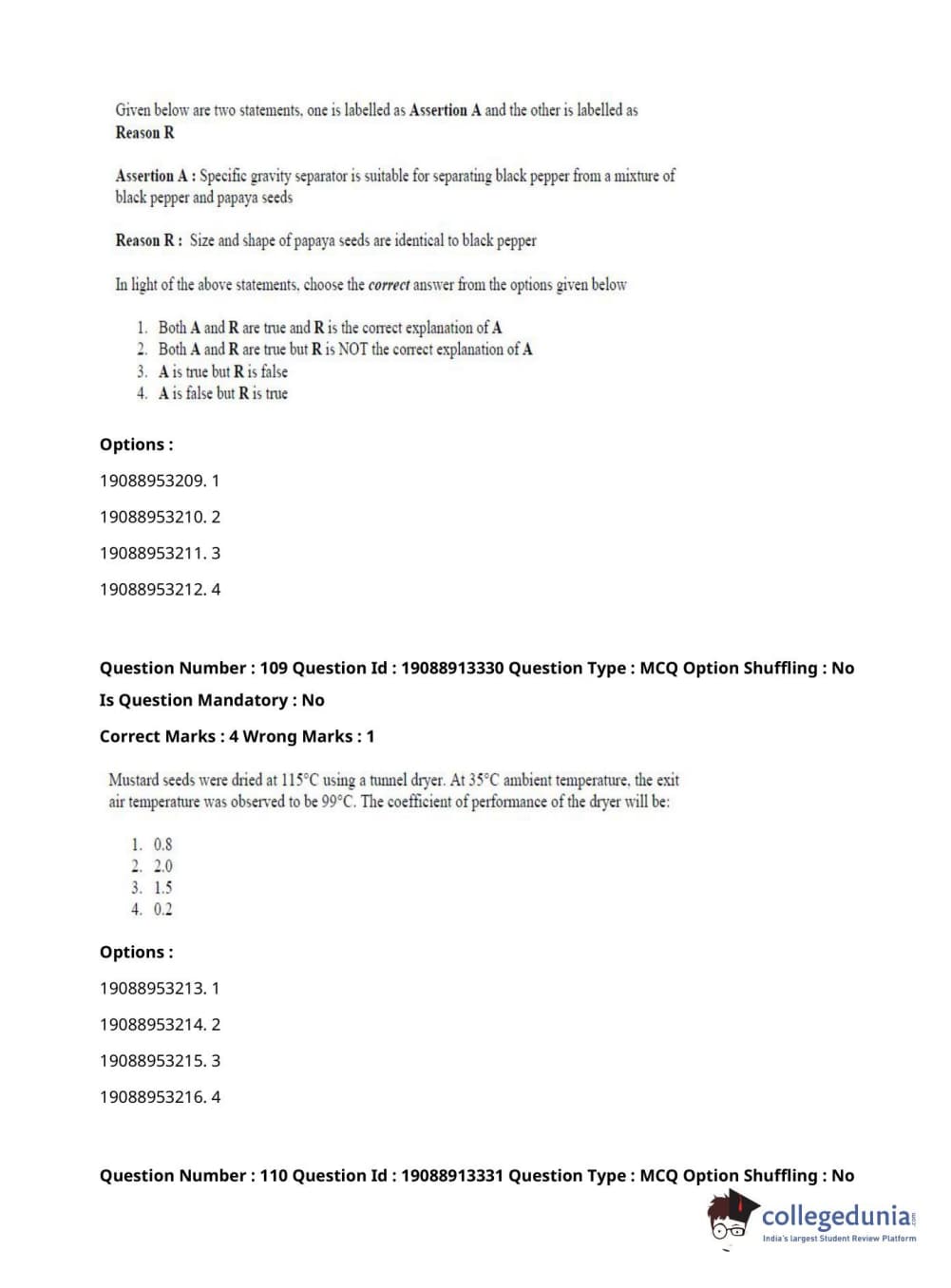 ICAR AIEEA 2021 JRF - AGRICULTURAL PROCESSING AND FOOD ENGINEERING Question paper with answer key pdf conducted on September 17, 2021 in Afternoon Session is available for download. The exam was successfully organized by National Testing Agency (NTA). The question paper comprised a total of 120 questions.