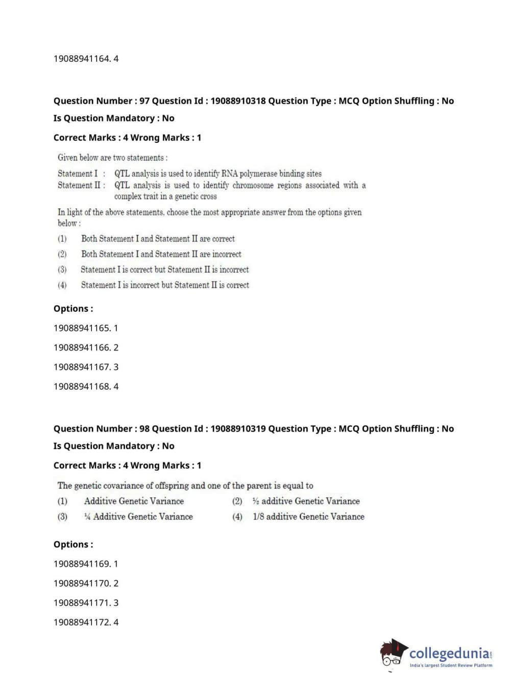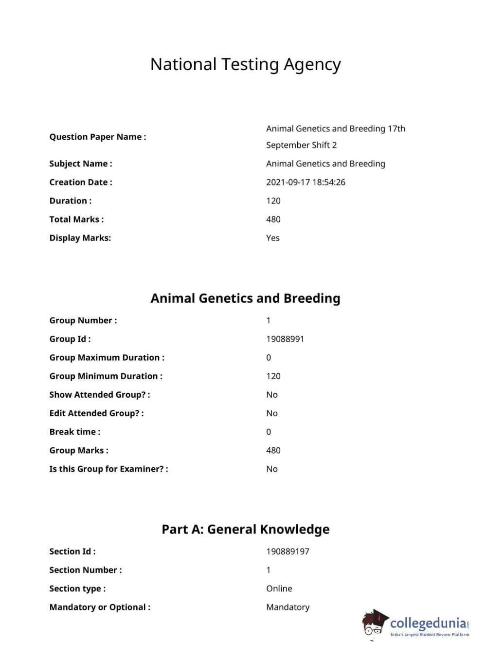 ICAR AIEEA 2021 JRF - ANIMAL GENETICS AND BREEDING Question paper with answer key pdf conducted on September 17, 2021 in Afternoon Session is available for download. The exam was successfully organized by National Testing Agency (NTA). The question paper comprised a total of 120 questions.
