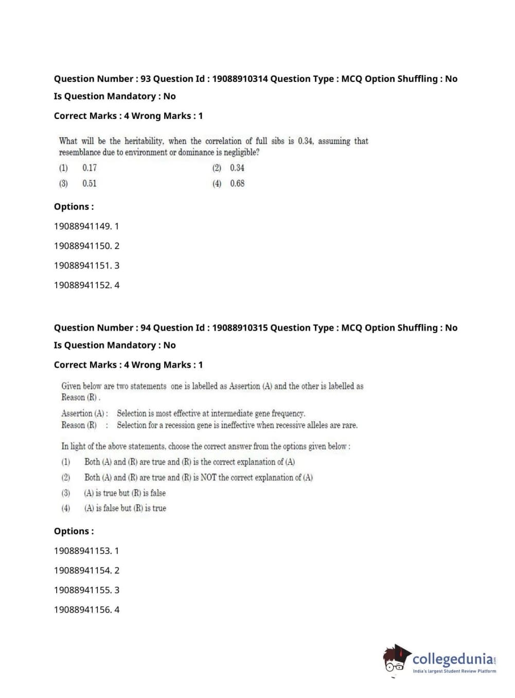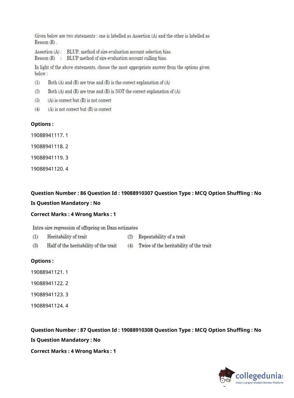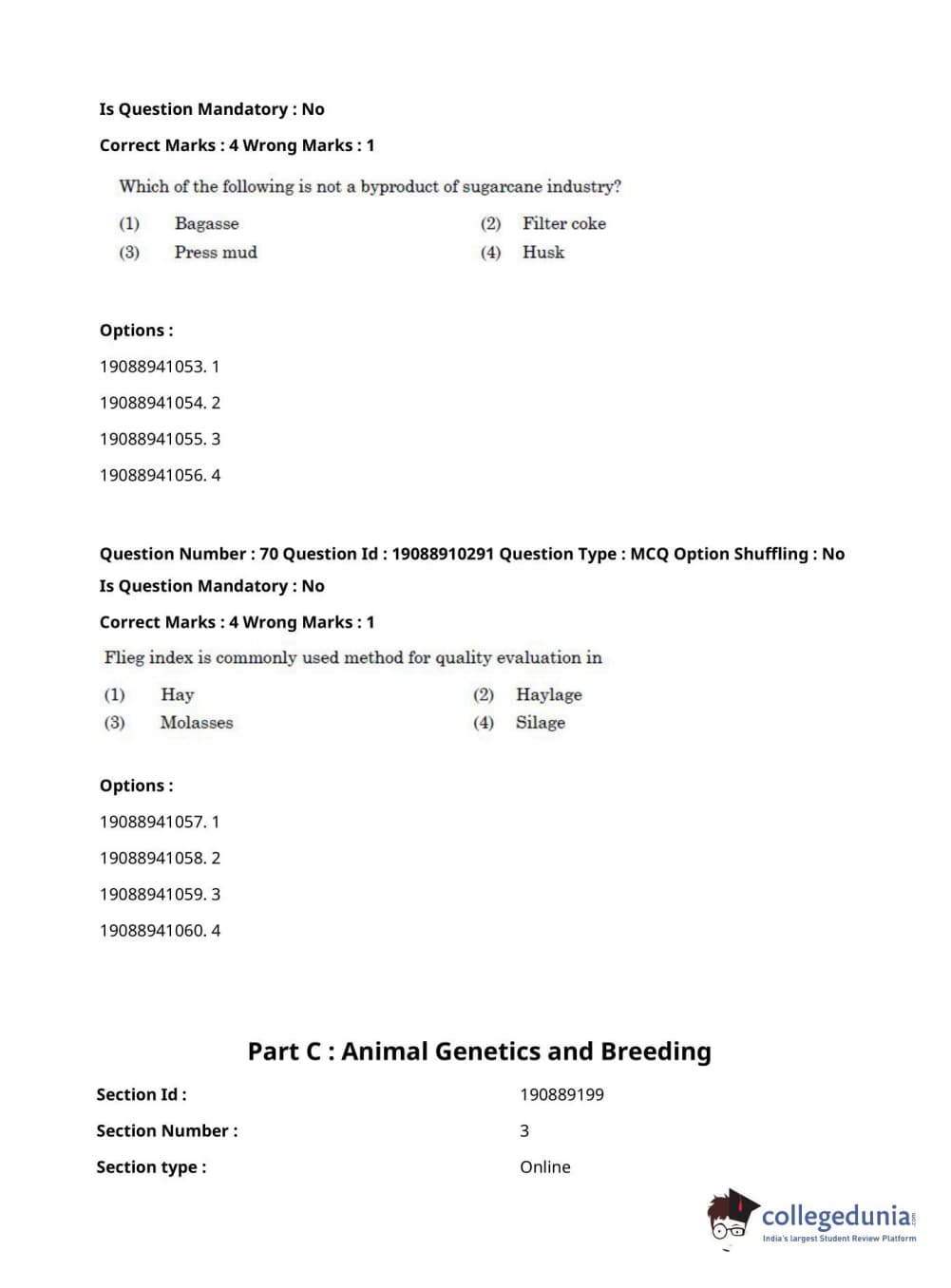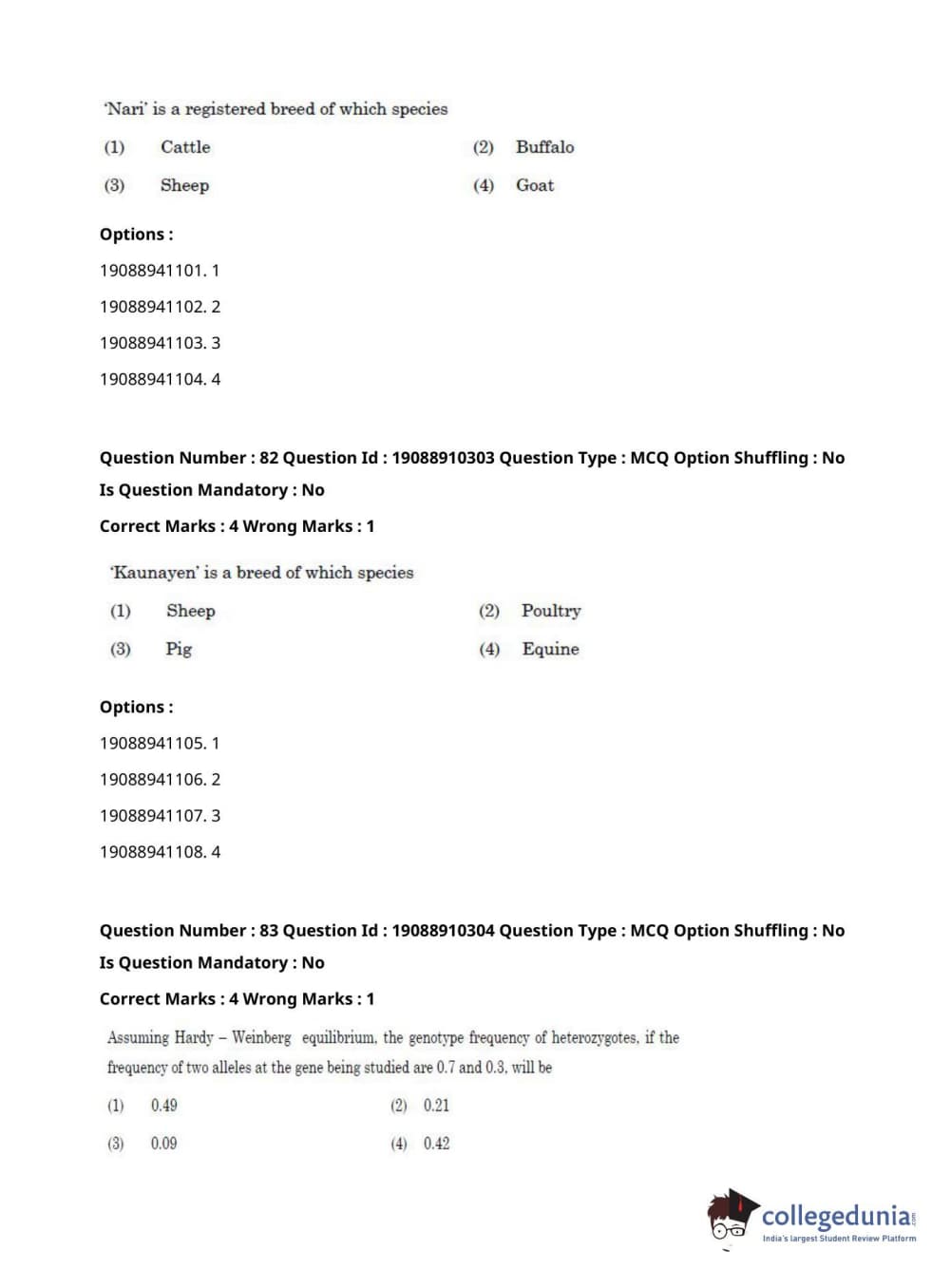 ICAR AIEEA 2021 JRF - ANIMAL GENETICS AND BREEDING Question Paper with Answer Key PDFs Afternoon Session