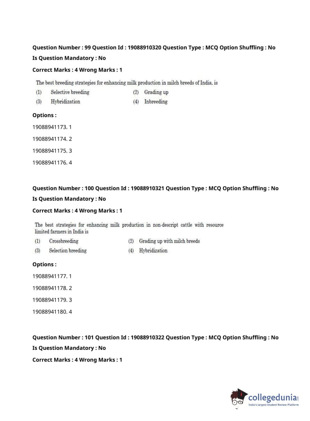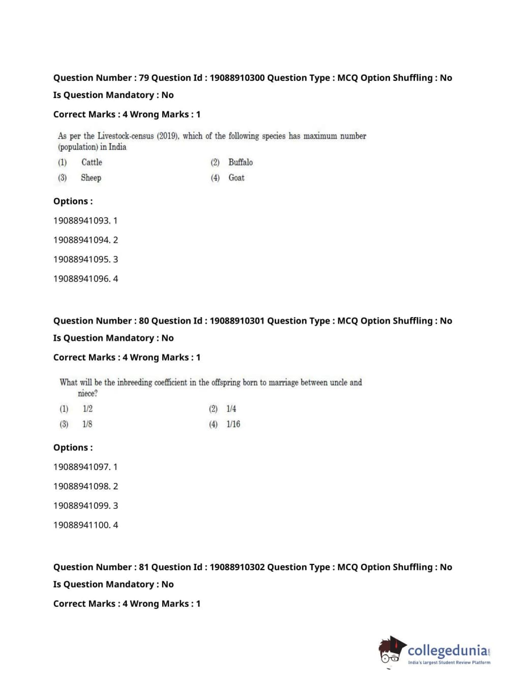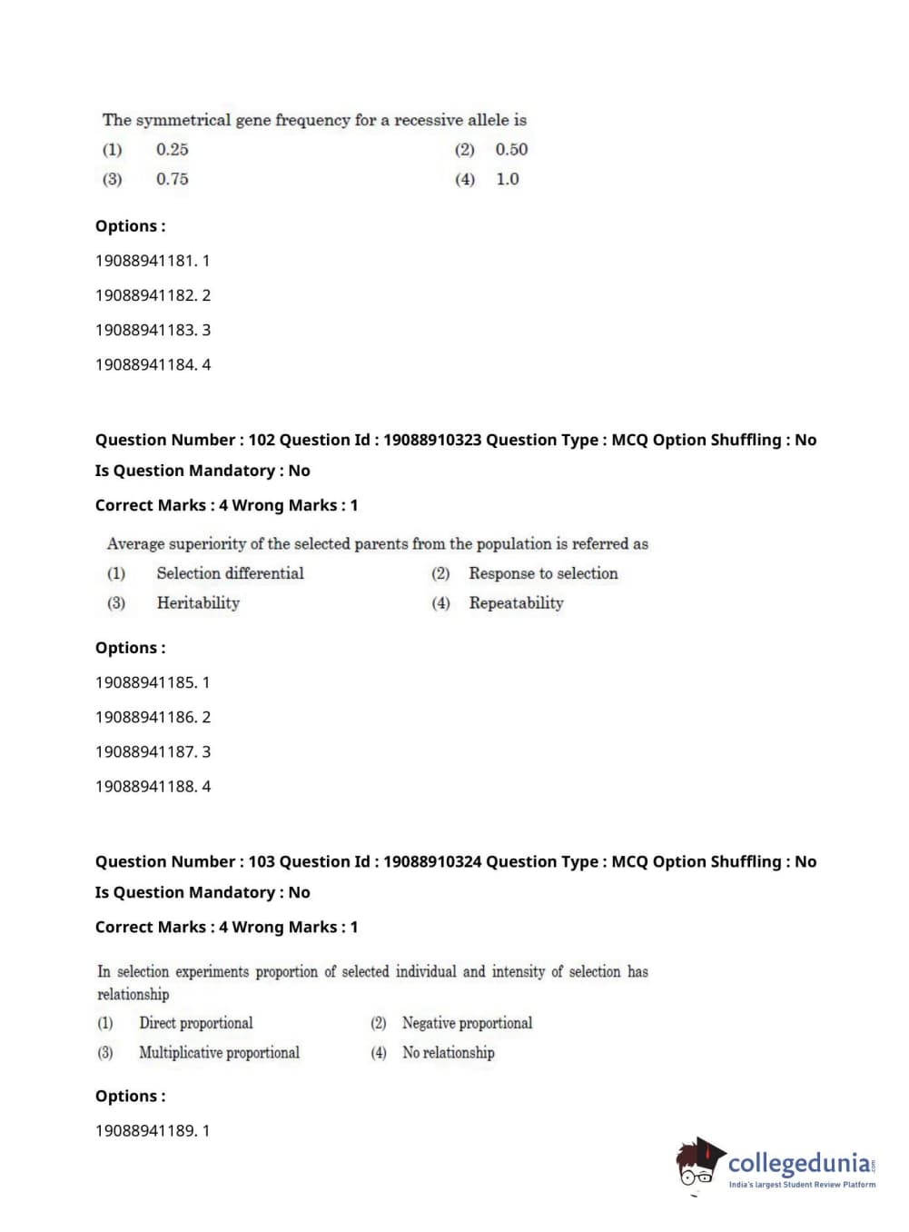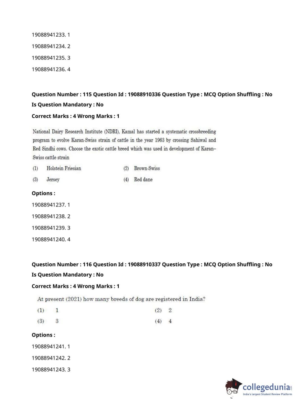 | ICAR AIEEA 2021 JRF - ANIMAL GENETICS AND BREEDING Question Paper PDF | ICAR AIEEA 2021 JRF - ANIMAL GENETICS AND BREEDING Answer Key PDF |