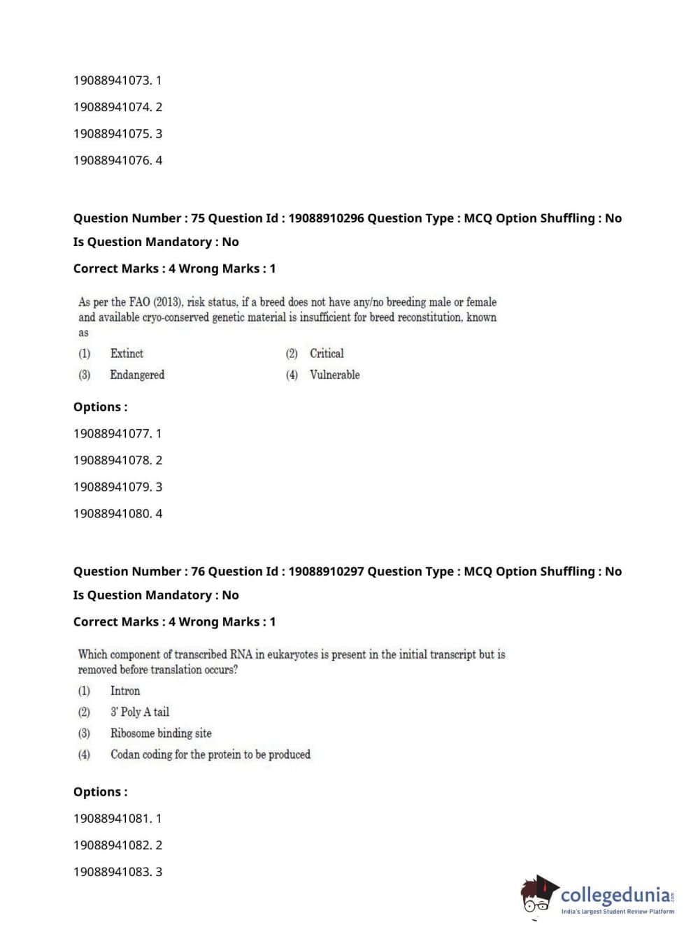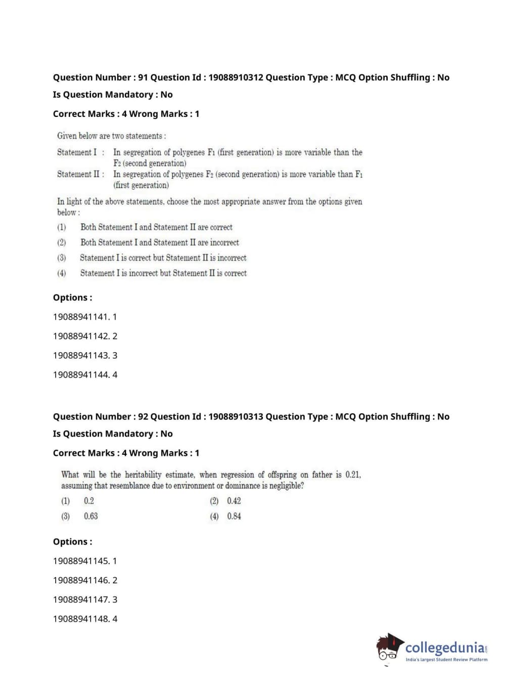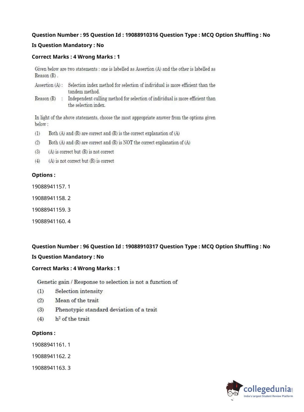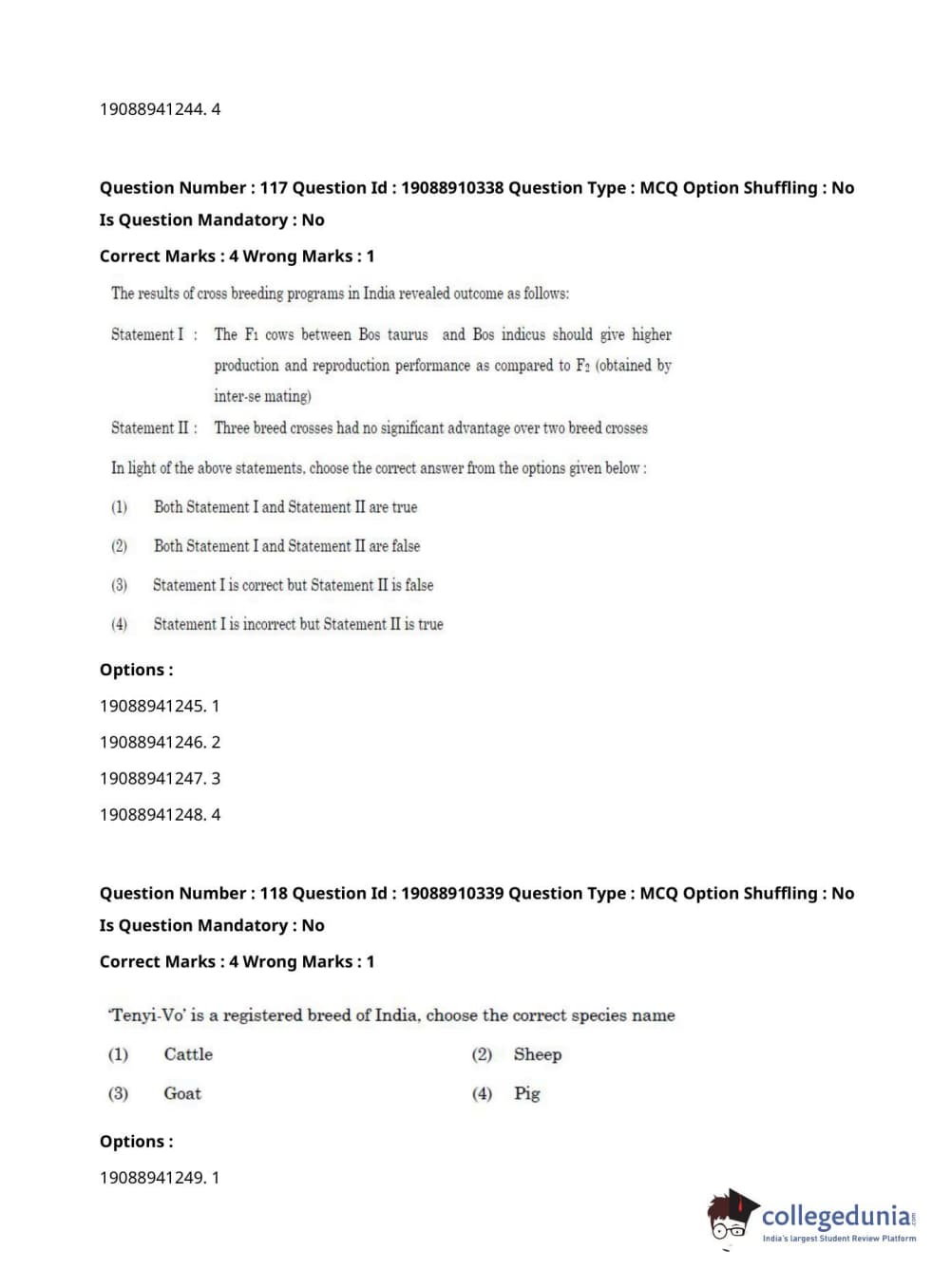 | ICAR AIEEA 2021 JRF - ANIMAL GENETICS AND BREEDING Question Paper PDF | ICAR AIEEA 2021 JRF - ANIMAL GENETICS AND BREEDING Answer Key PDF |