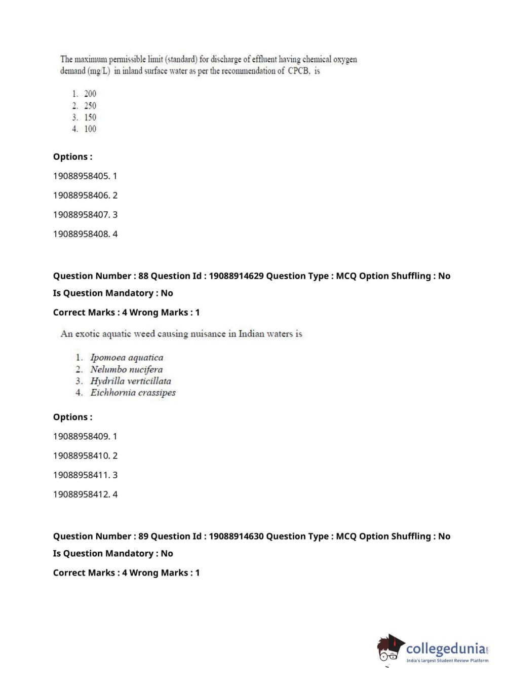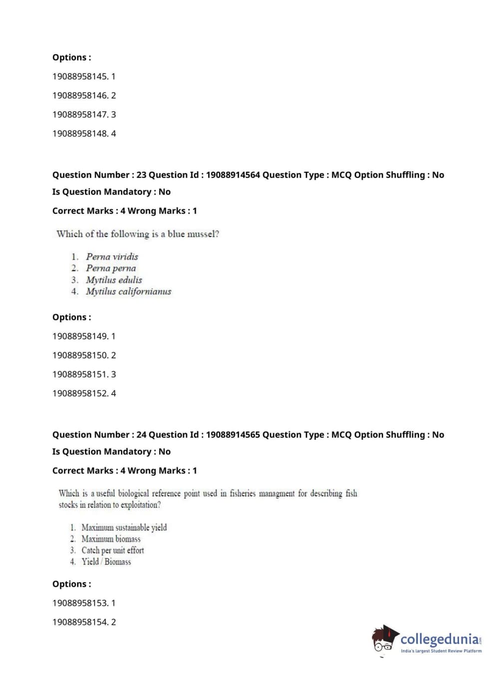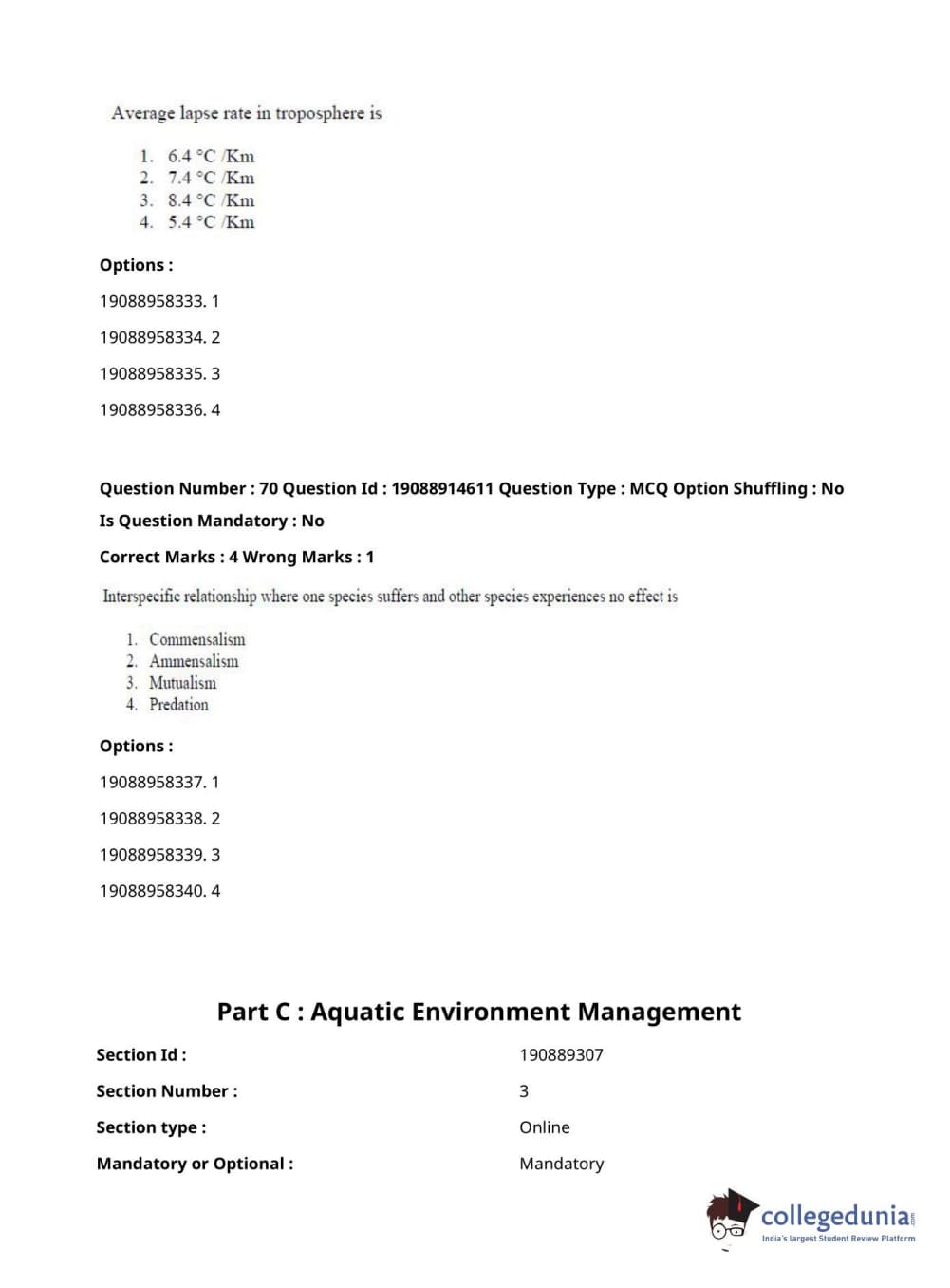 ICAR AIEEA 2021 JRF - AQUATIC ENVIRONMENT MANAGEMENT Question Paper with Answer Key PDFs Afternoon Session