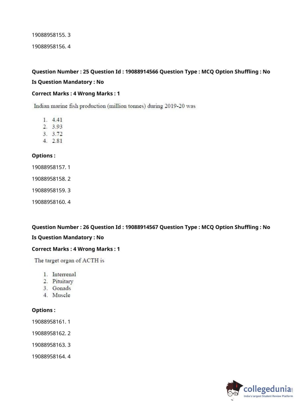 | ICAR AIEEA 2021 JRF - AQUATIC ENVIRONMENT MANAGEMENT Question Paper PDF | ICAR AIEEA 2021 JRF - AQUATIC ENVIRONMENT MANAGEMENT Answer Key PDF |