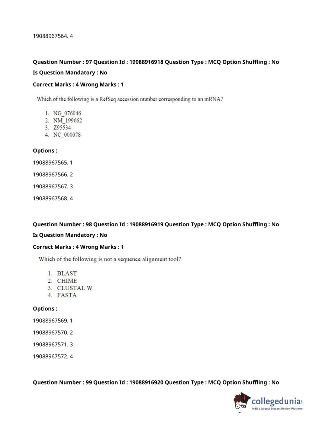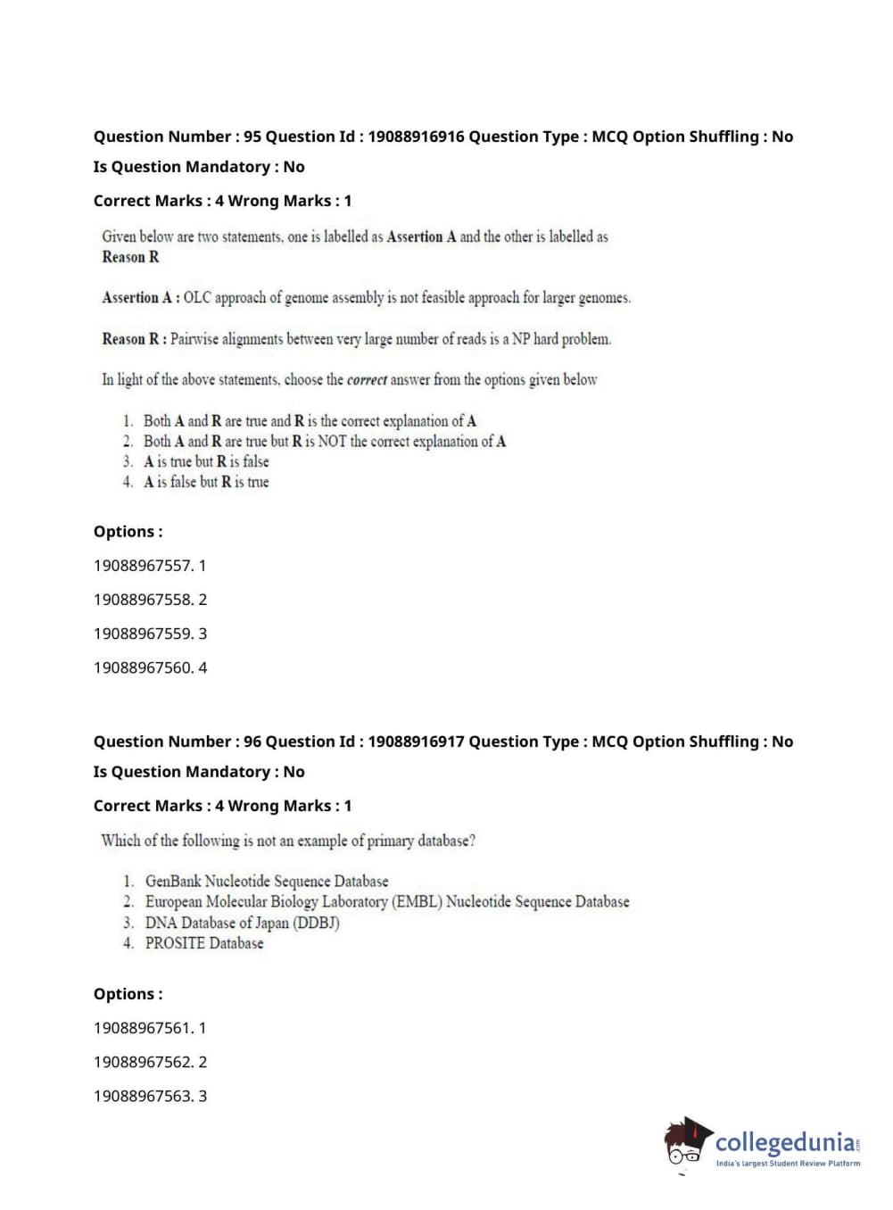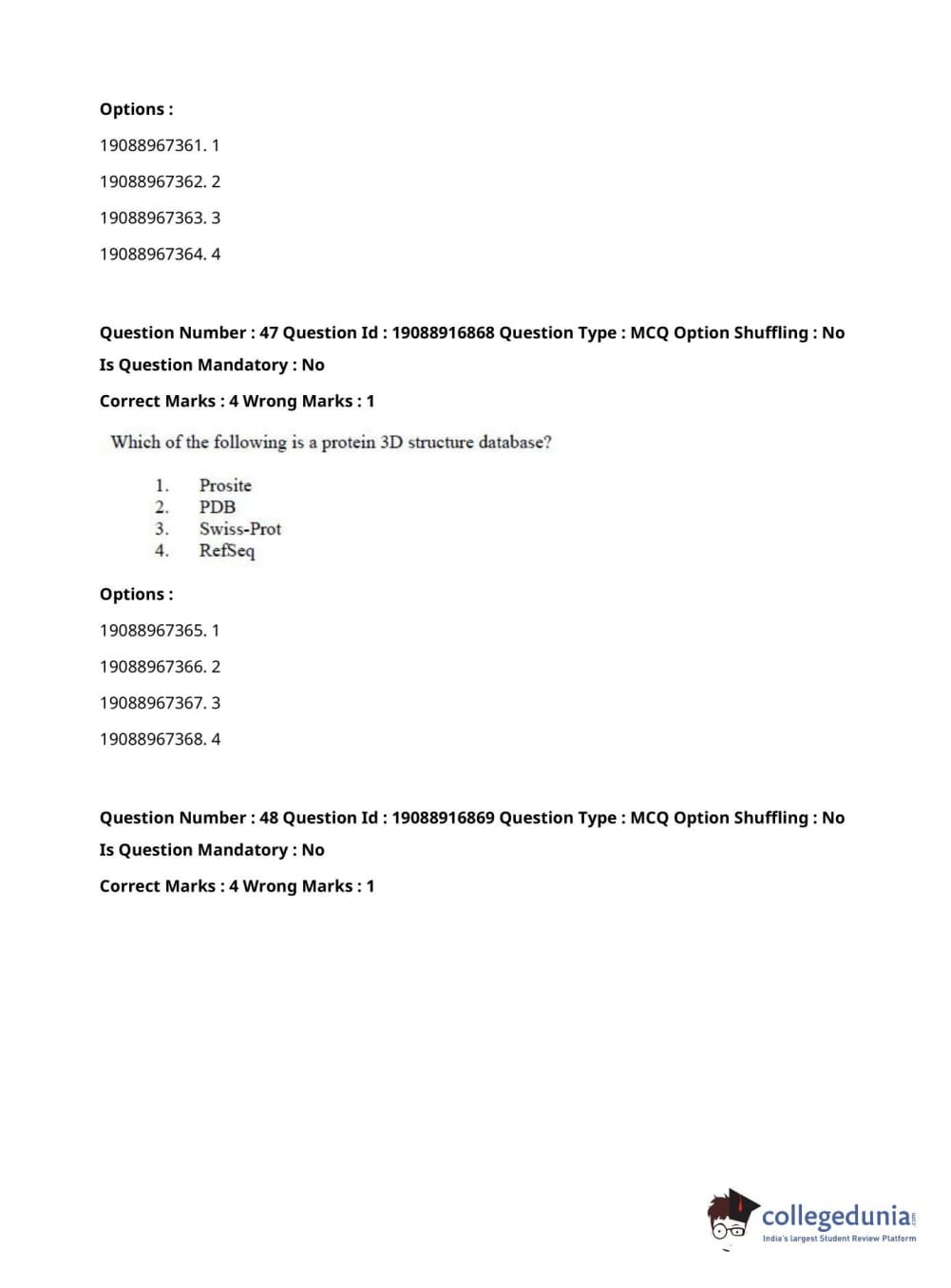 | ICAR AIEEA 2021 JRF - BIOINFORMATICS Question Paper PDF | ICAR AIEEA 2021 JRF - BIOINFORMATICS Answer Key PDF |