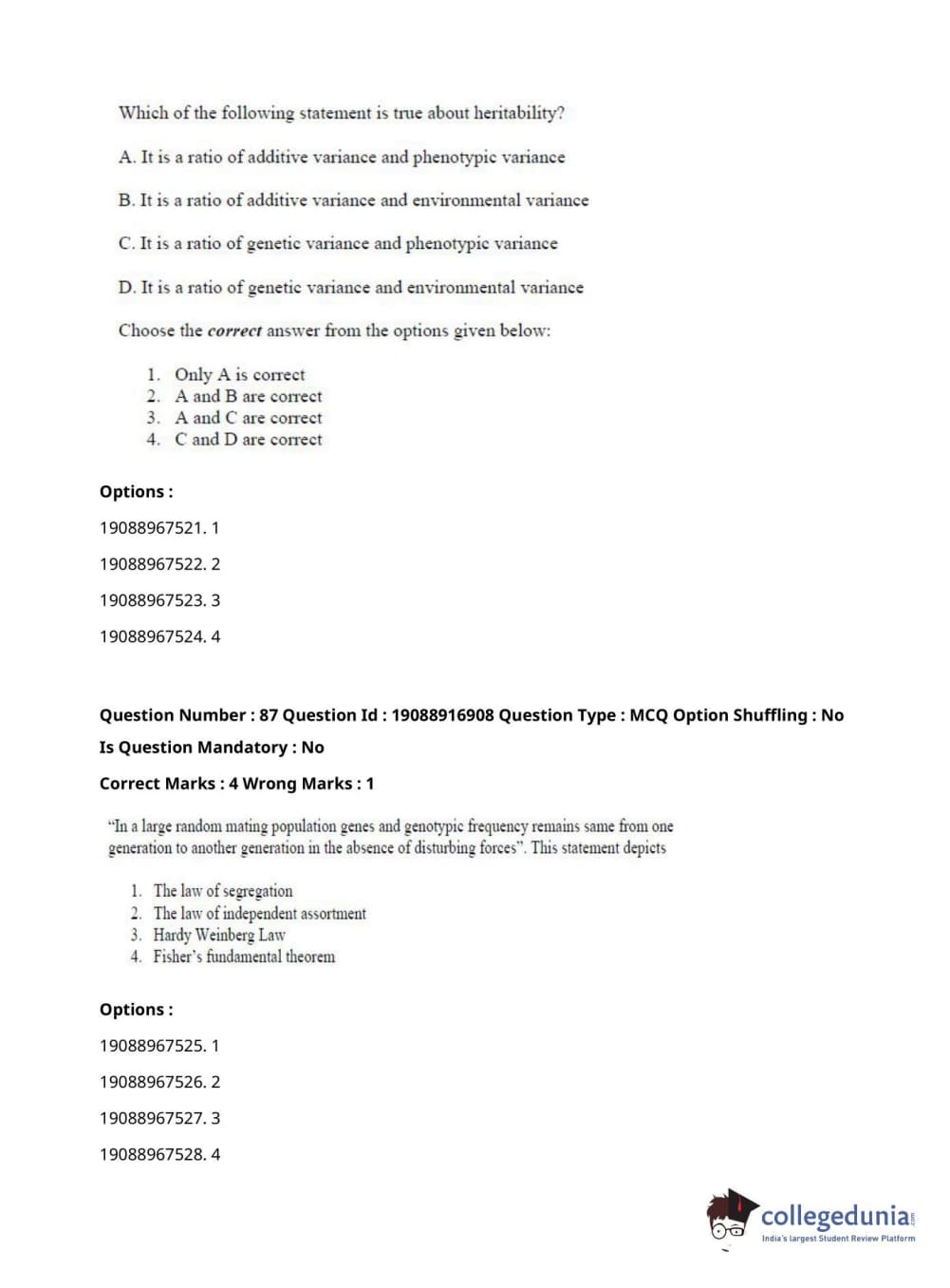 ICAR AIEEA 2021 JRF - BIOINFORMATICS Question Paper with Answer Key PDFs Afternoon Session