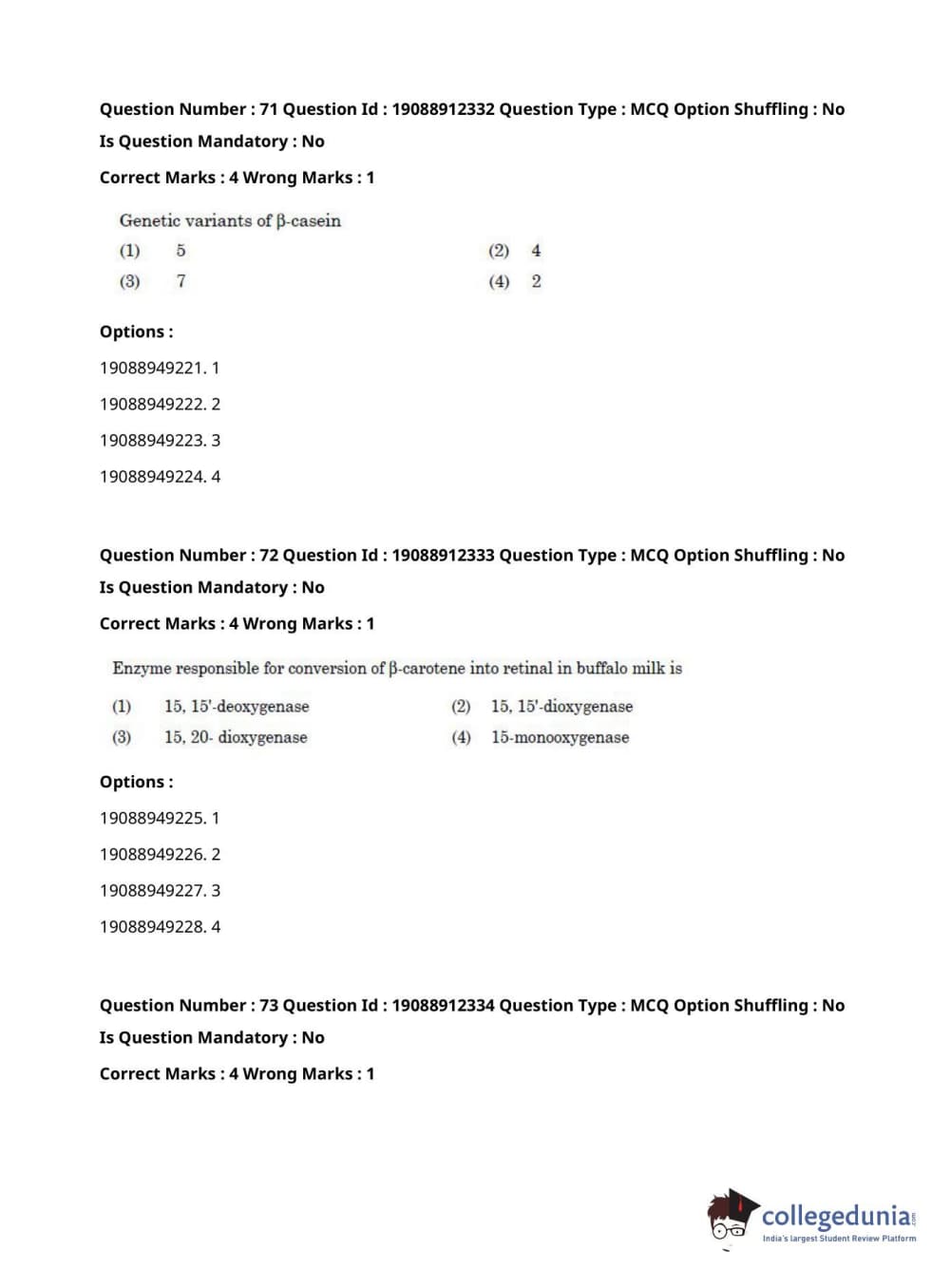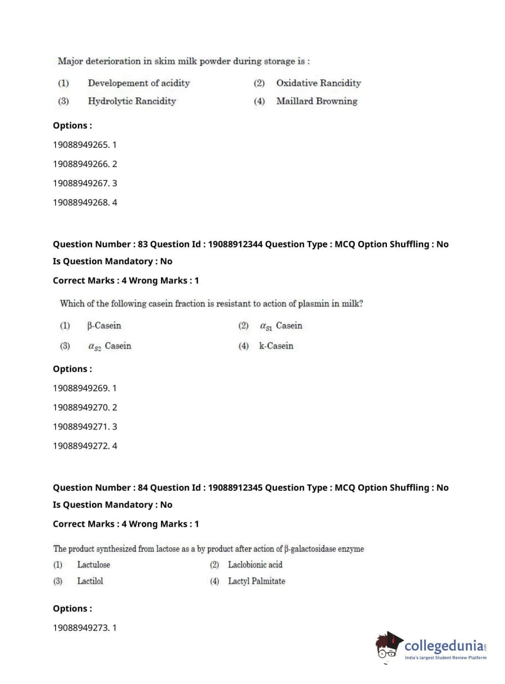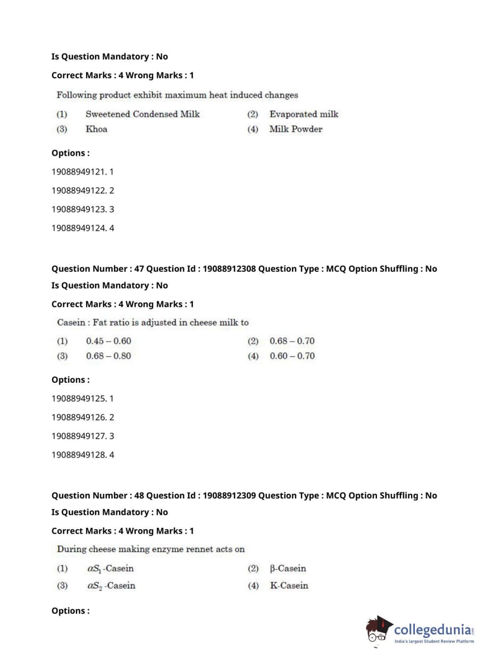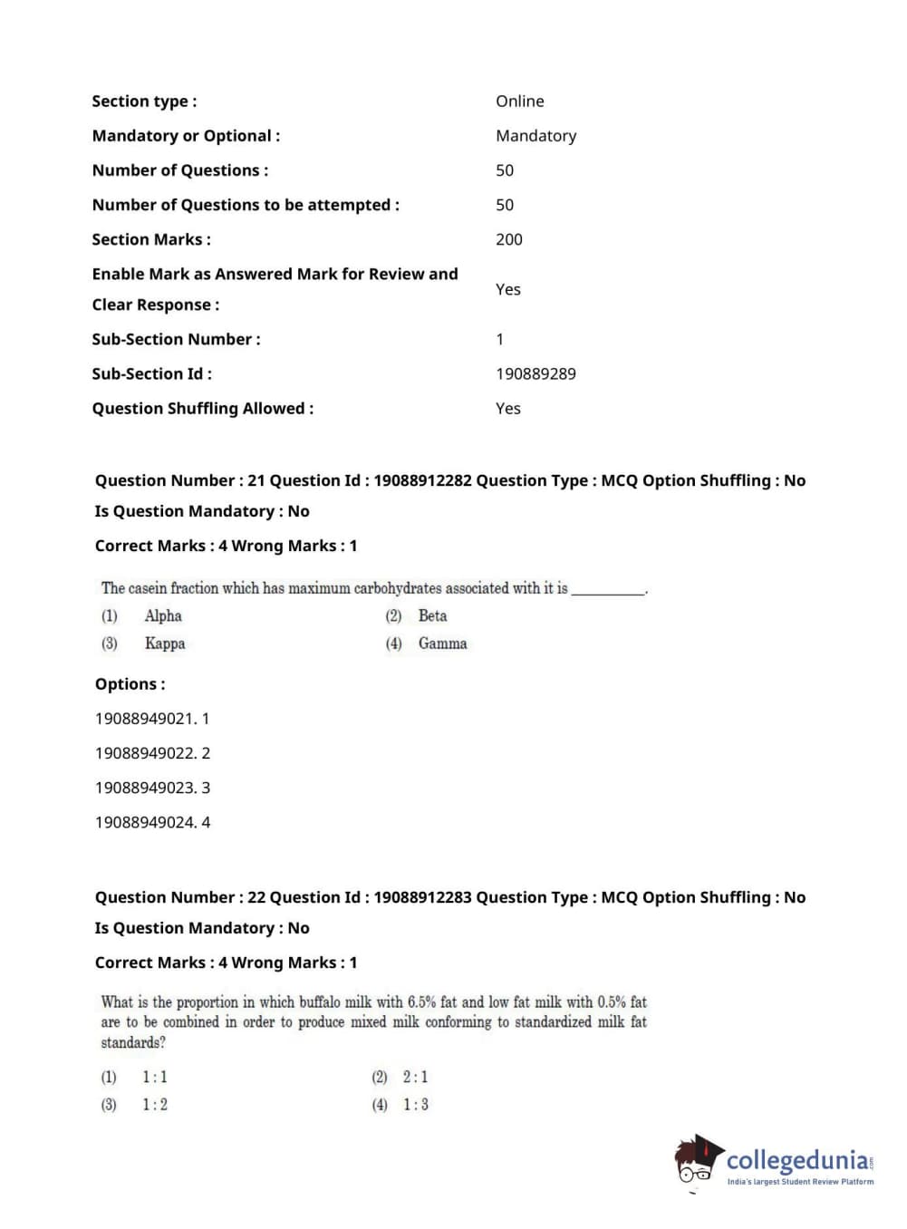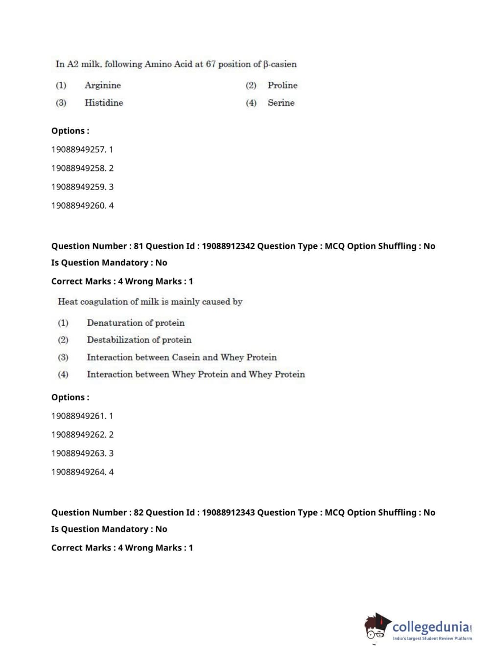 ICAR AIEEA 2021 JRF - DAIRY CHEMISTRY Question Paper with Answer Key PDFs Afternoon Session
