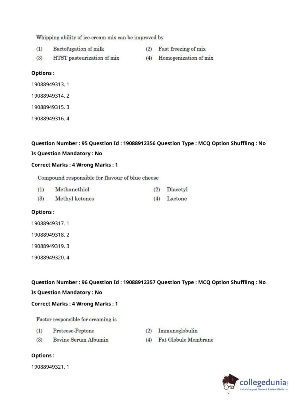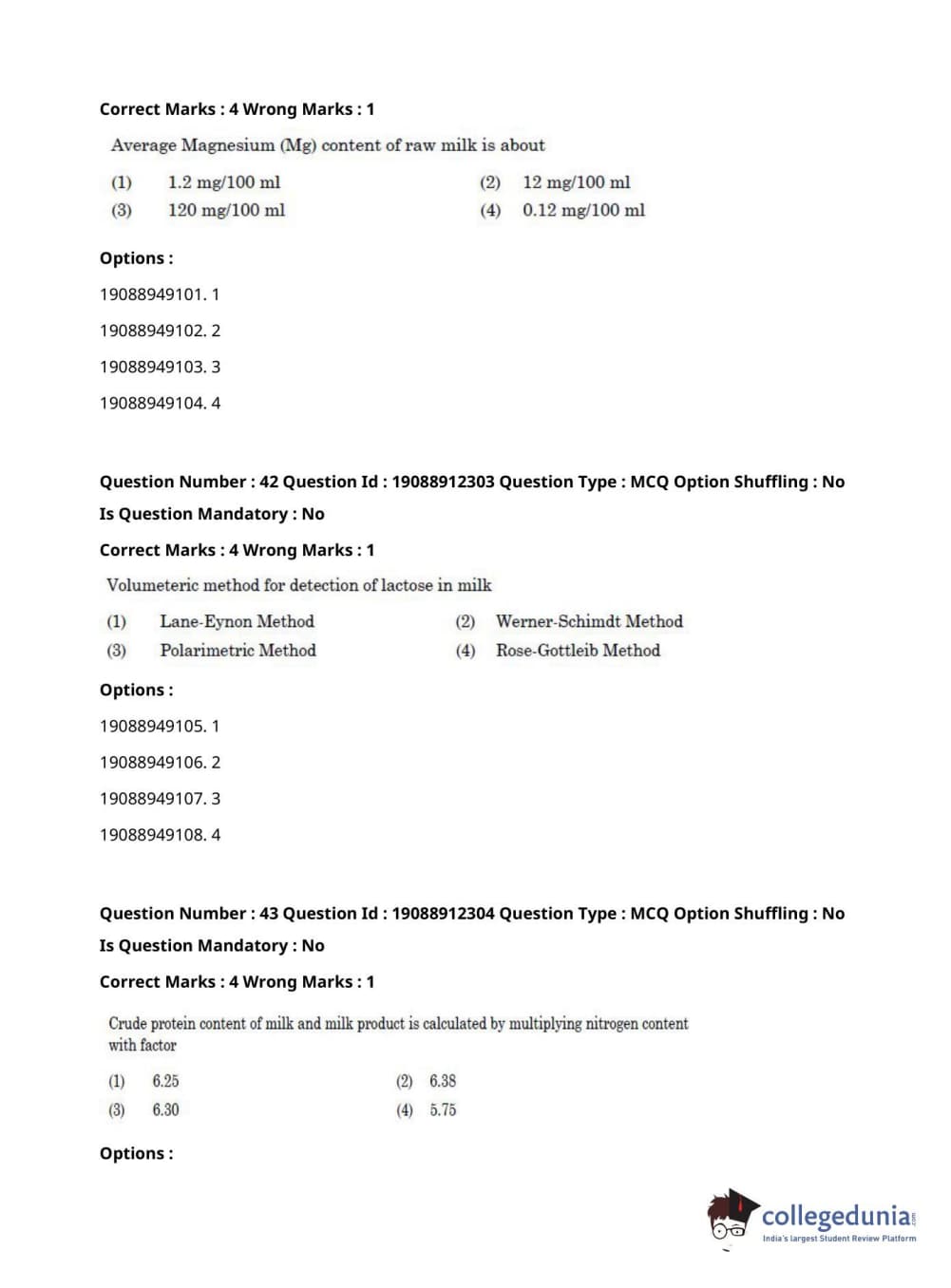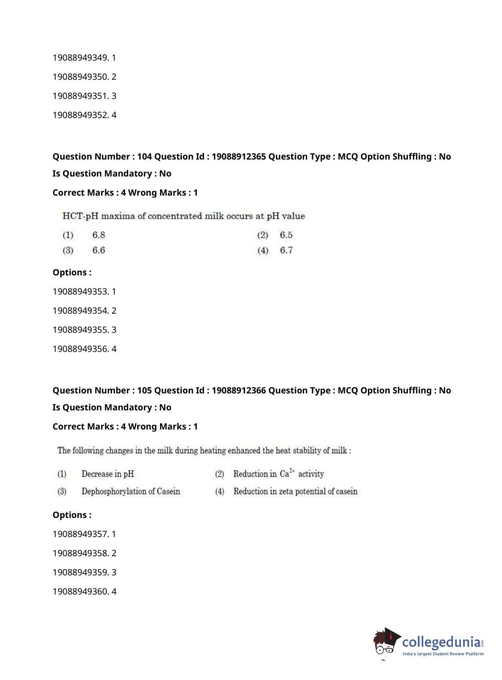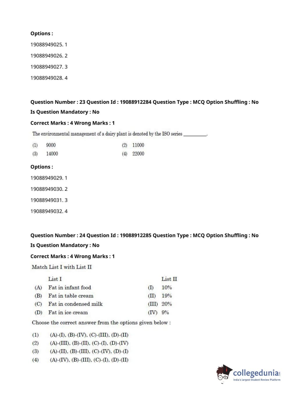 ICAR AIEEA 2021 JRF - DAIRY CHEMISTRY Question Paper with Answer Key PDFs Afternoon Session