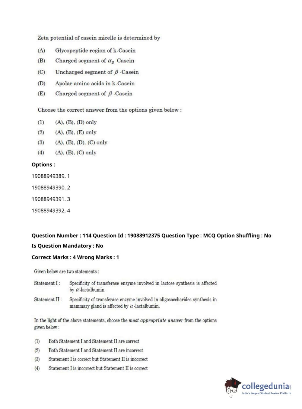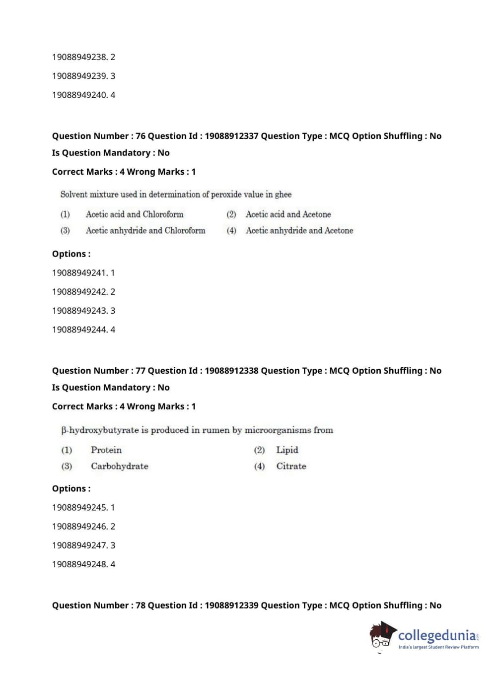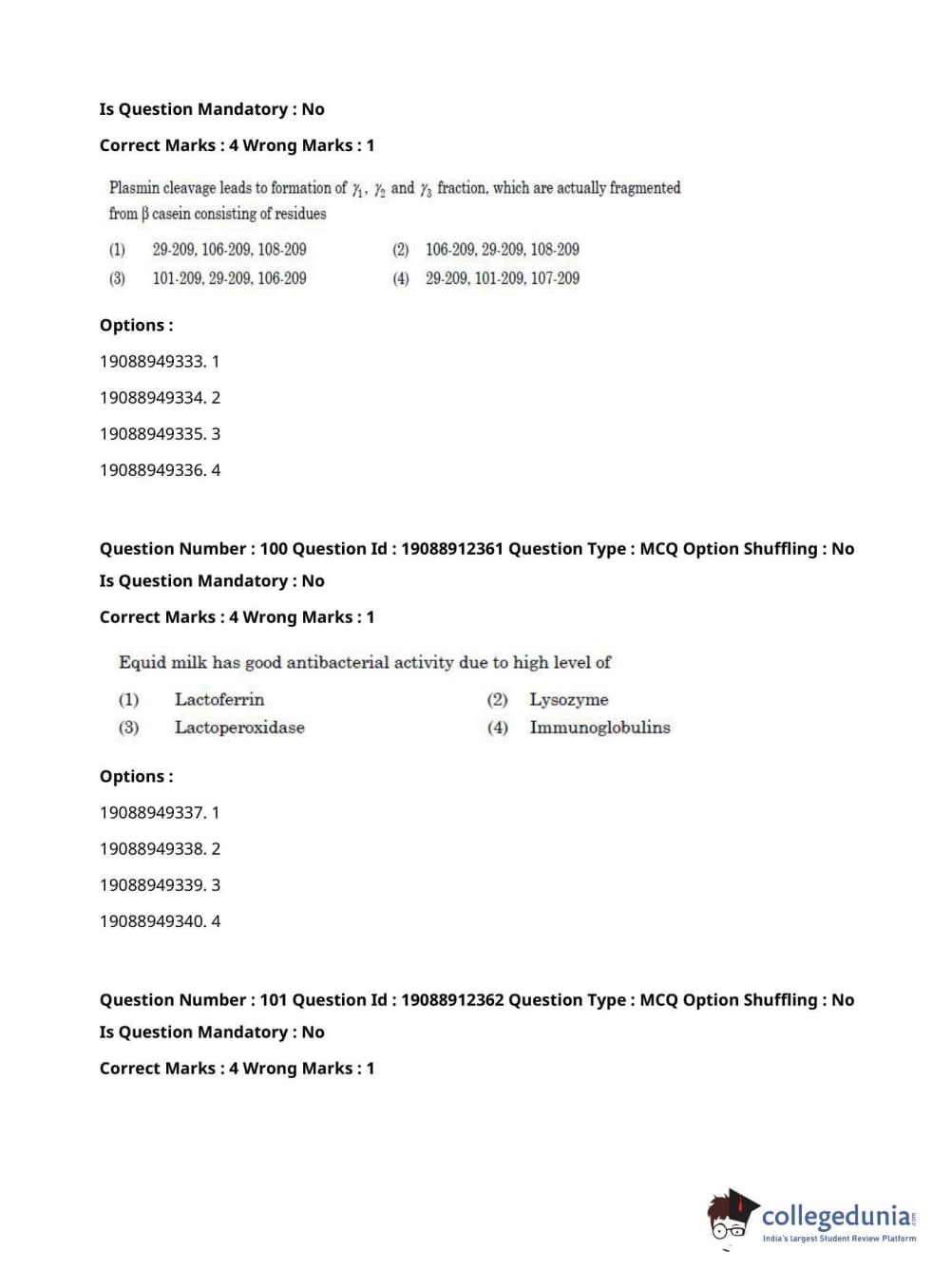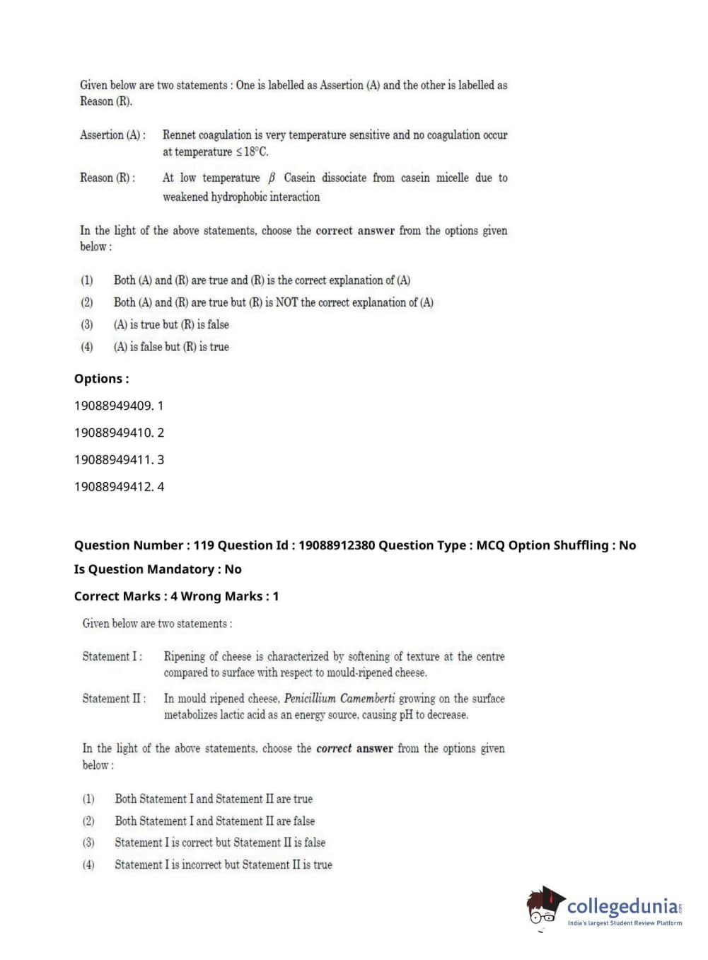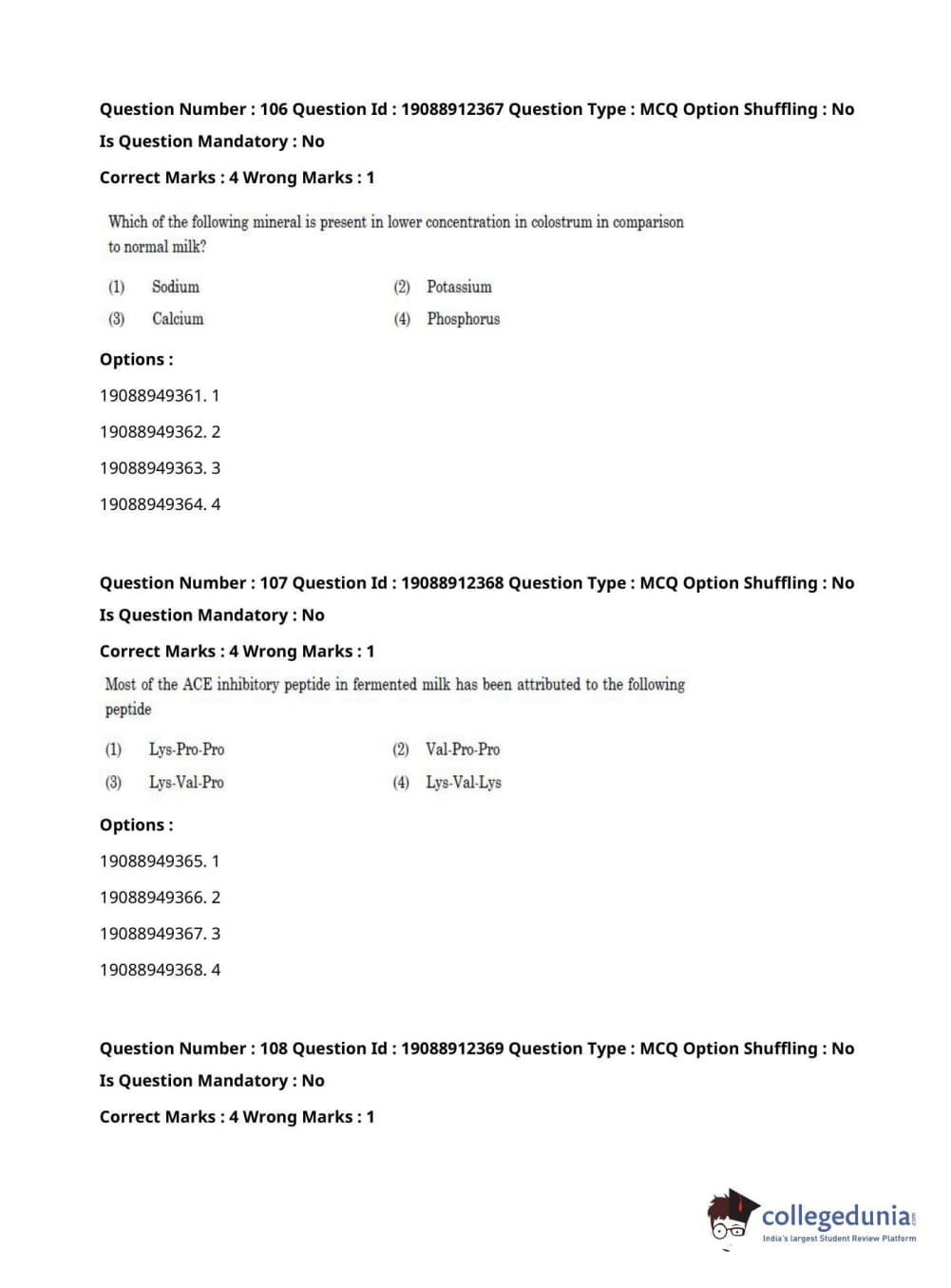 ICAR AIEEA 2021 JRF - DAIRY CHEMISTRY Question Paper with Answer Key PDFs Afternoon Session
