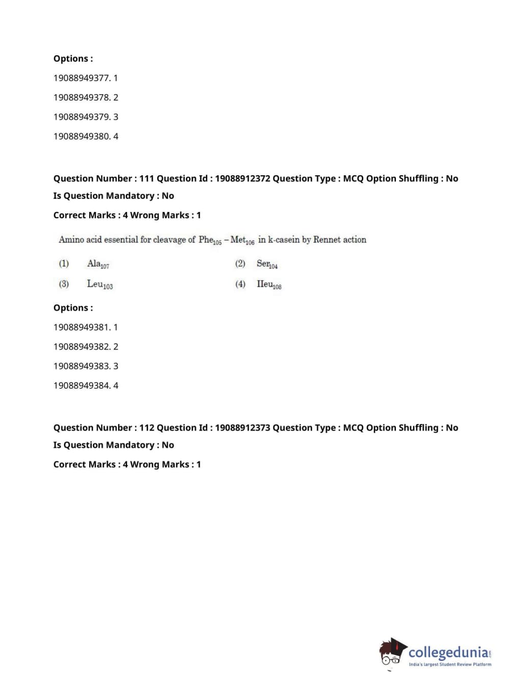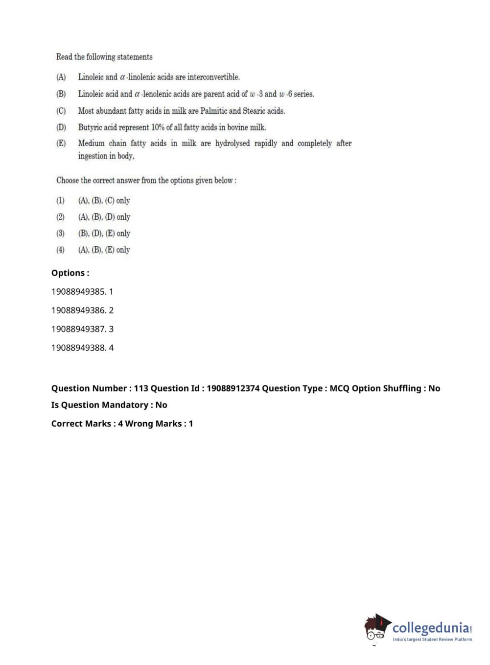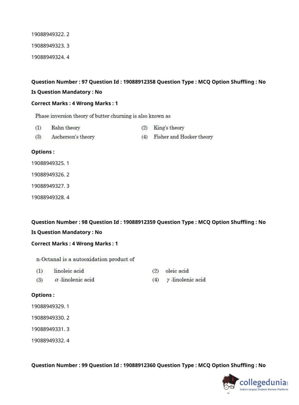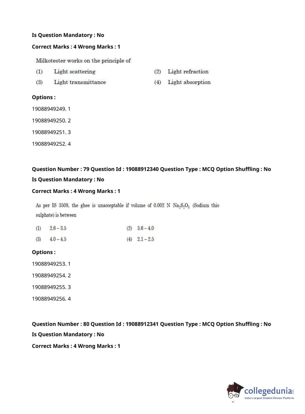 ICAR AIEEA 2021 JRF - DAIRY CHEMISTRY Question Paper with Answer Key PDFs Afternoon Session