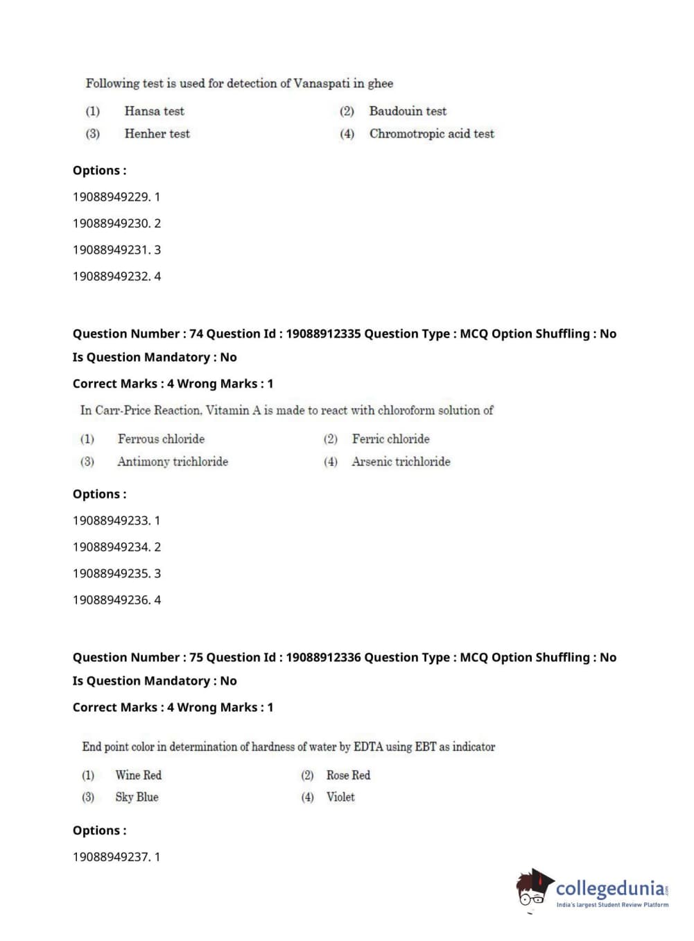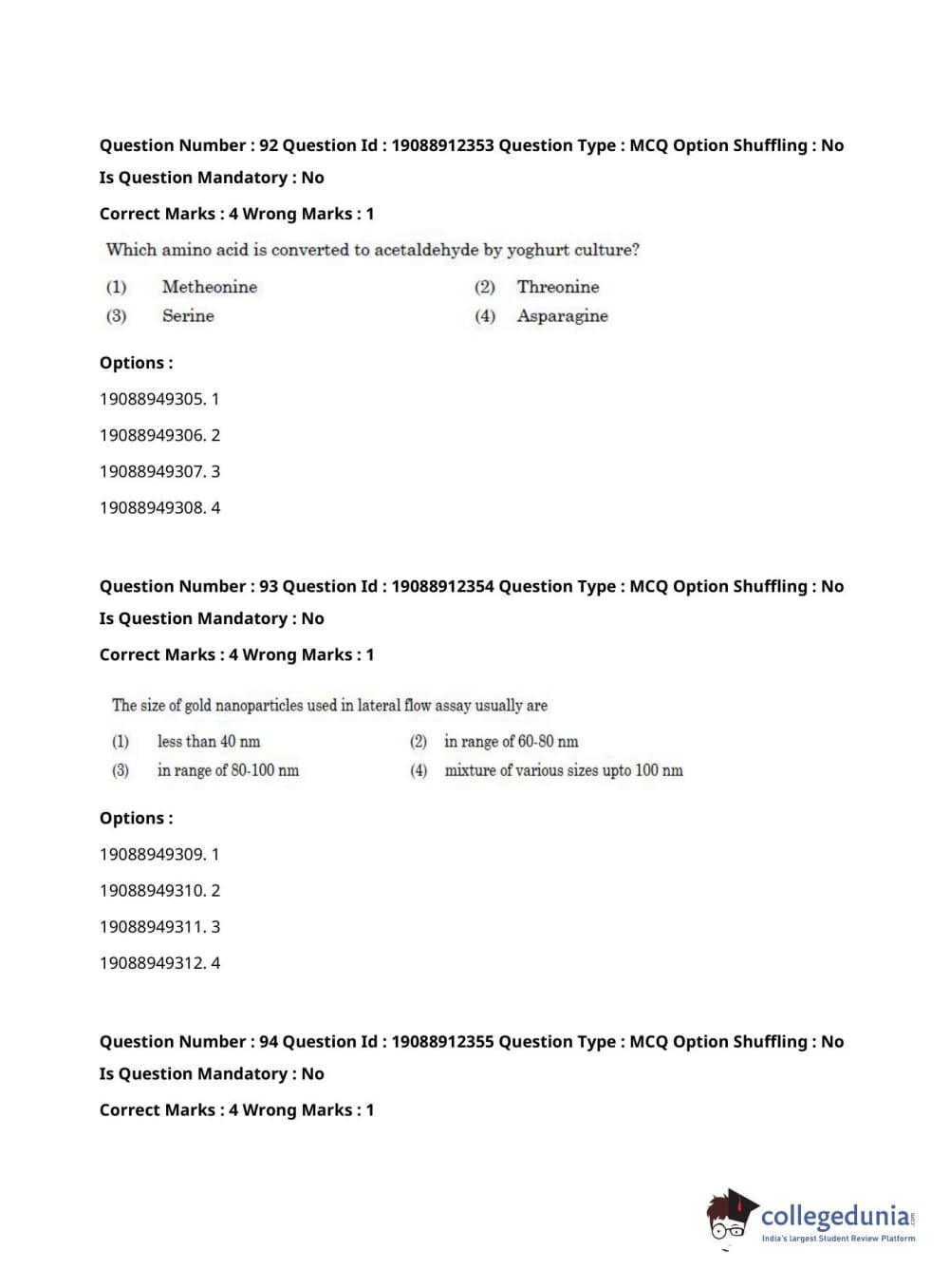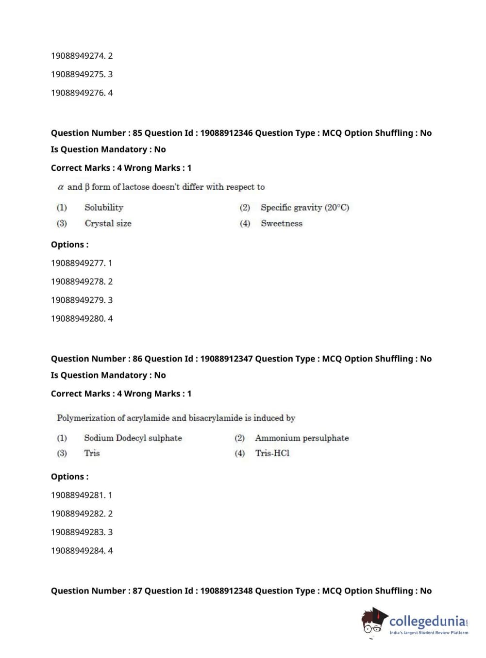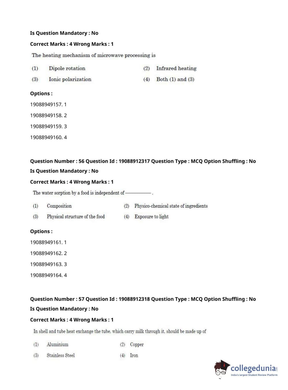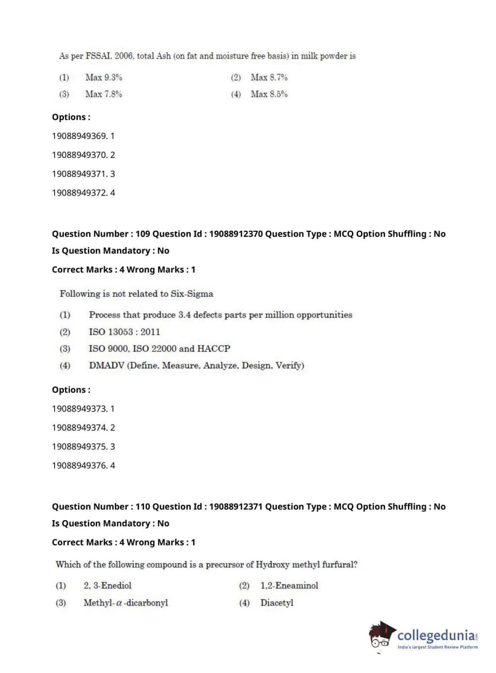 ICAR AIEEA 2021 JRF - DAIRY CHEMISTRY Question Paper with Answer Key PDFs Afternoon Session