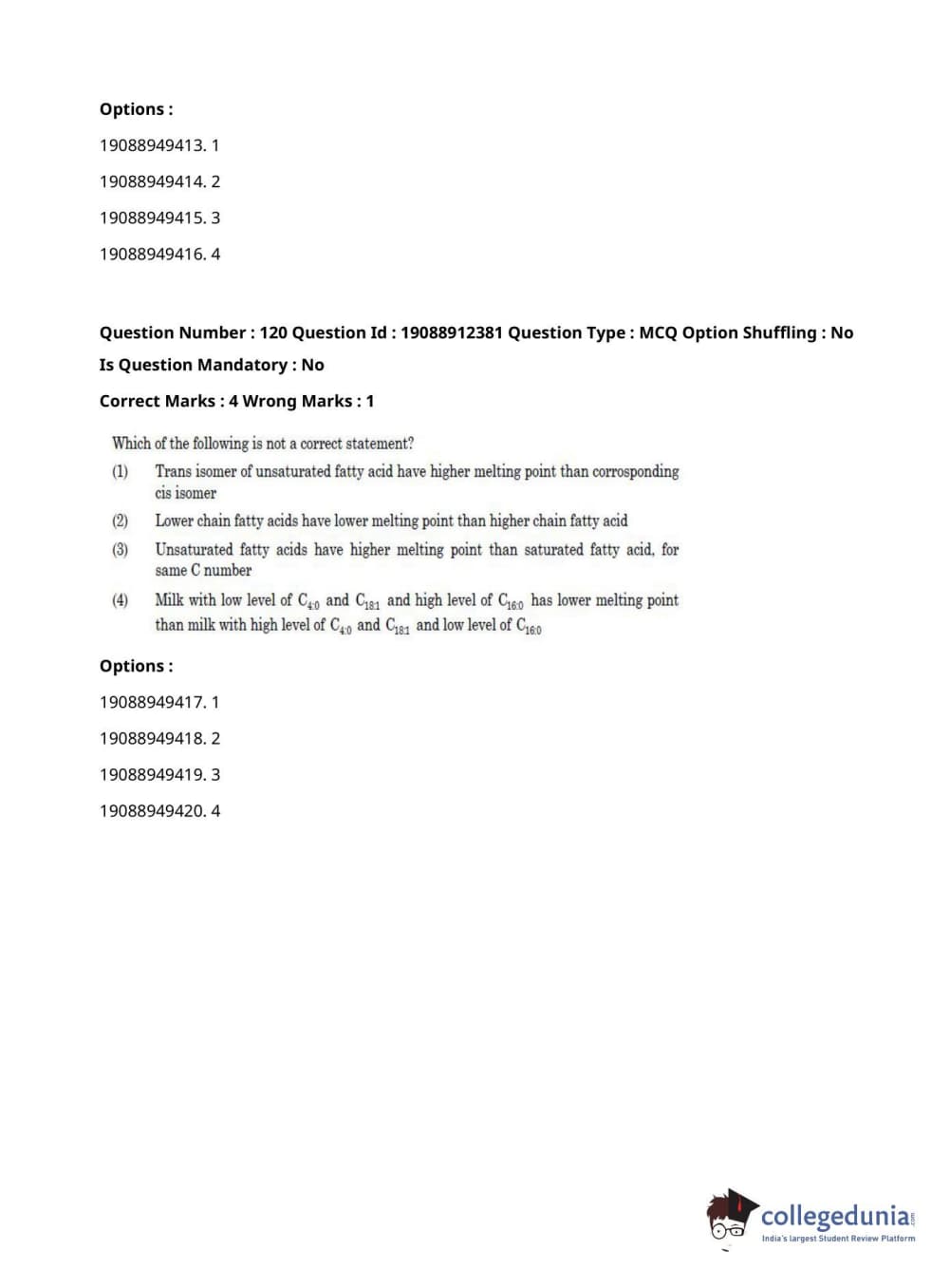 ICAR AIEEA 2021 JRF - DAIRY CHEMISTRY Question paper with answer key pdf conducted on September 17, 2021 in Afternoon Session is available for download. The exam was successfully organized by National Testing Agency (NTA). The question paper comprised a total of 120 questions.