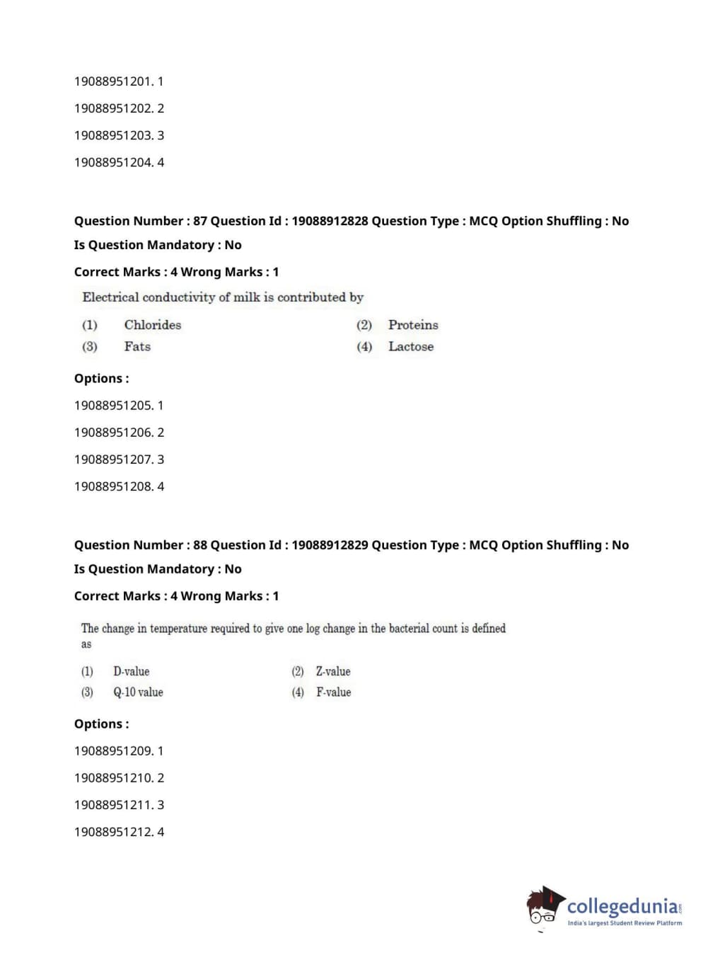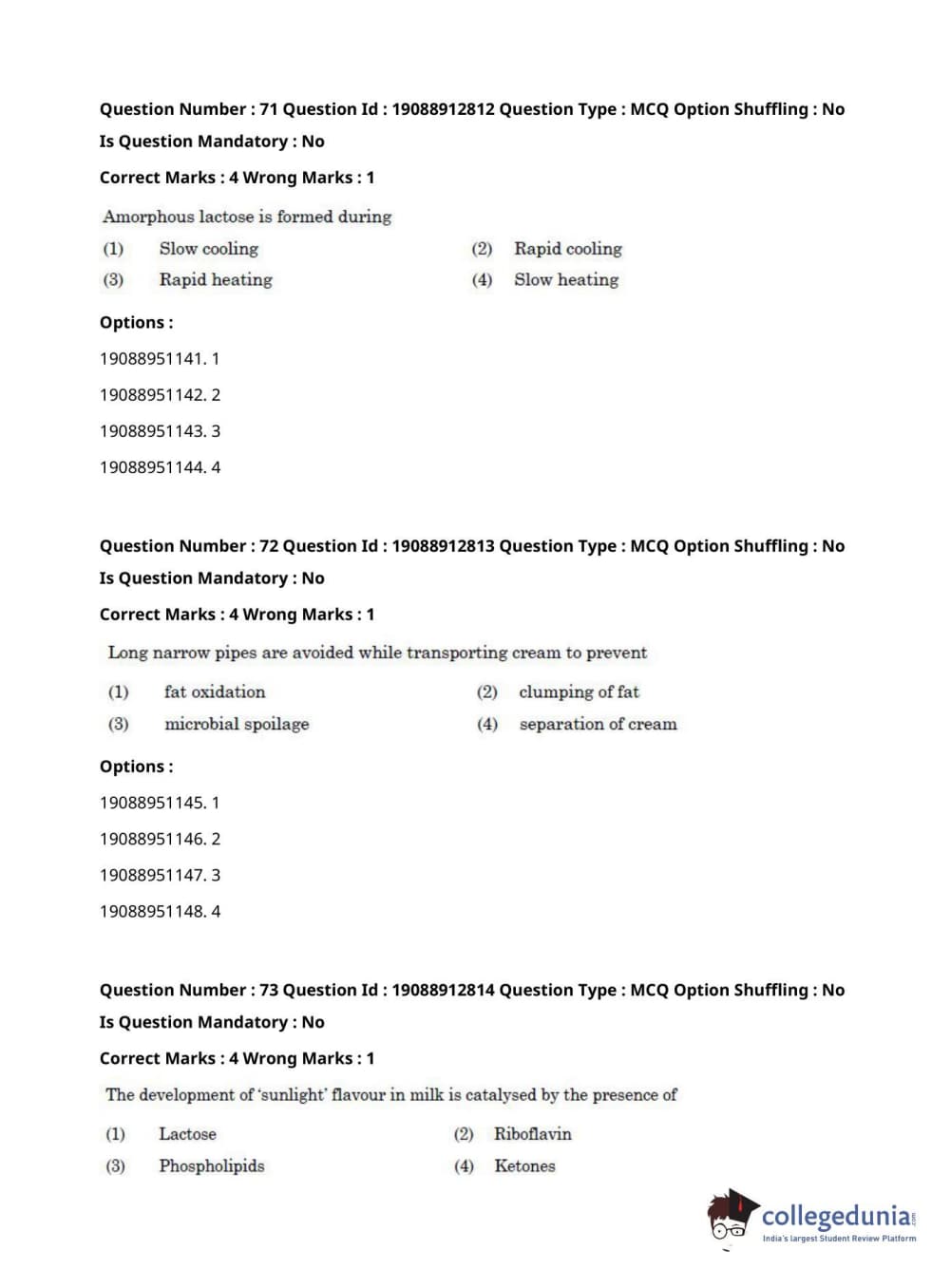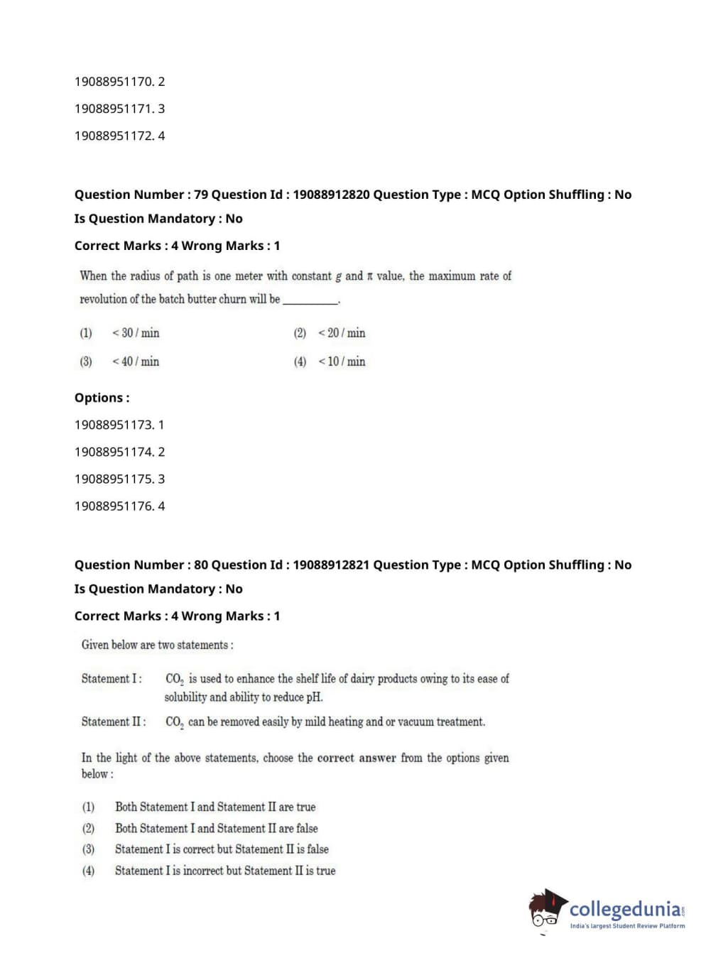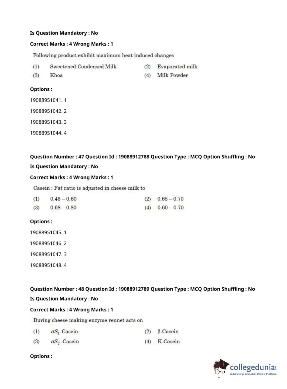 ICAR AIEEA 2021 JRF - DAIRY TECHNOLOGY Question Paper with Answer Key PDFs Afternoon Session