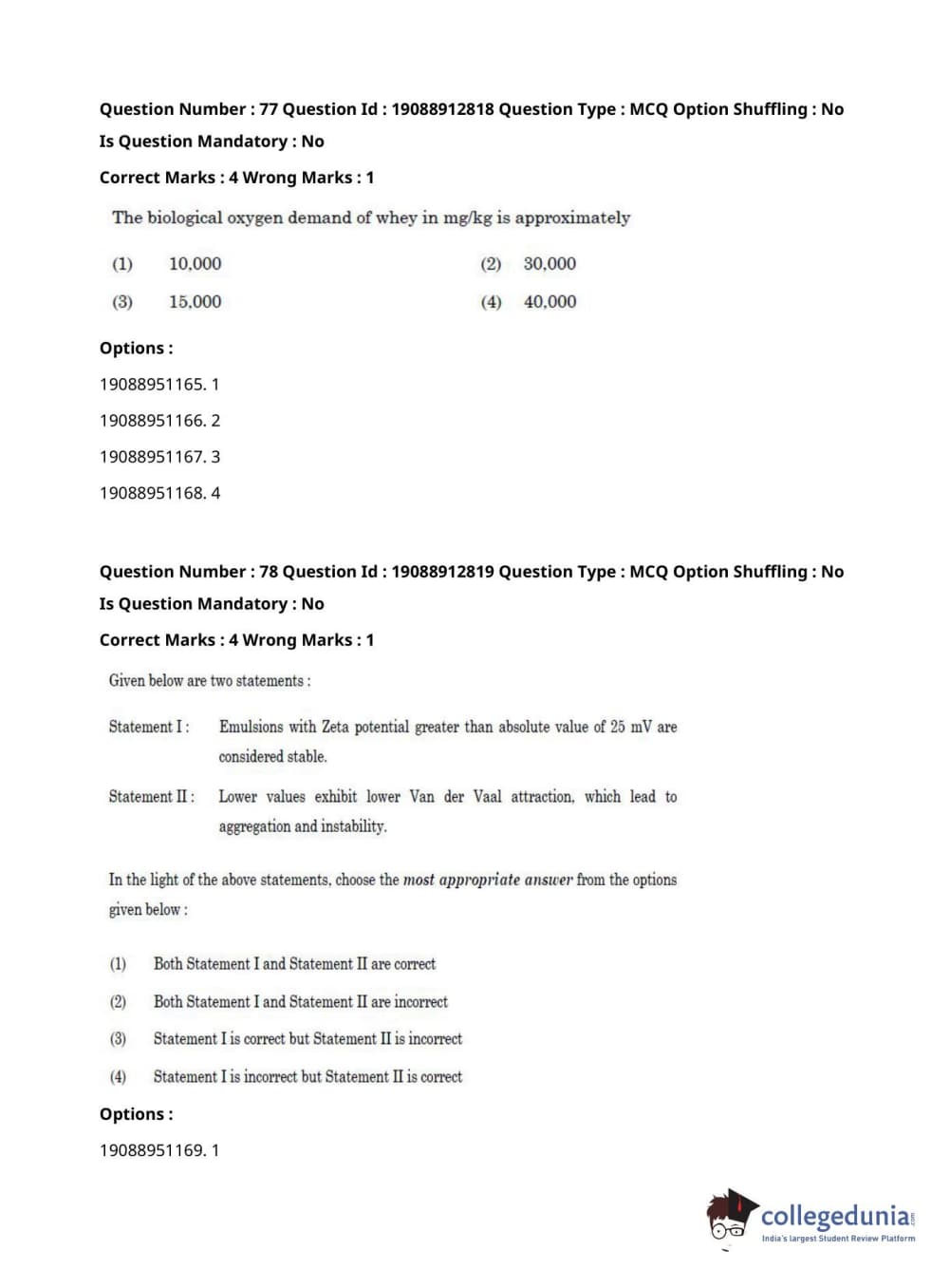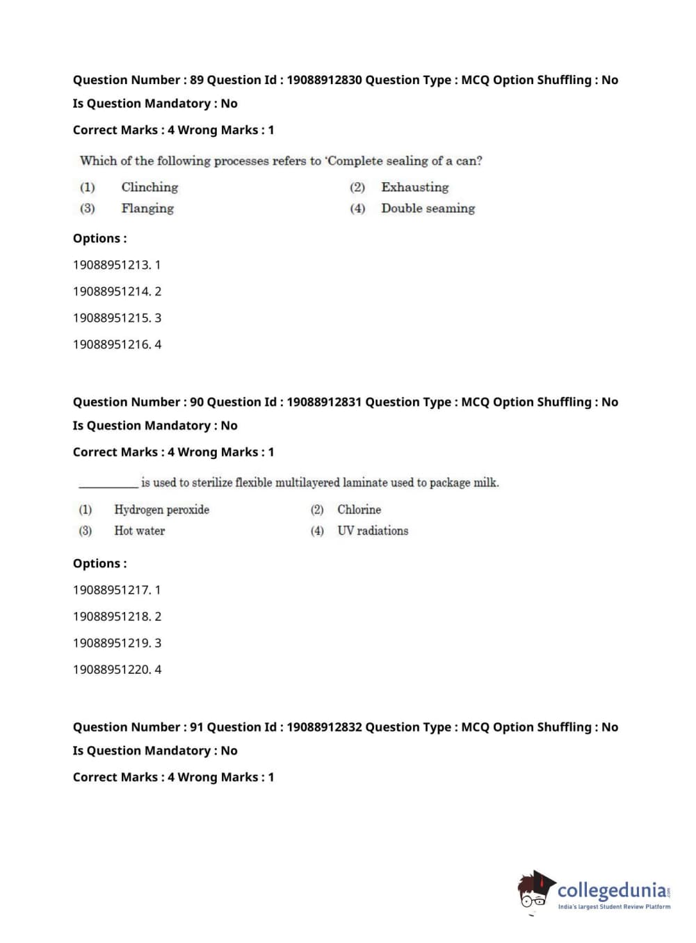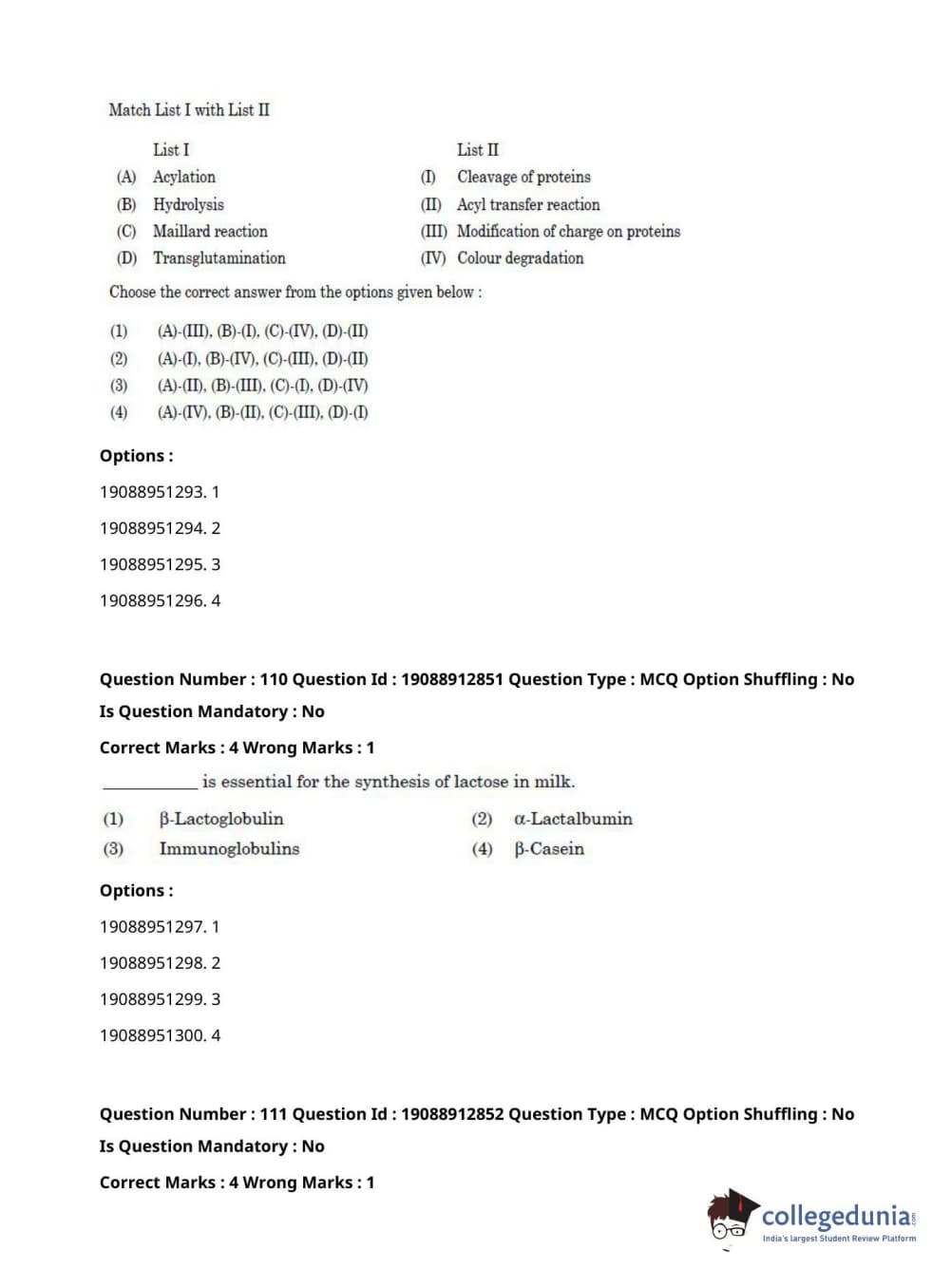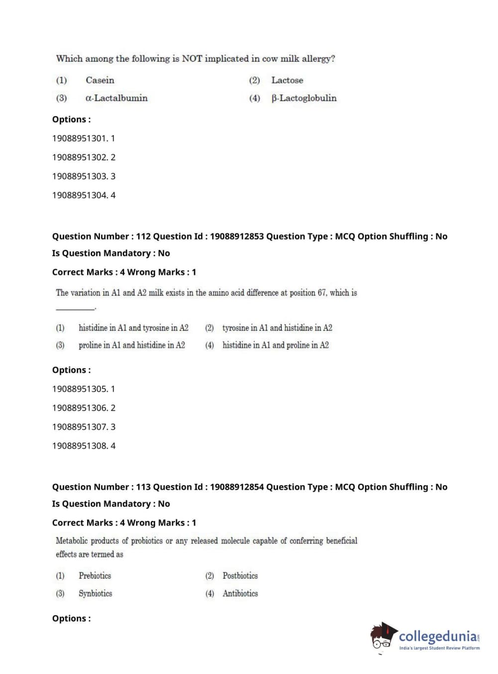 ICAR AIEEA 2021 JRF - DAIRY TECHNOLOGY Question Paper with Answer Key PDFs Afternoon Session