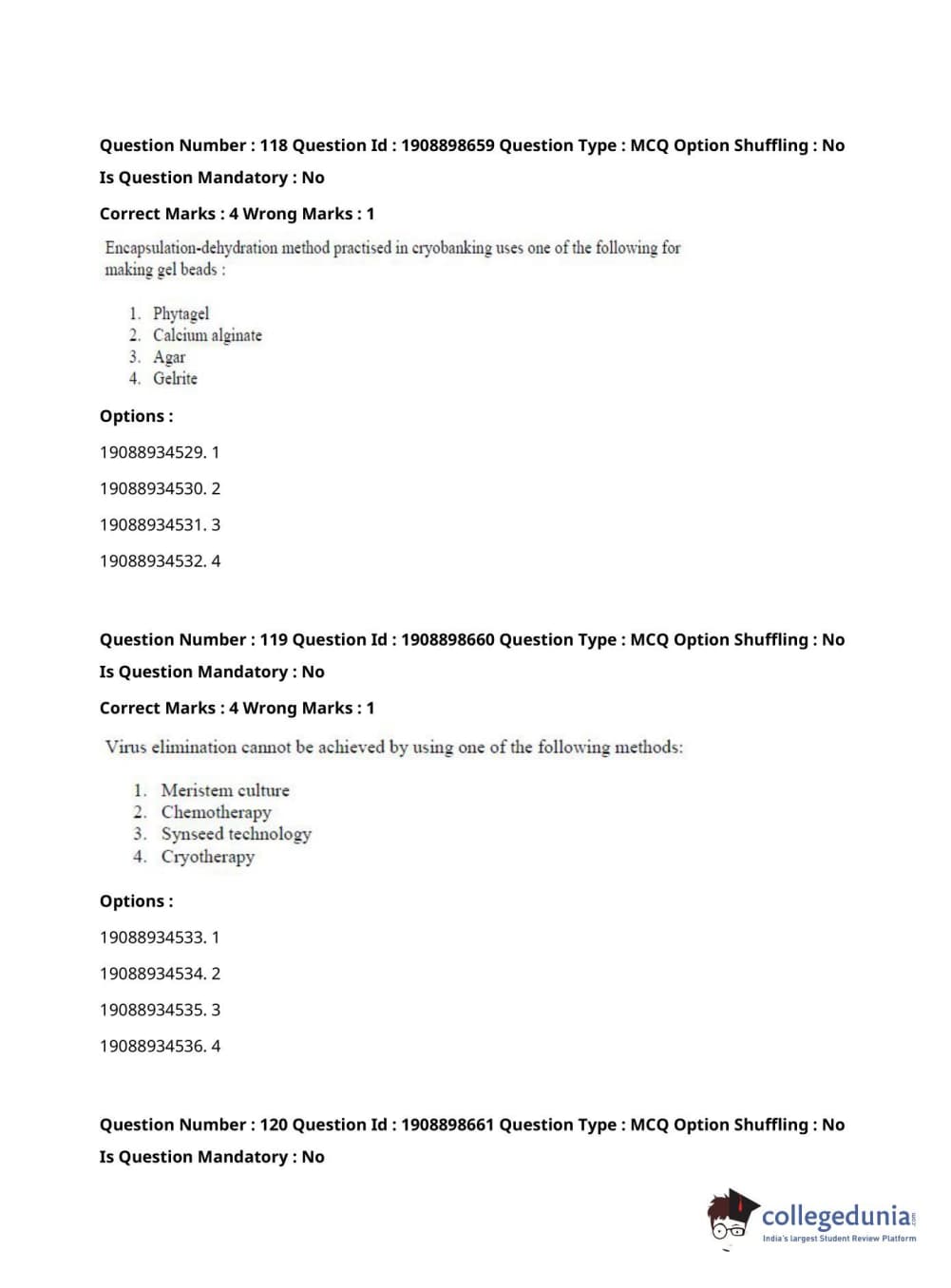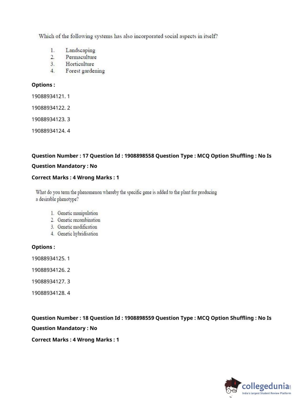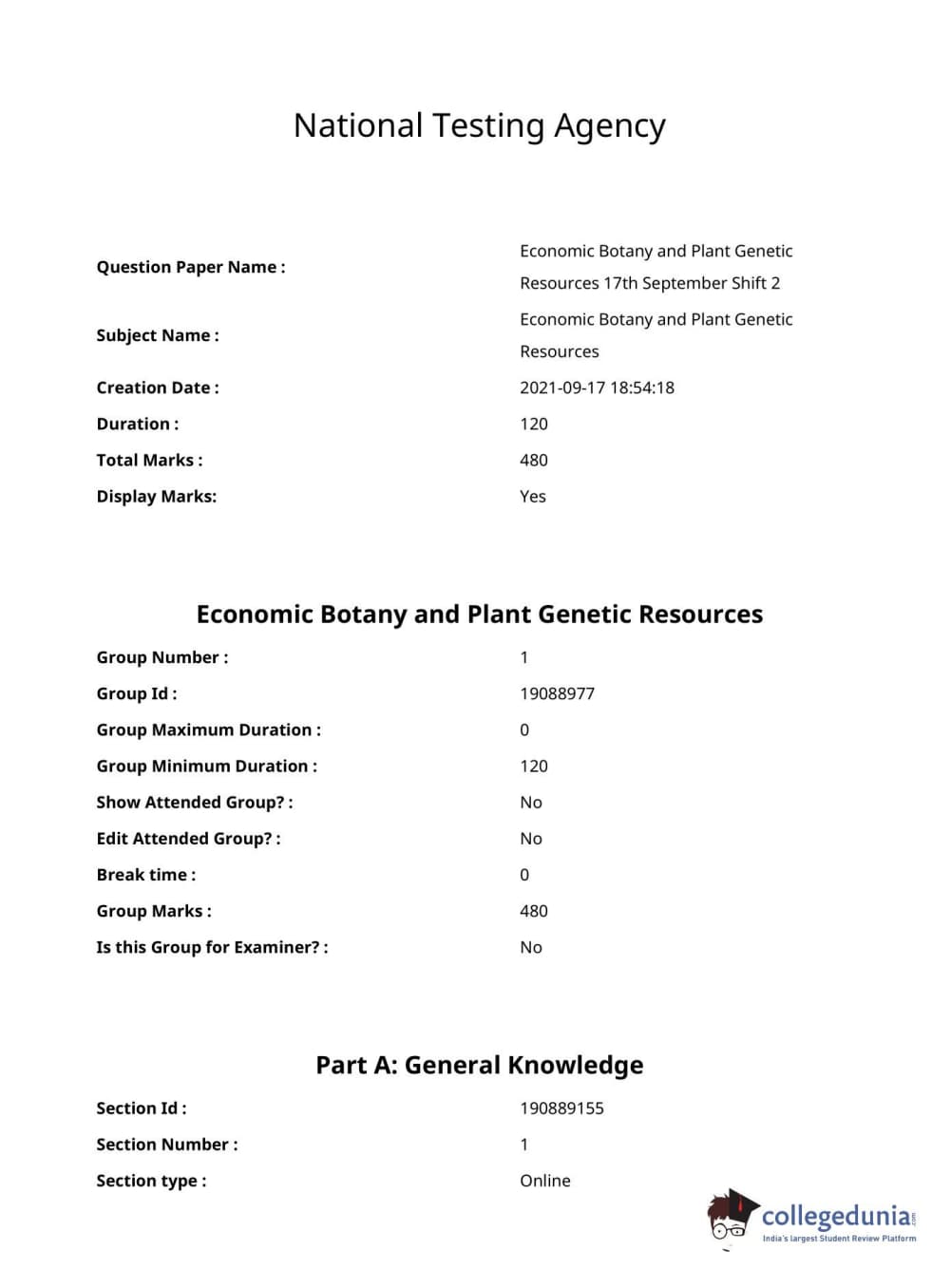 ICAR AIEEA 2021 JRF - ECONOMIC BOTANY AND PLANT GENETIC RESOURCES Question paper with answer key pdf conducted on September 17, 2021 in Afternoon Session is available for download. The exam was successfully organized by National Testing Agency (NTA). The question paper comprised a total of 120 questions.