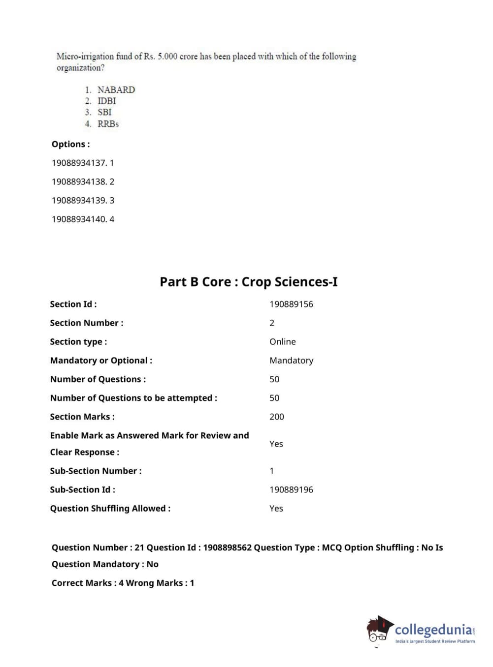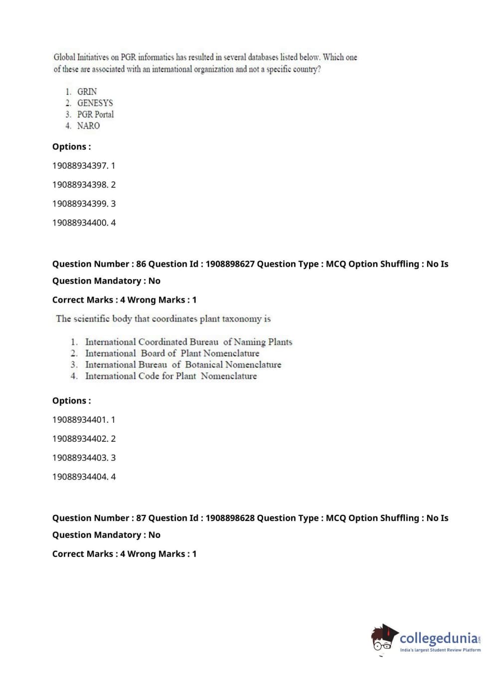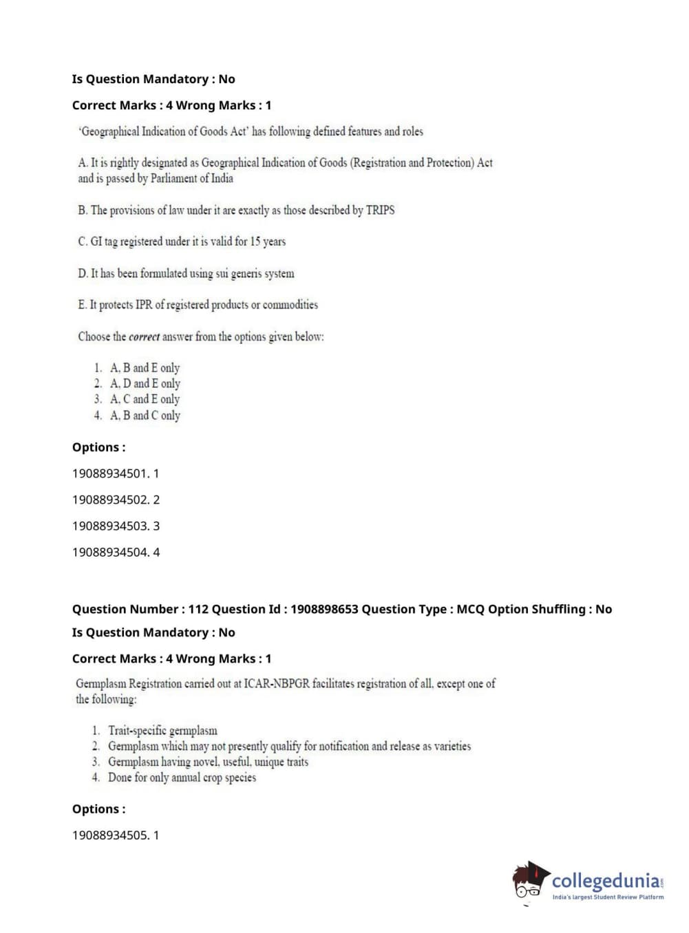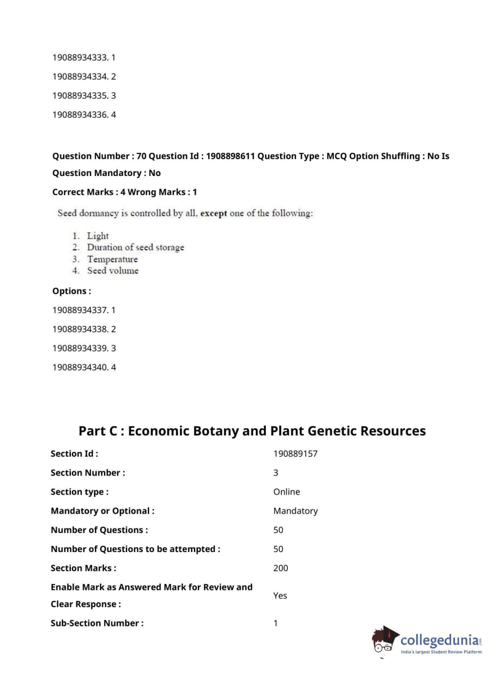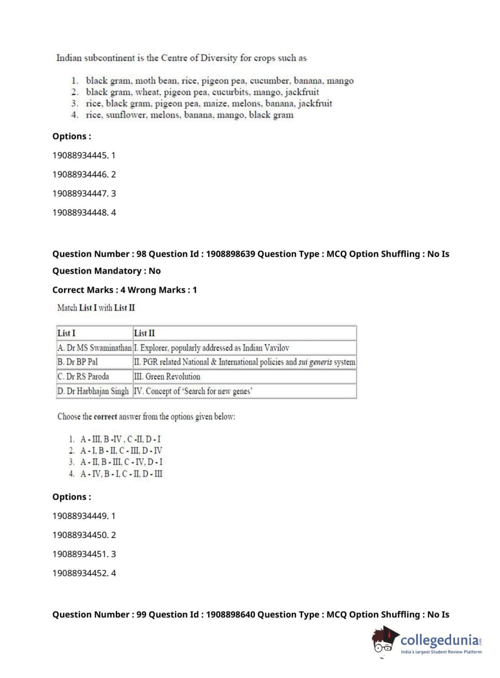 ICAR AIEEA 2021 JRF - ECONOMIC BOTANY AND PLANT GENETIC RESOURCES Question Paper with Answer Key PDFs Afternoon Session