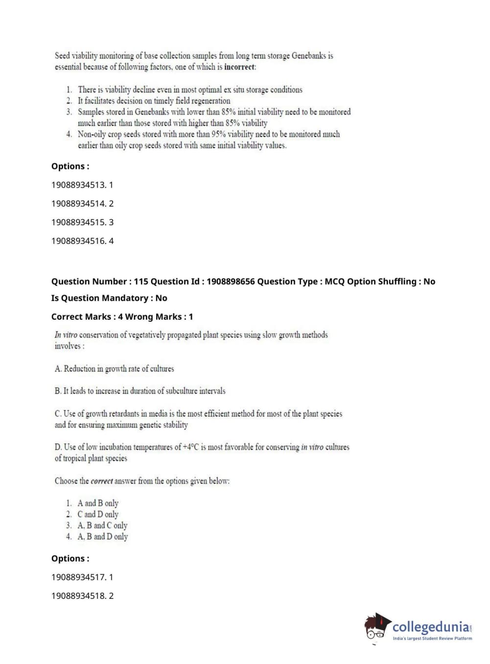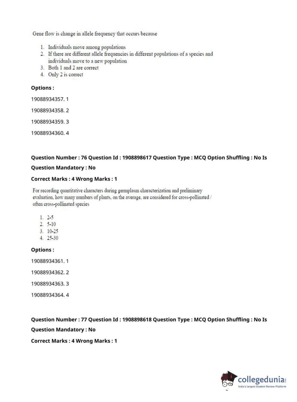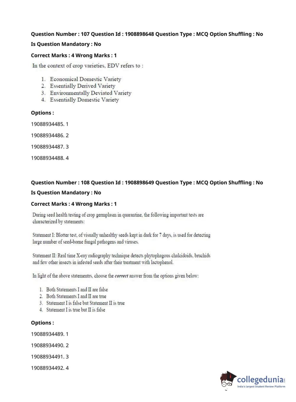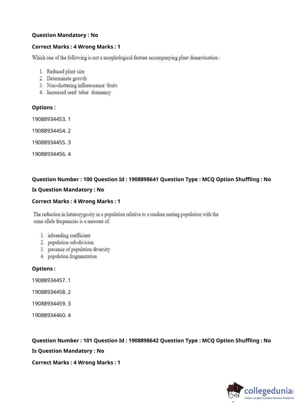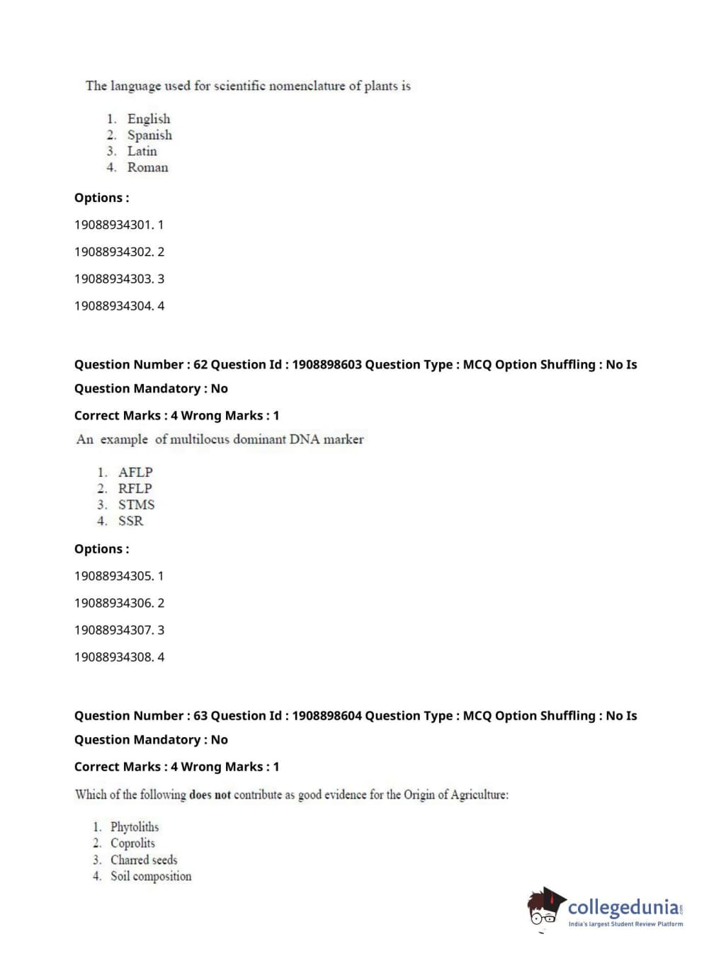 ICAR AIEEA 2021 JRF - ECONOMIC BOTANY AND PLANT GENETIC RESOURCES Question Paper with Answer Key PDFs Afternoon Session