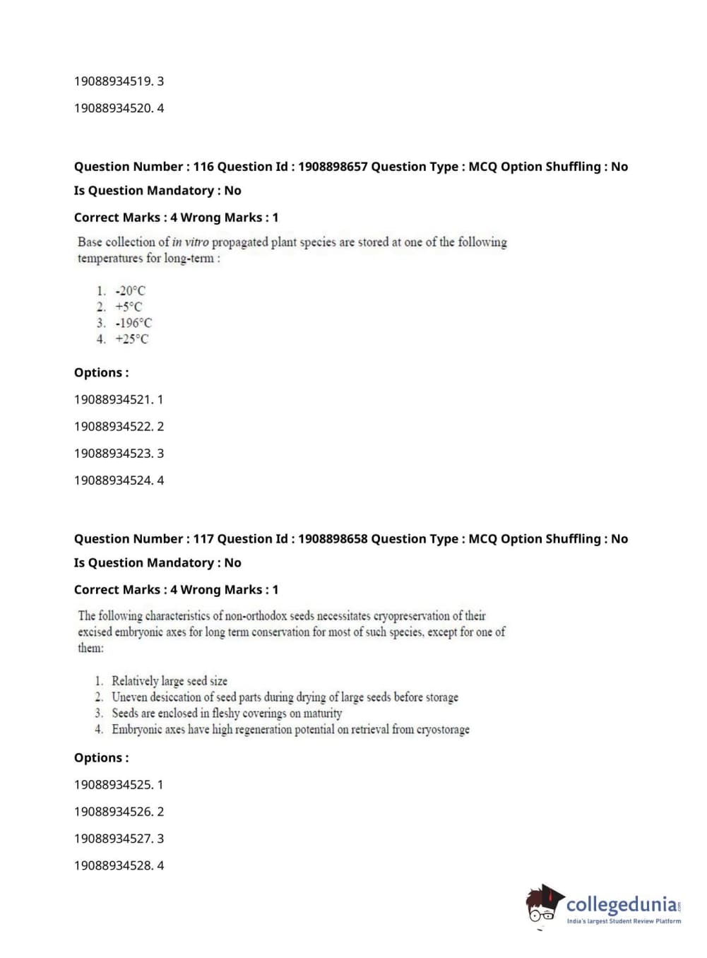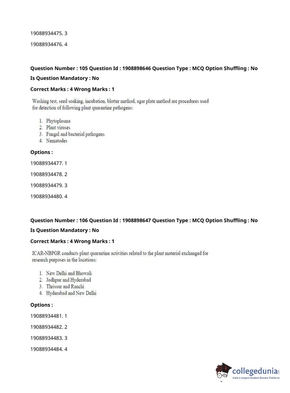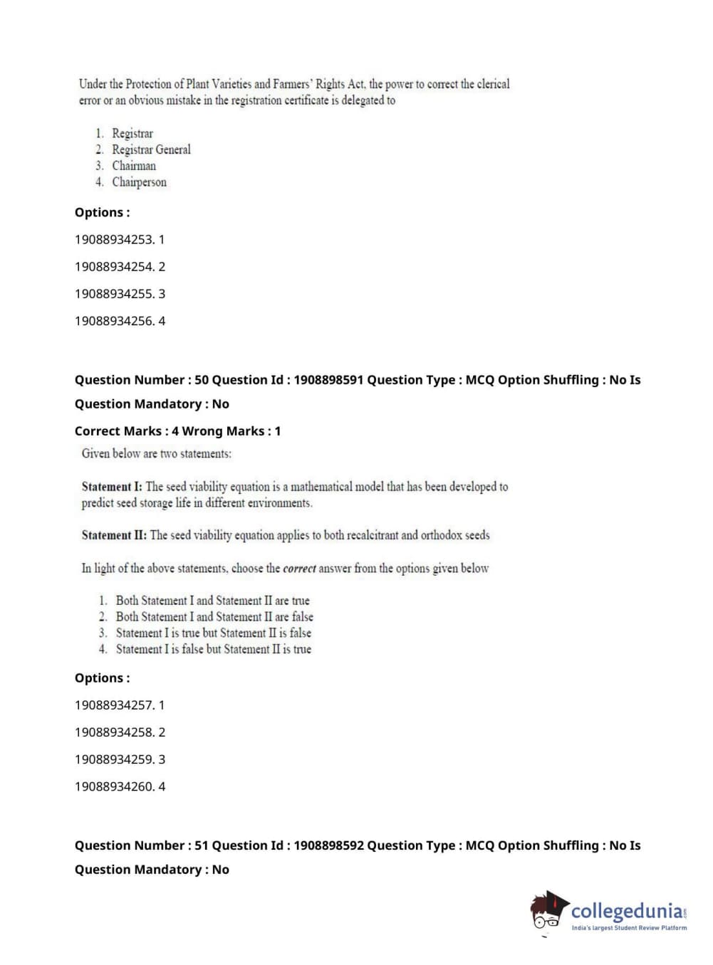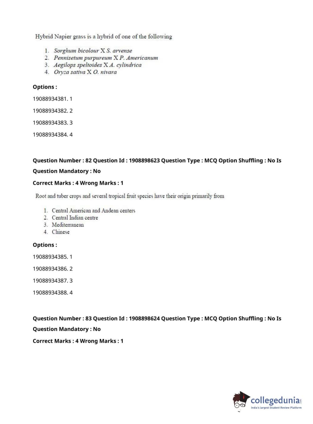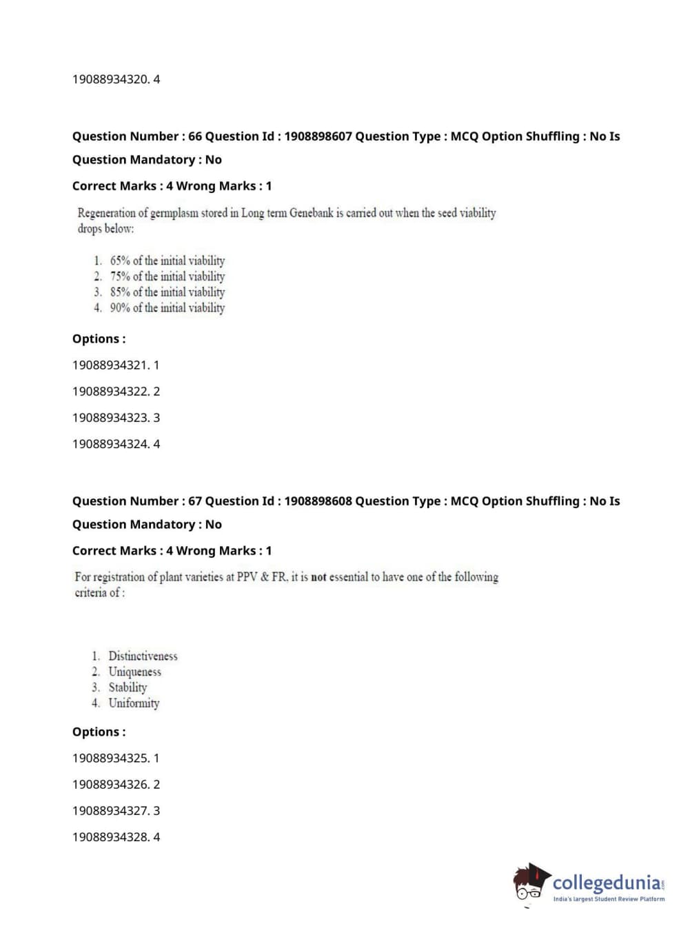 ICAR AIEEA 2021 JRF - ECONOMIC BOTANY AND PLANT GENETIC RESOURCES Question Paper with Answer Key PDFs Afternoon Session