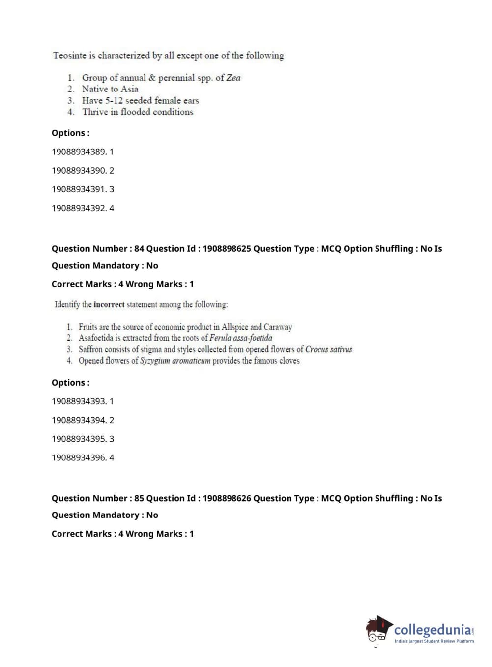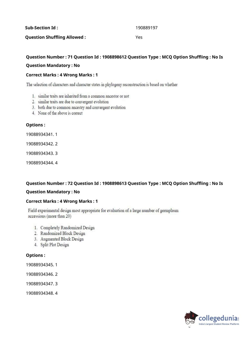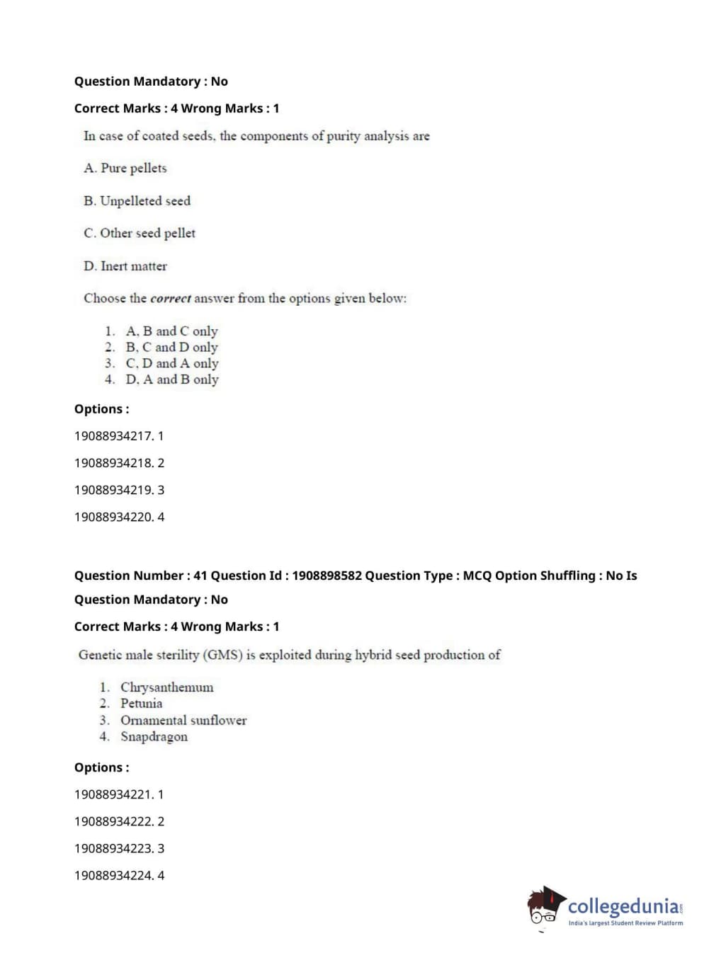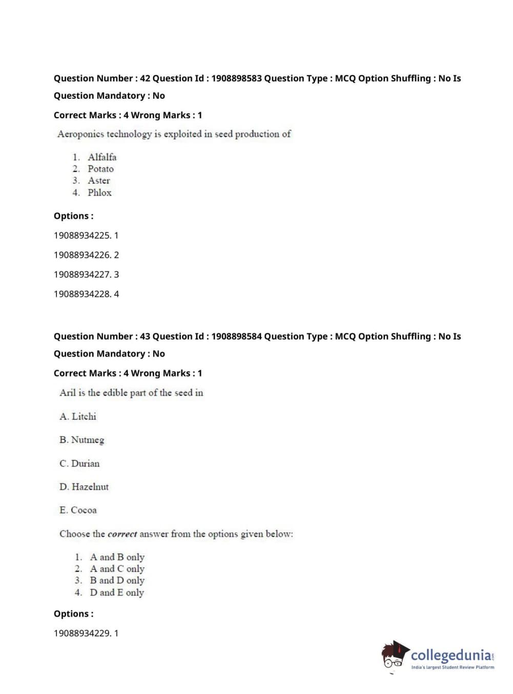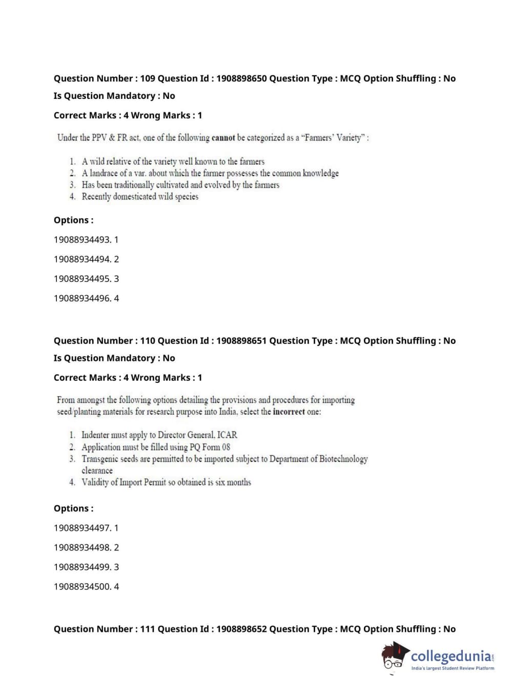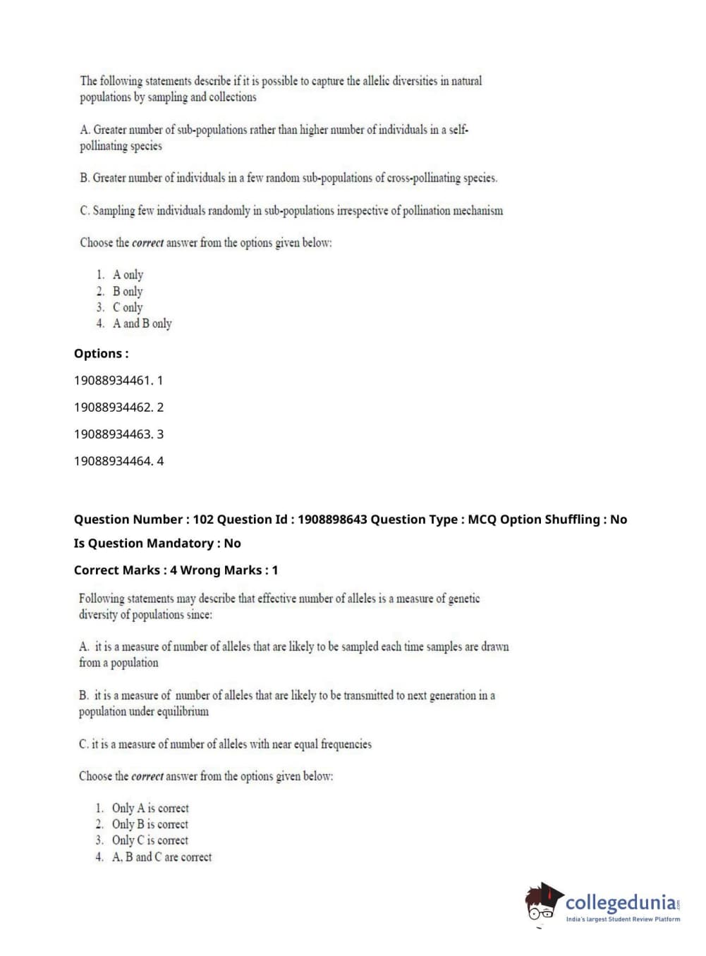 ICAR AIEEA 2021 JRF - ECONOMIC BOTANY AND PLANT GENETIC RESOURCES Question Paper with Answer Key PDFs Afternoon Session