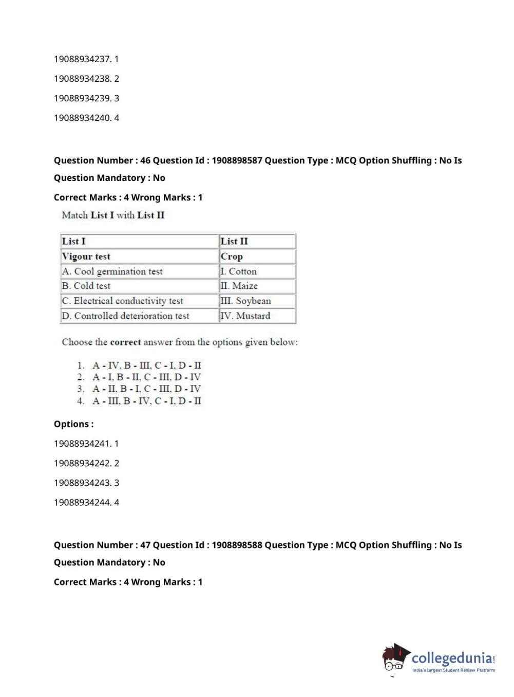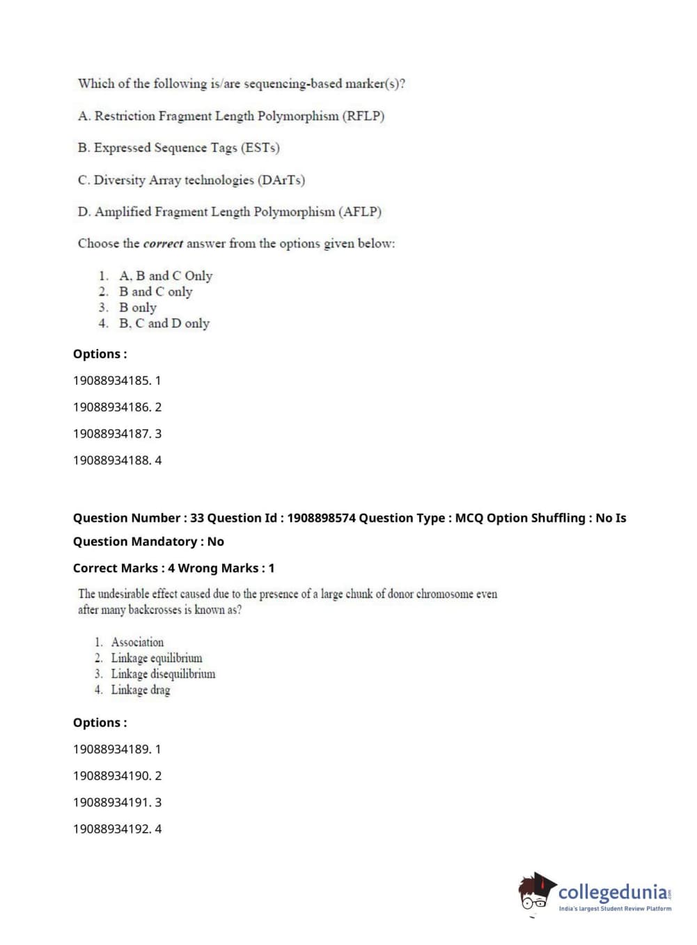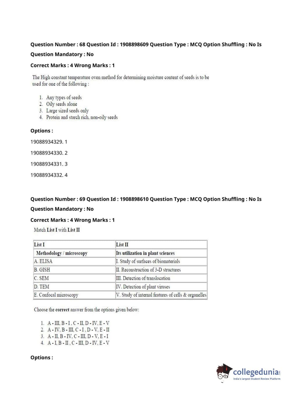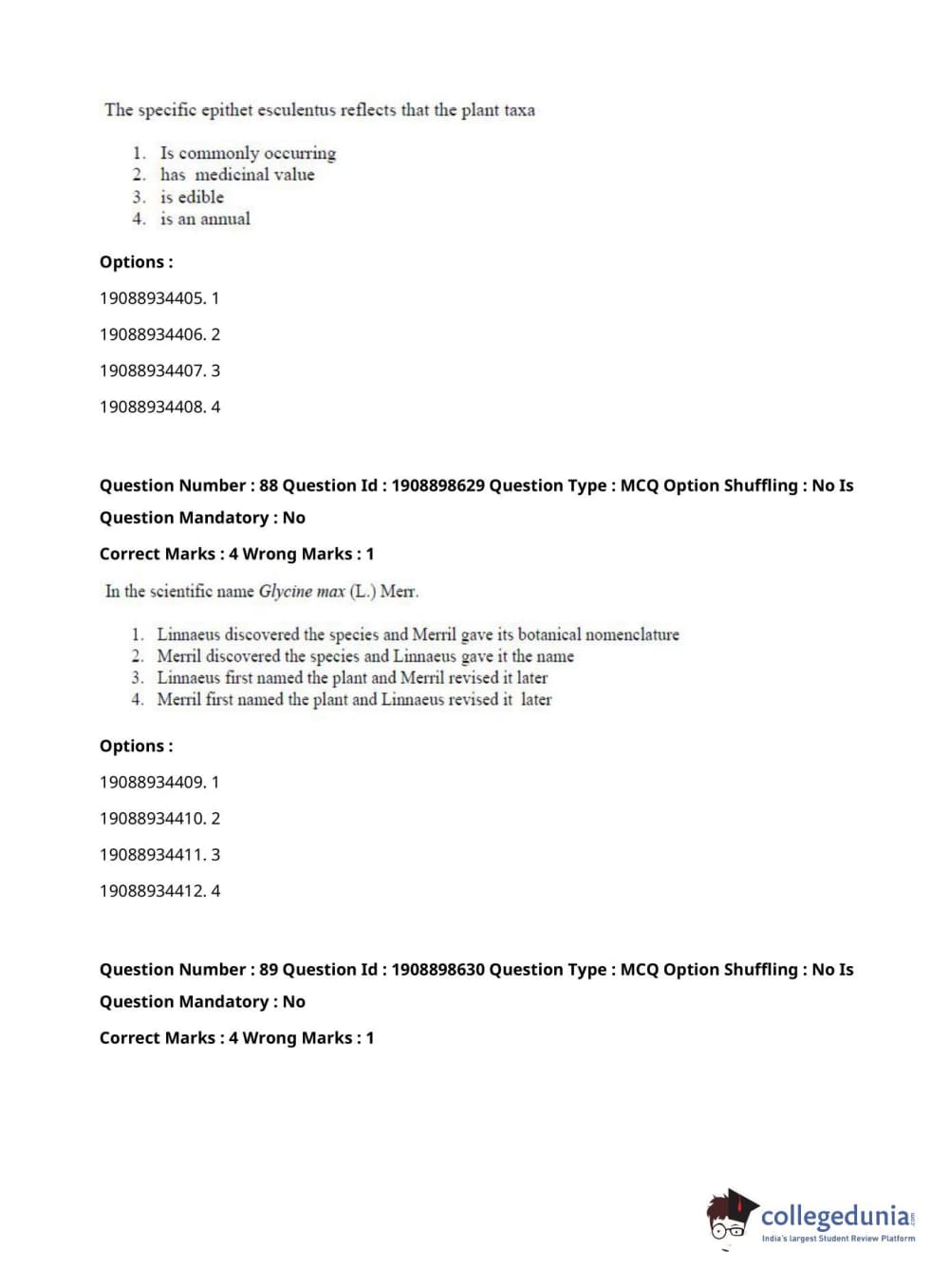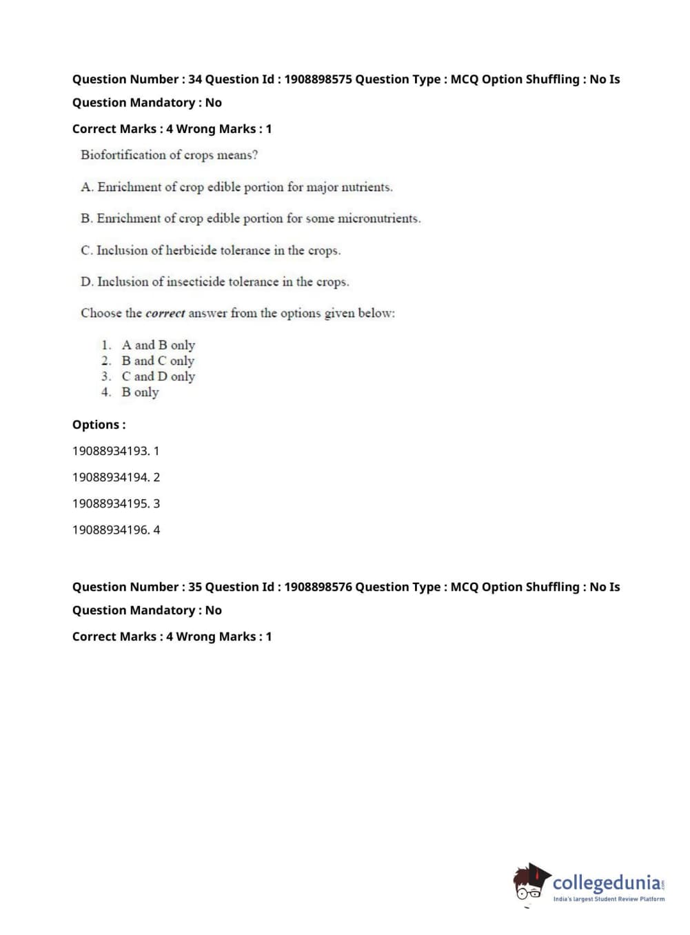 ICAR AIEEA 2021 JRF - ECONOMIC BOTANY AND PLANT GENETIC RESOURCES Question Paper with Answer Key PDFs Afternoon Session