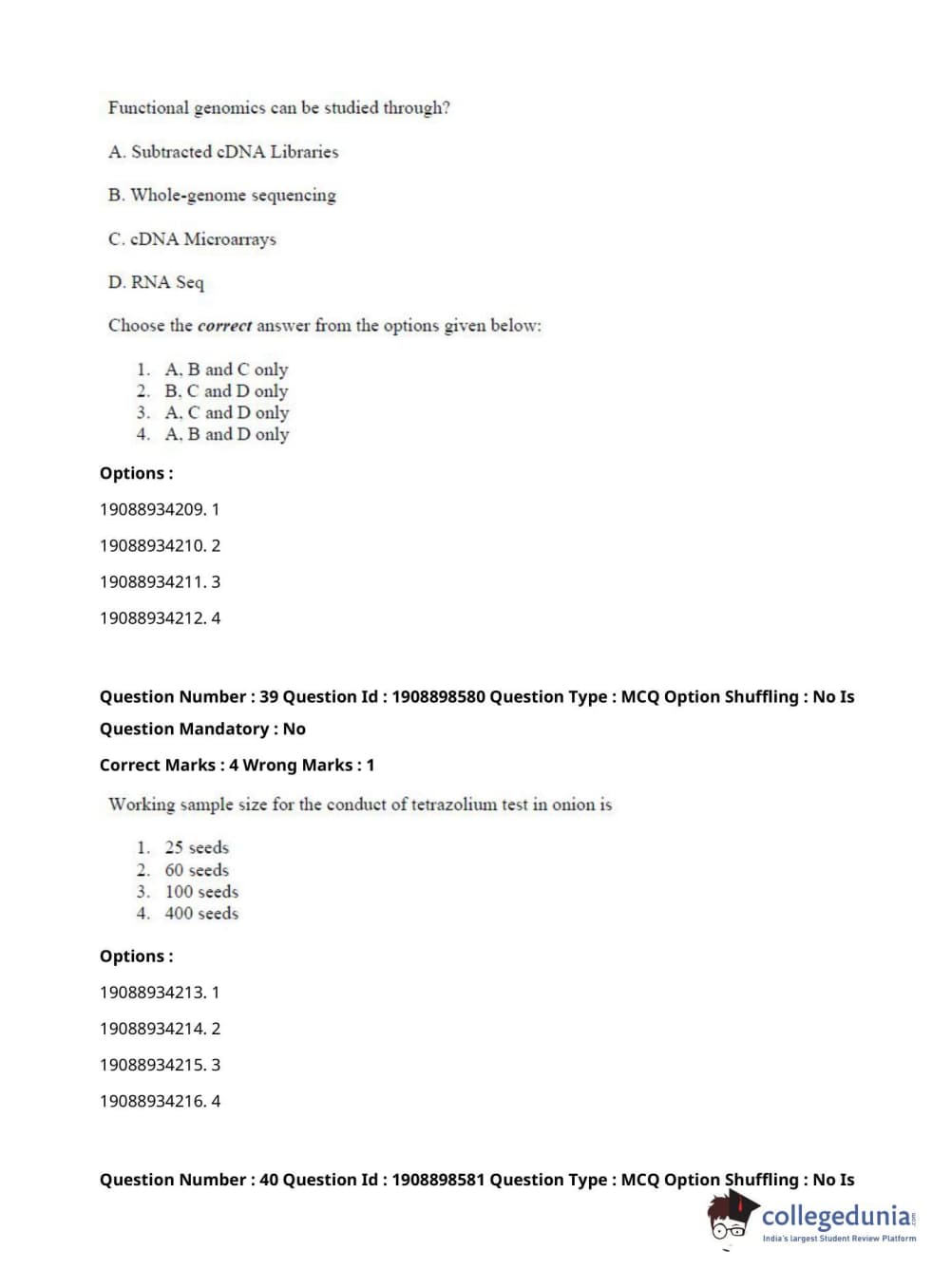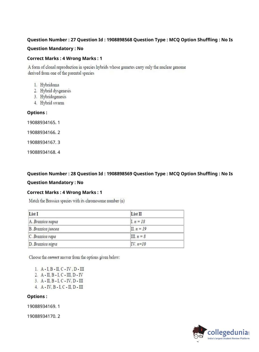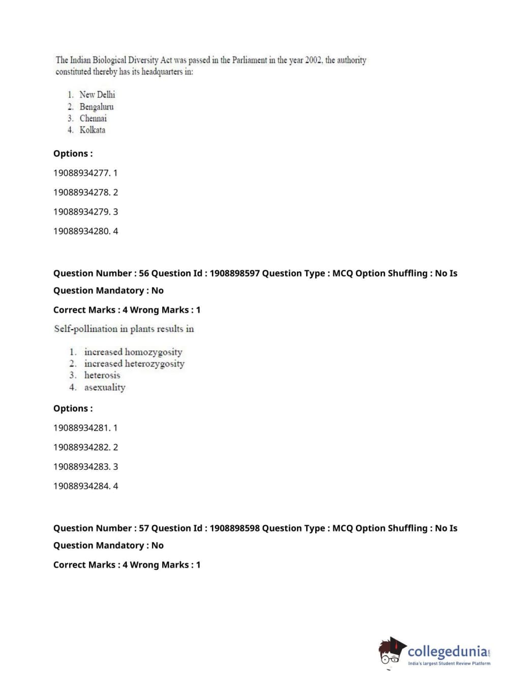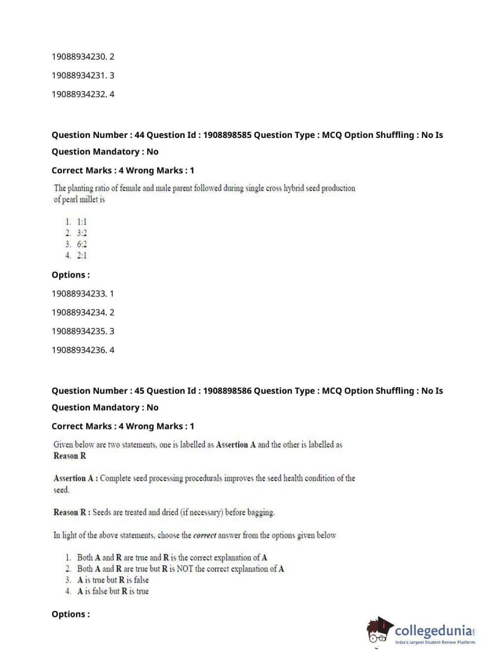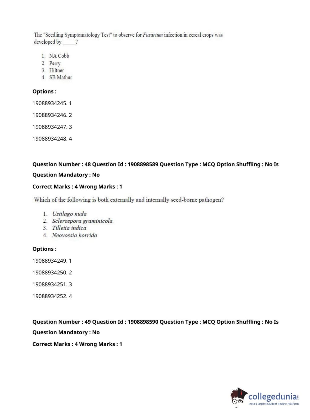 ICAR AIEEA 2021 JRF - ECONOMIC BOTANY AND PLANT GENETIC RESOURCES Question Paper with Answer Key PDFs Afternoon Session