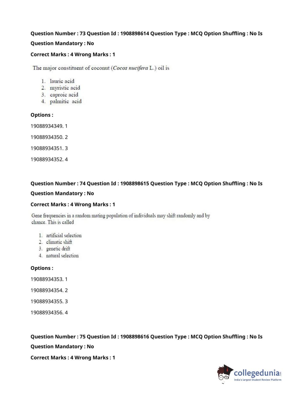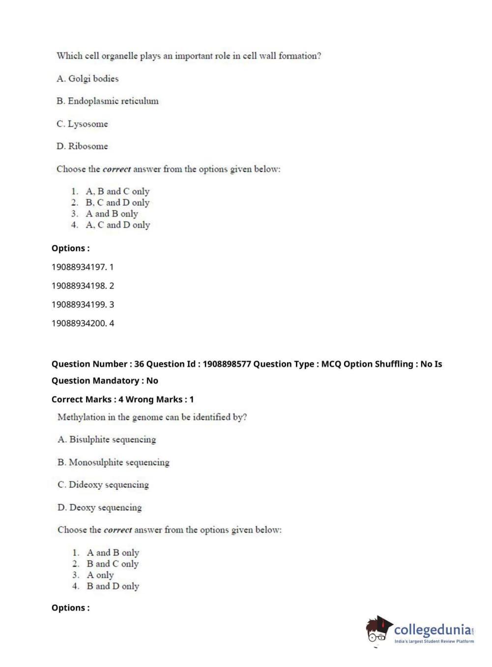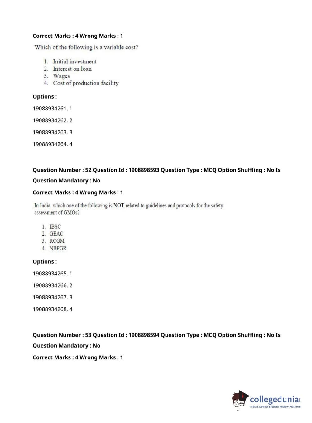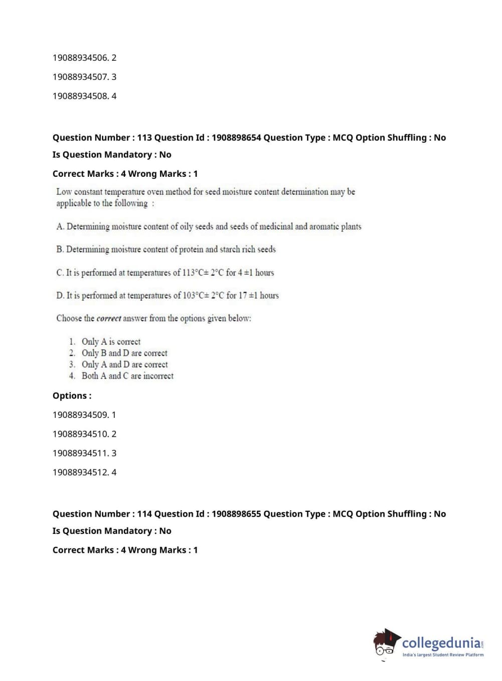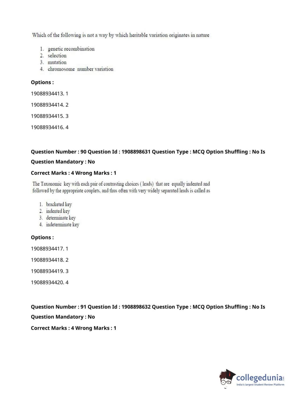 ICAR AIEEA 2021 JRF - ECONOMIC BOTANY AND PLANT GENETIC RESOURCES Question Paper with Answer Key PDFs Afternoon Session