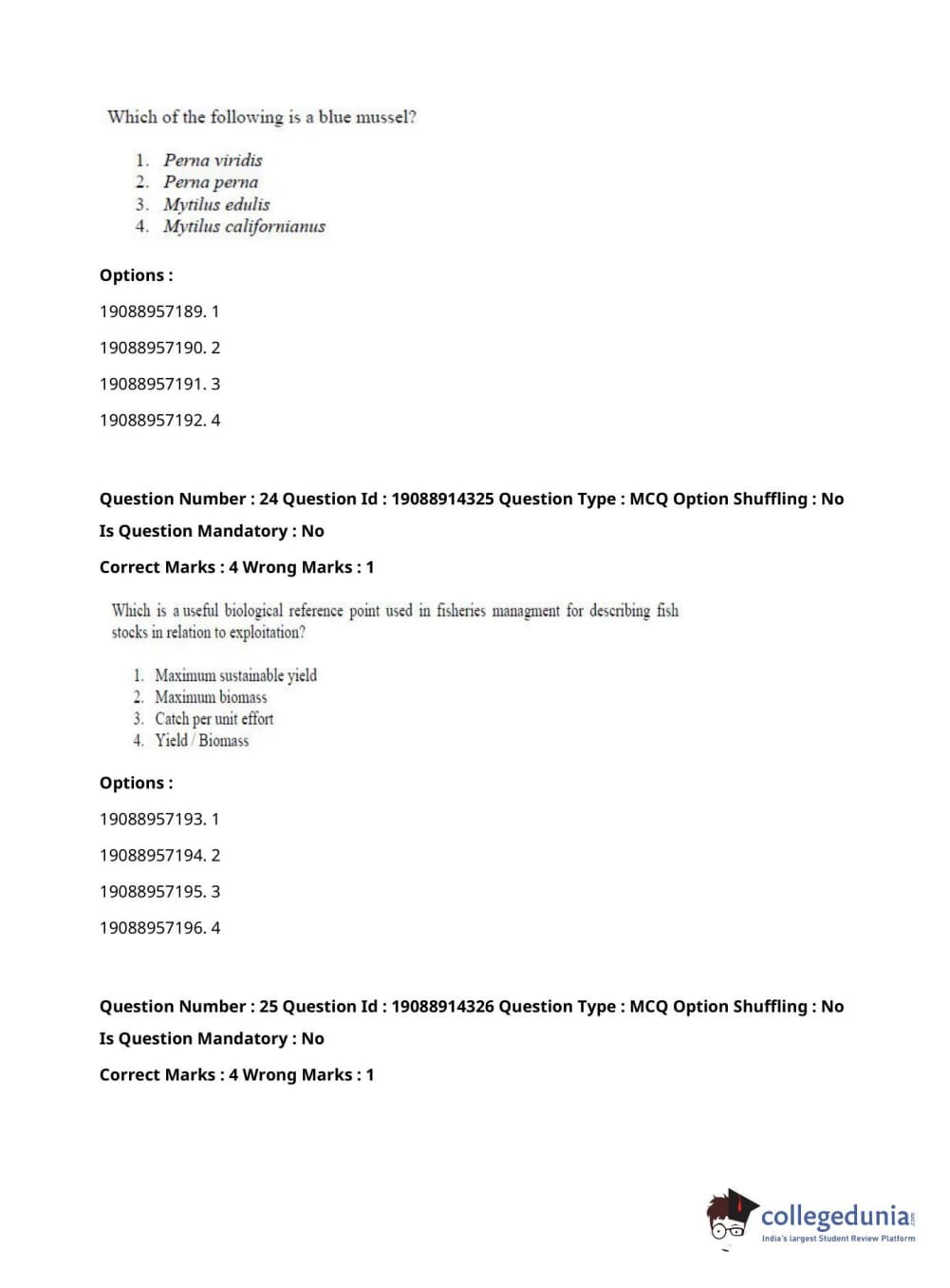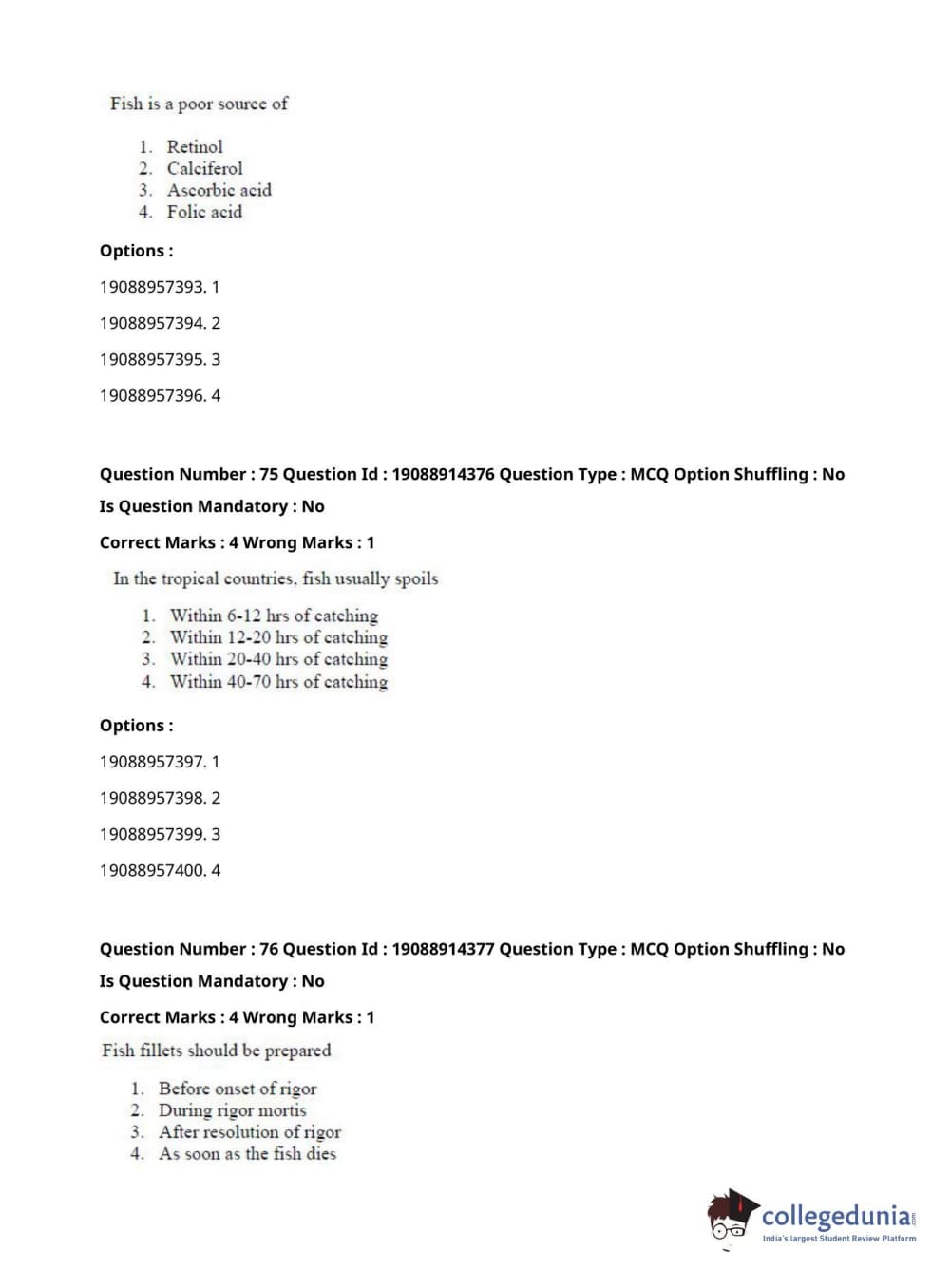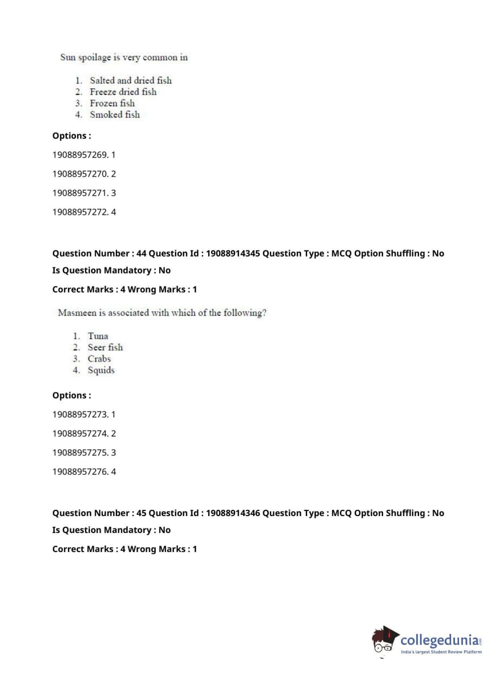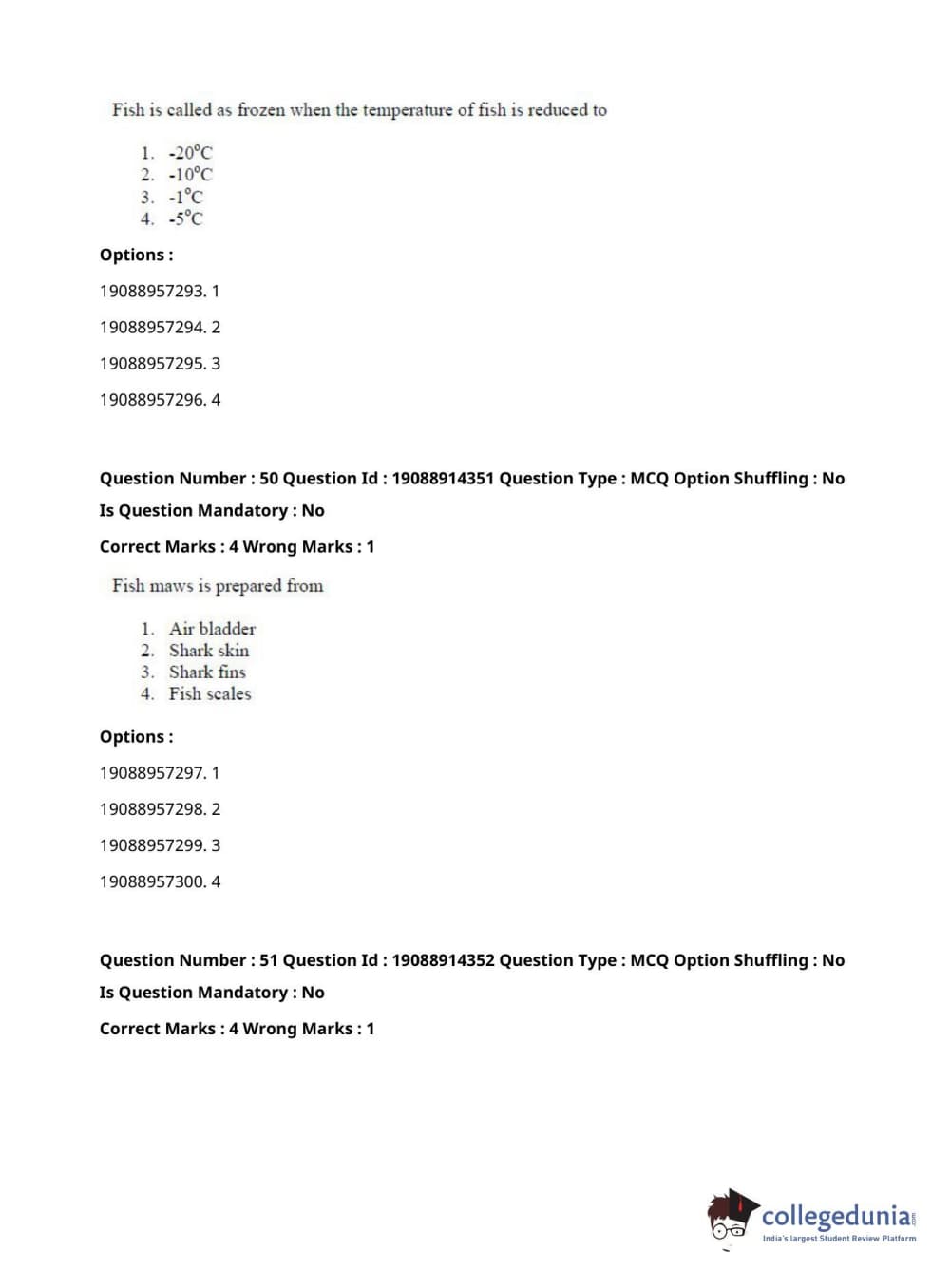 | ICAR AIEEA 2021 JRF - FISH PROCESSING TECHNOLOGY AND FISH POST HARVEST TECHNOLOGY Question Paper PDF | ICAR AIEEA 2021 JRF - FISH PROCESSING TECHNOLOGY AND FISH POST HARVEST TECHNOLOGY Answer Key PDF |