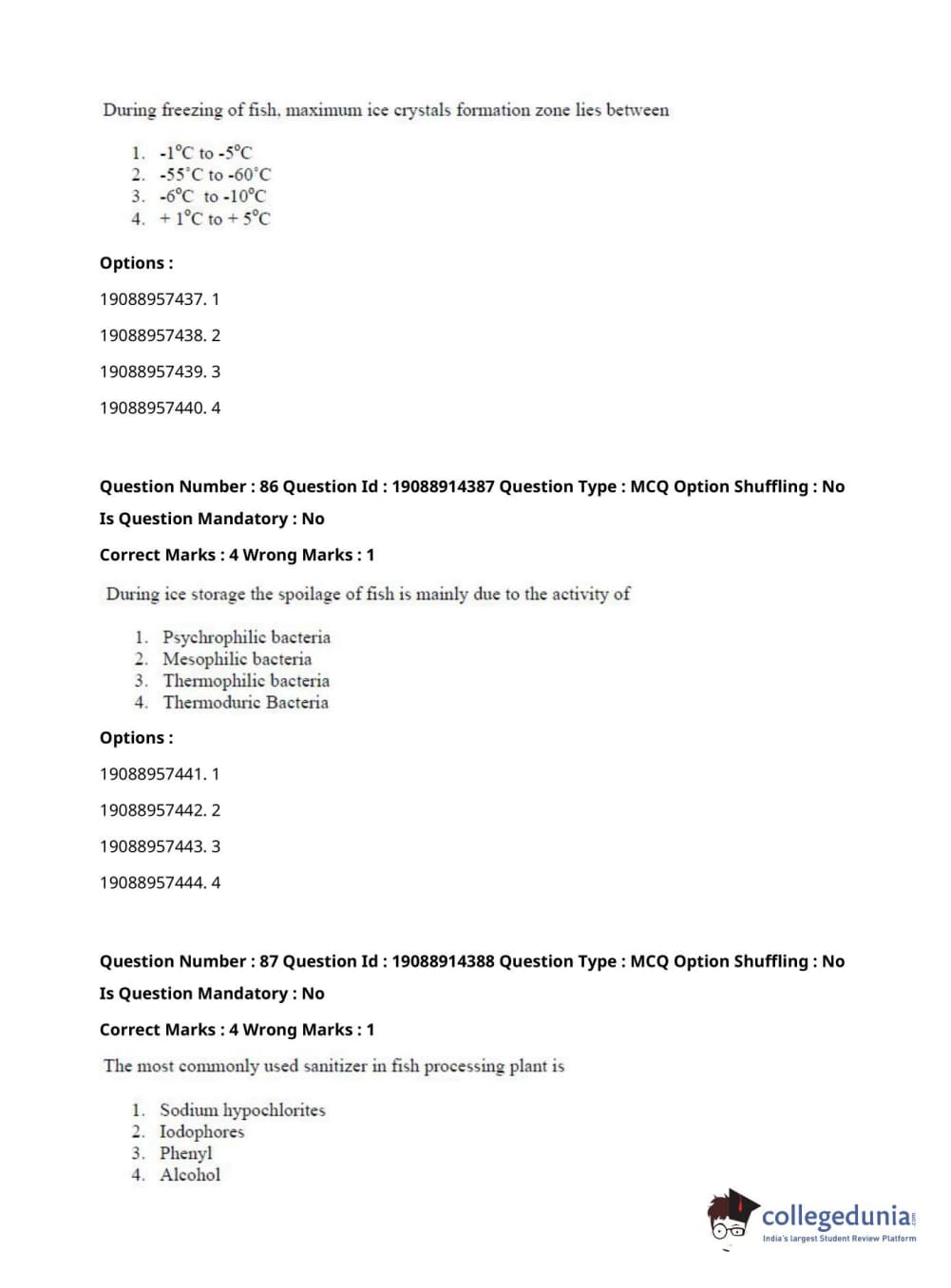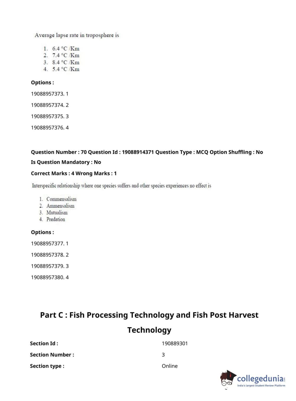 ICAR AIEEA 2021 JRF - FISH PROCESSING TECHNOLOGY AND FISH POST HARVEST TECHNOLOGY Question Paper with Answer Key PDFs Afternoon Session