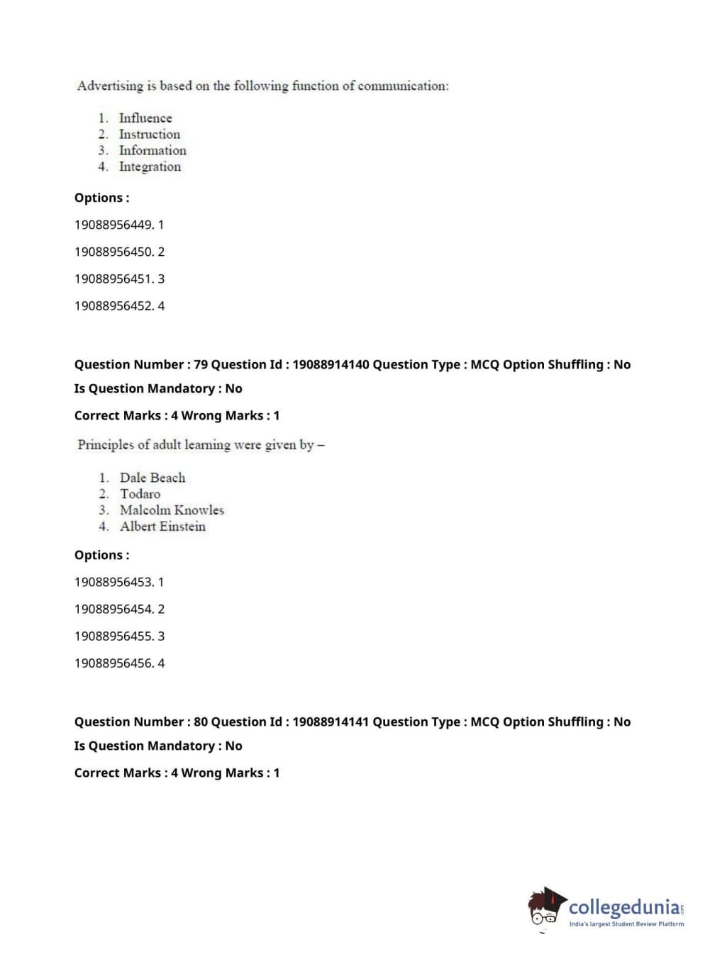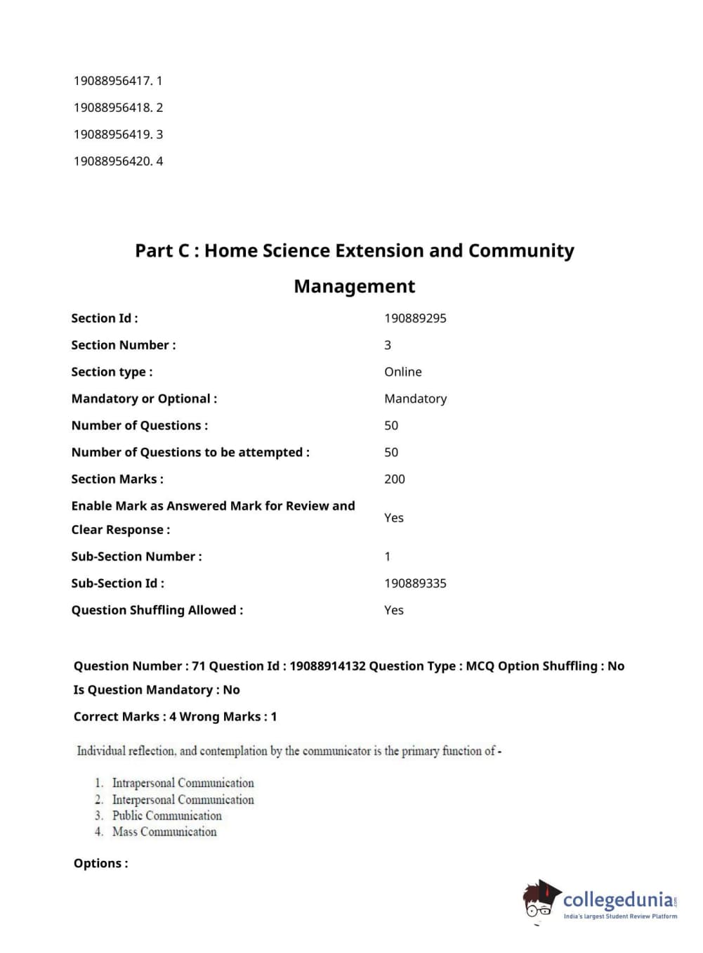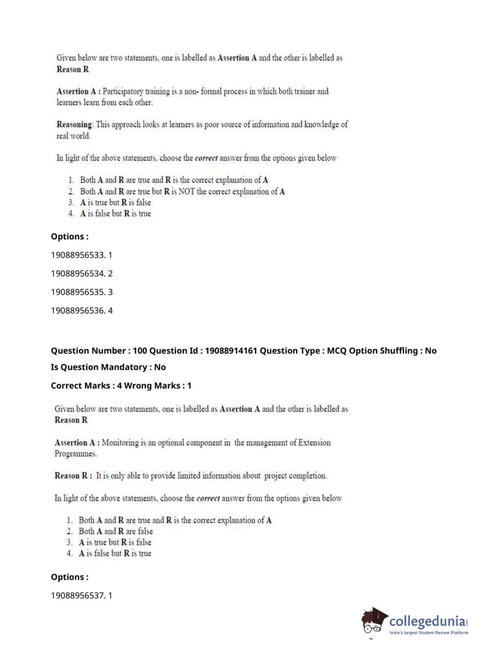 ICAR AIEEA 2021 JRF - HOME SCIENCE EXTENSION AND COMMUNITY MANAGEMENT Question paper with answer key pdf conducted on September 17, 2021 in Afternoon Session is available for download. The exam was successfully organized by National Testing Agency (NTA). The question paper comprised a total of 120 questions.