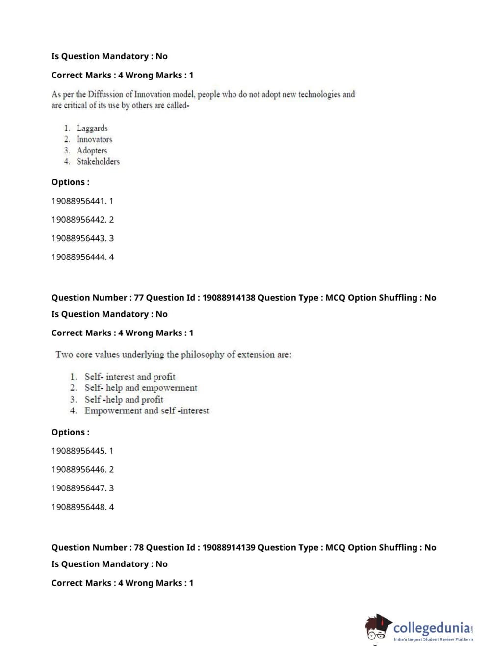 ICAR AIEEA 2021 JRF - HOME SCIENCE EXTENSION AND COMMUNITY MANAGEMENT Question Paper with Answer Key PDFs Afternoon Session