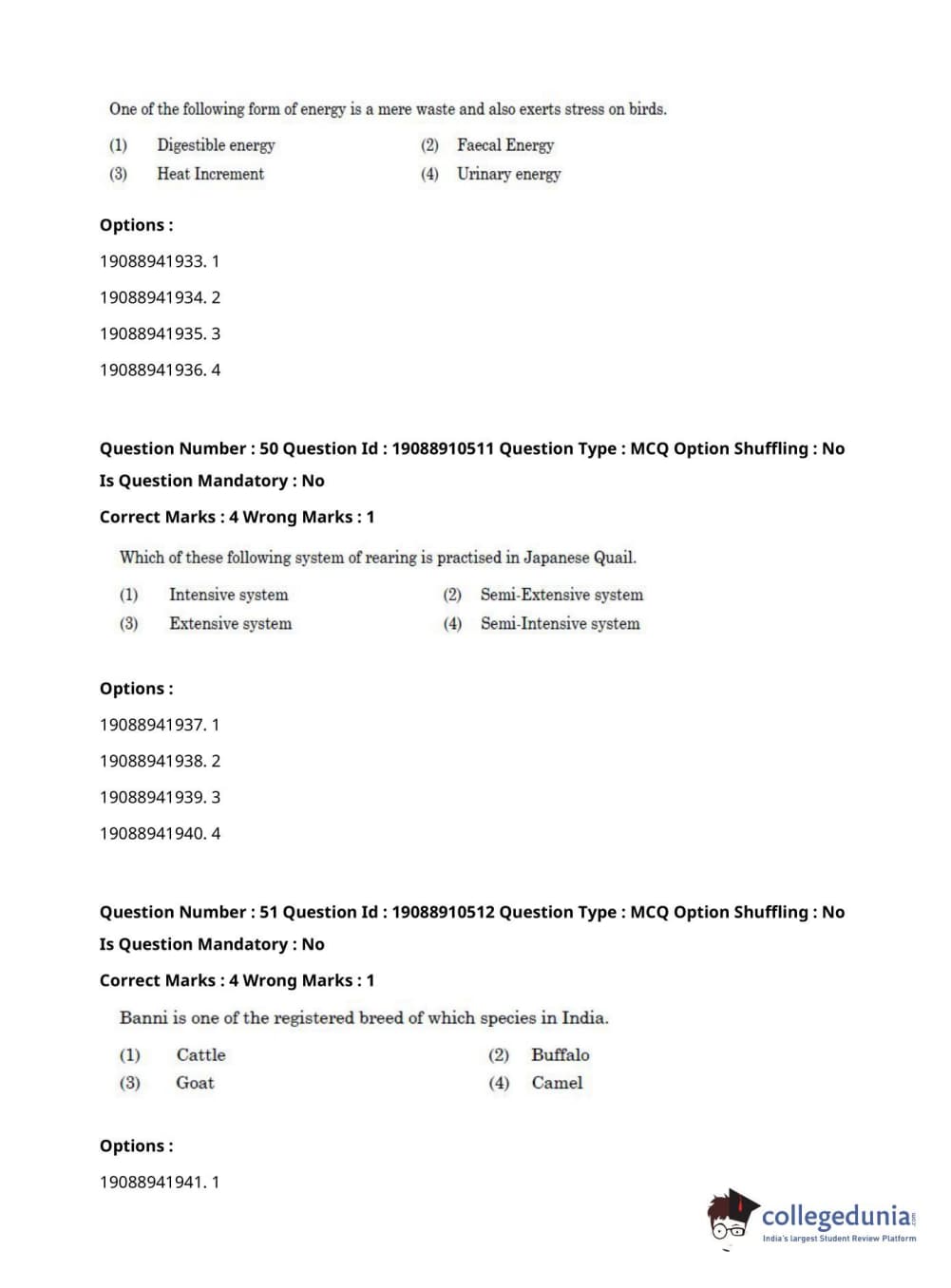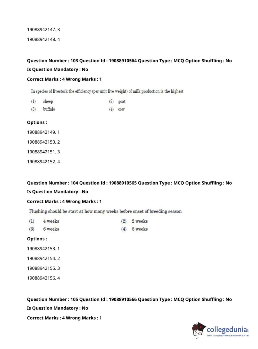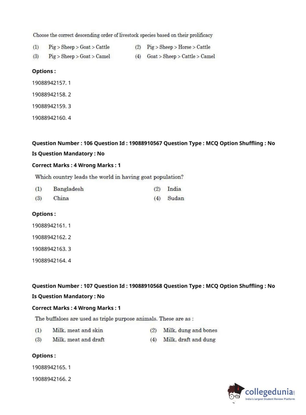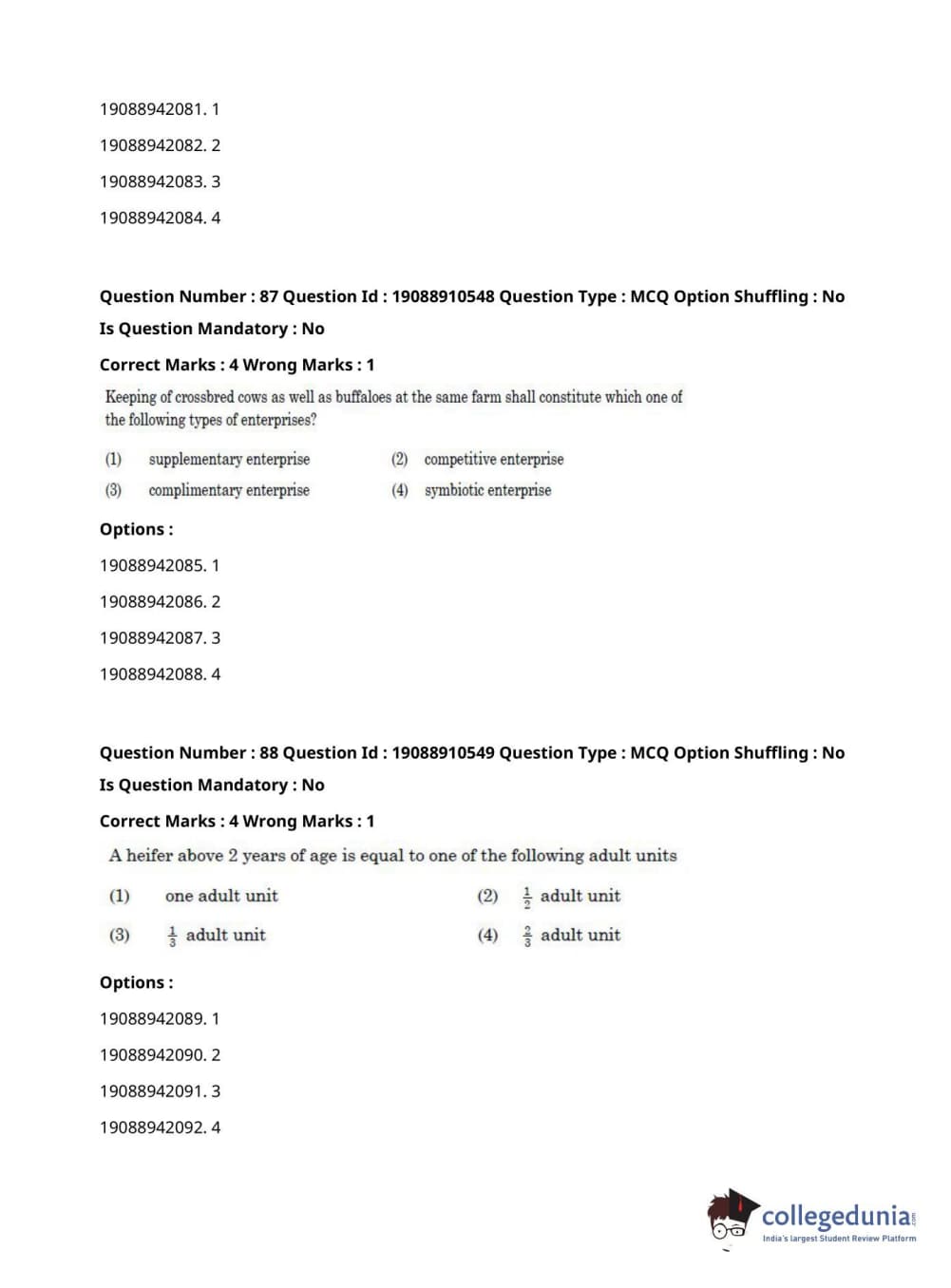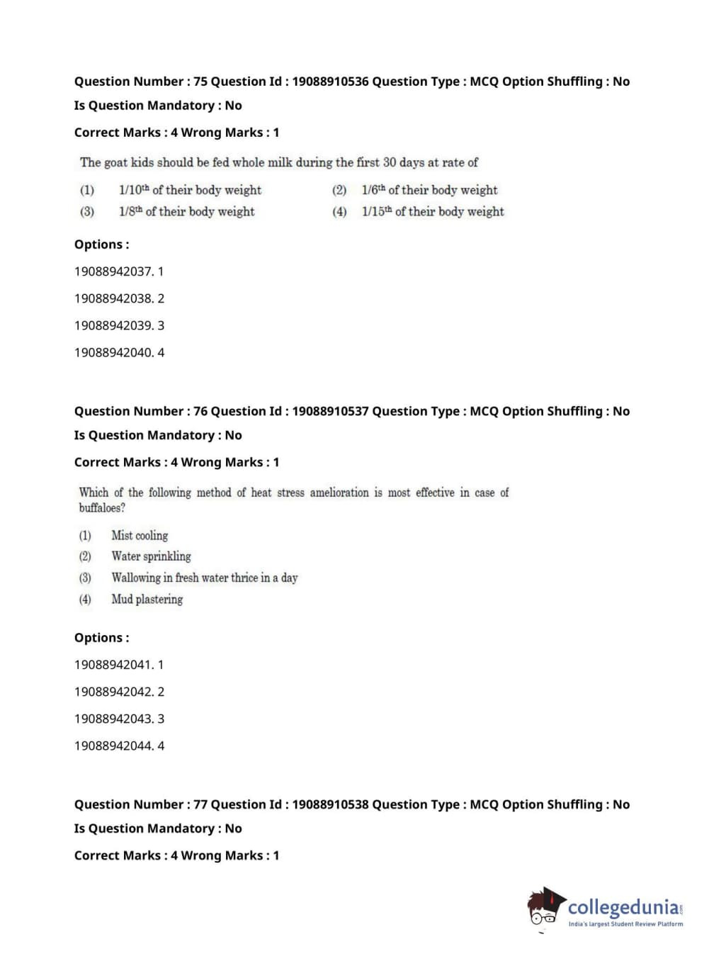 ICAR AIEEA 2021 JRF - LIVESTOCK PRODUCTION MANAGEMENT Question Paper with Answer Key PDFs Afternoon Session
