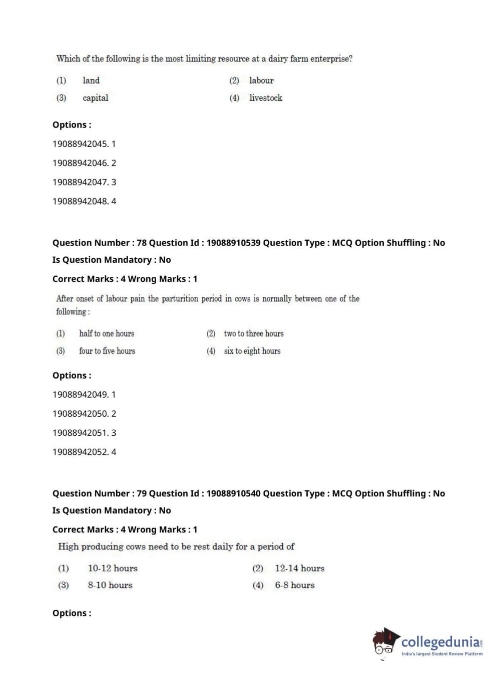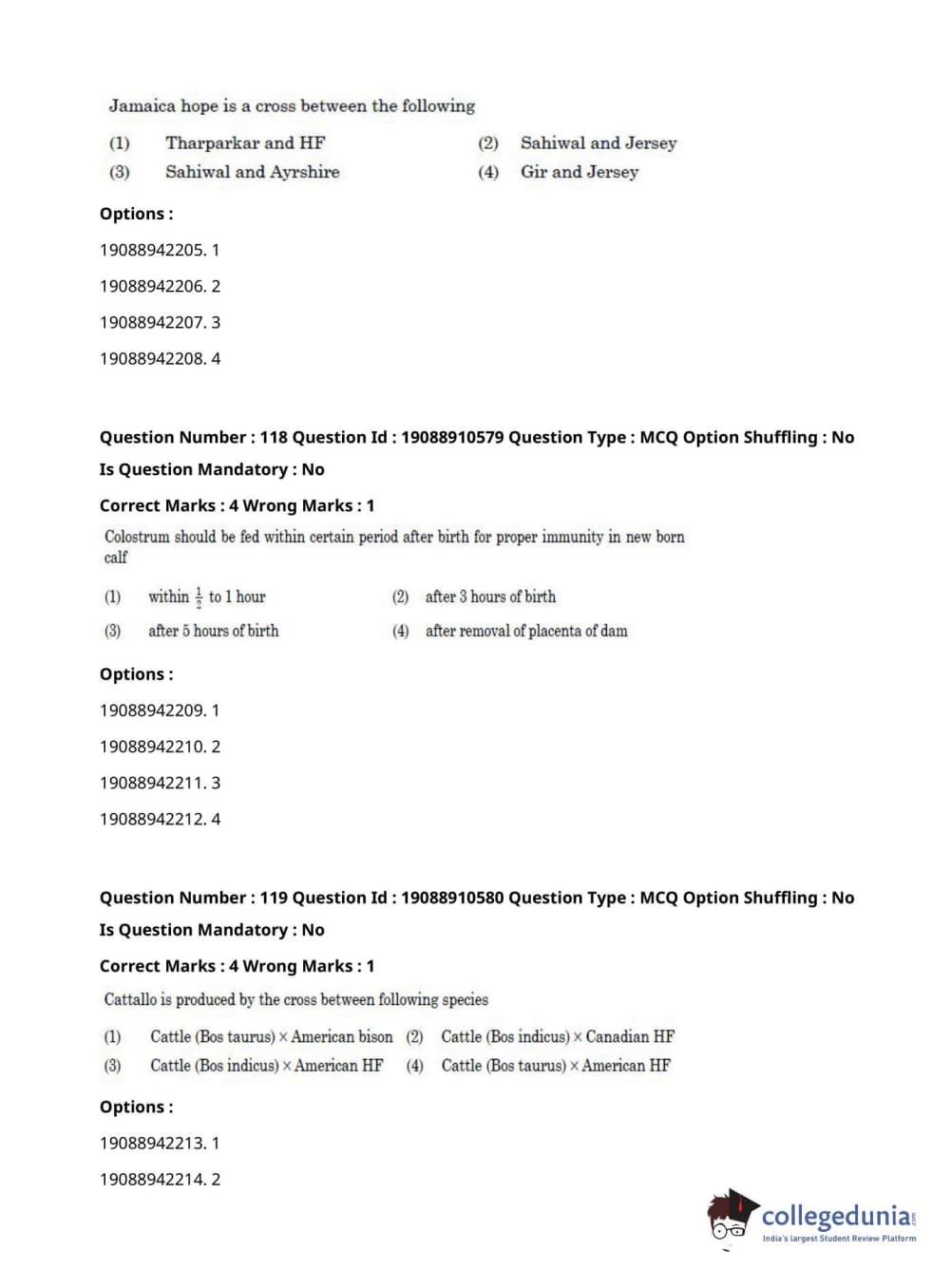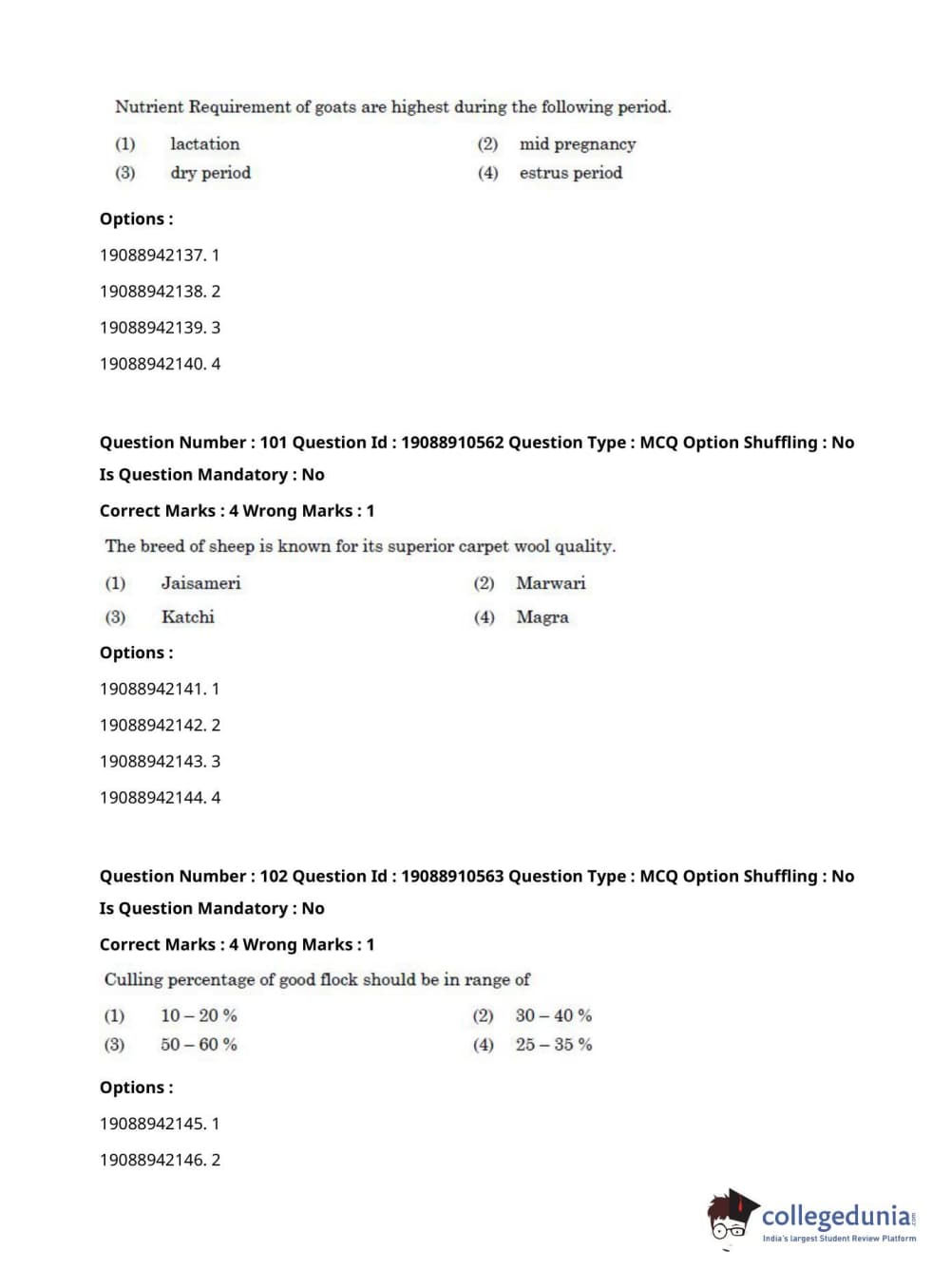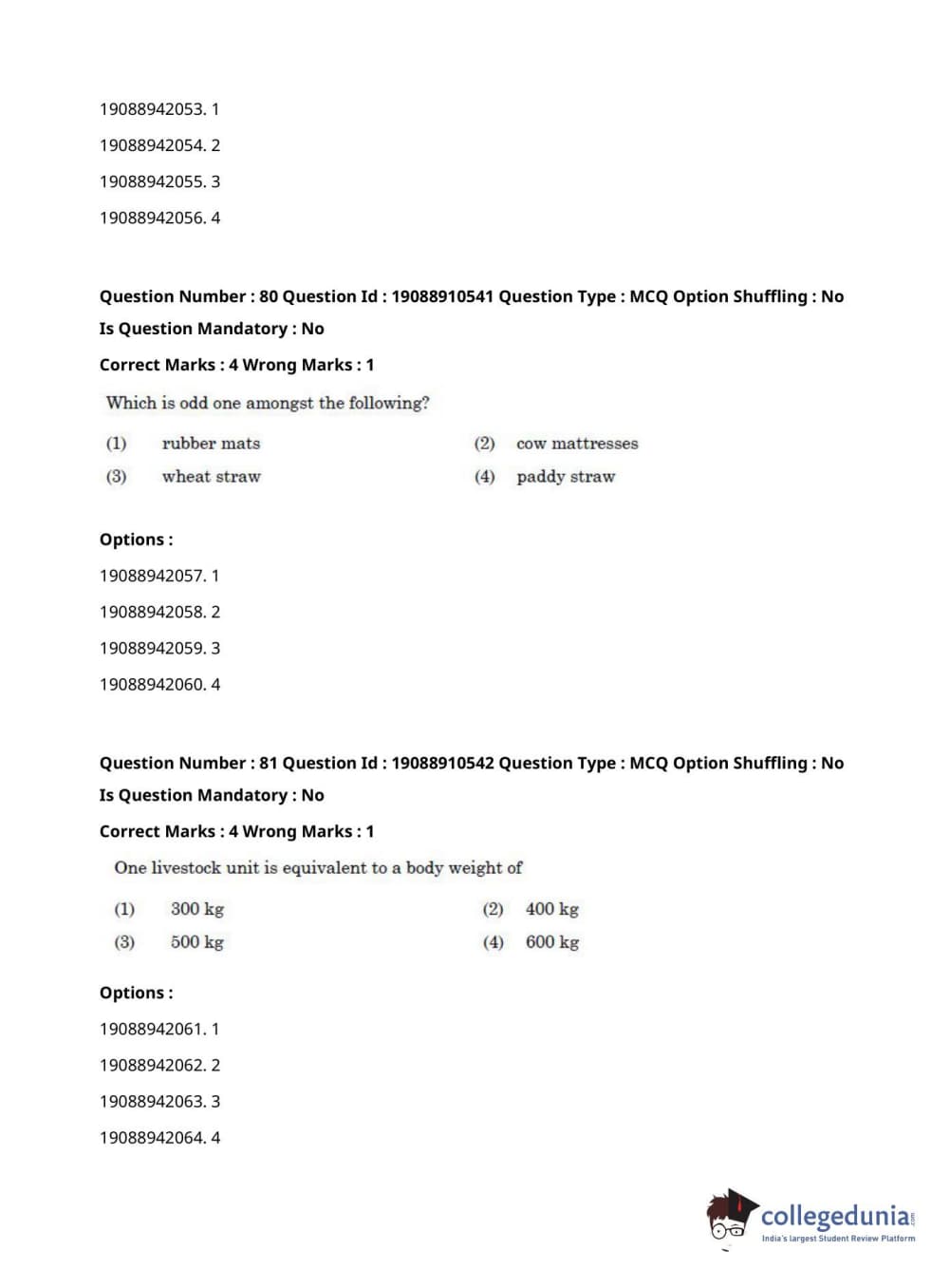 ICAR AIEEA 2021 JRF - LIVESTOCK PRODUCTION MANAGEMENT Question Paper with Answer Key PDFs Afternoon Session