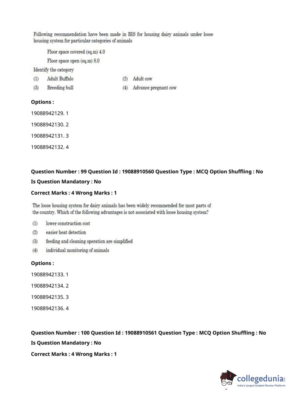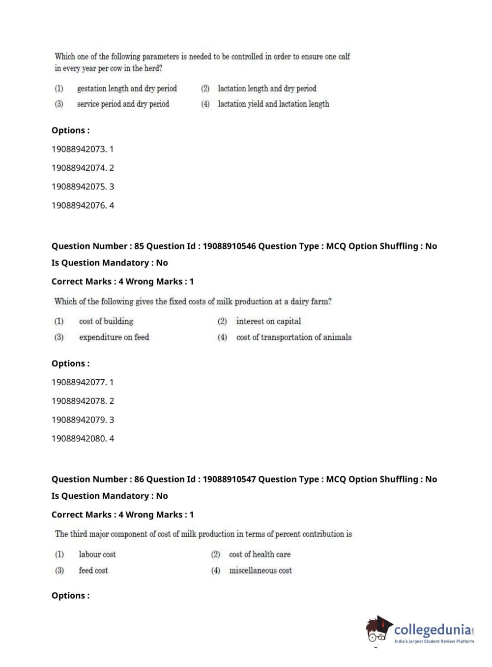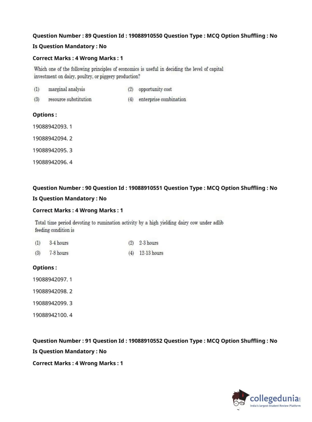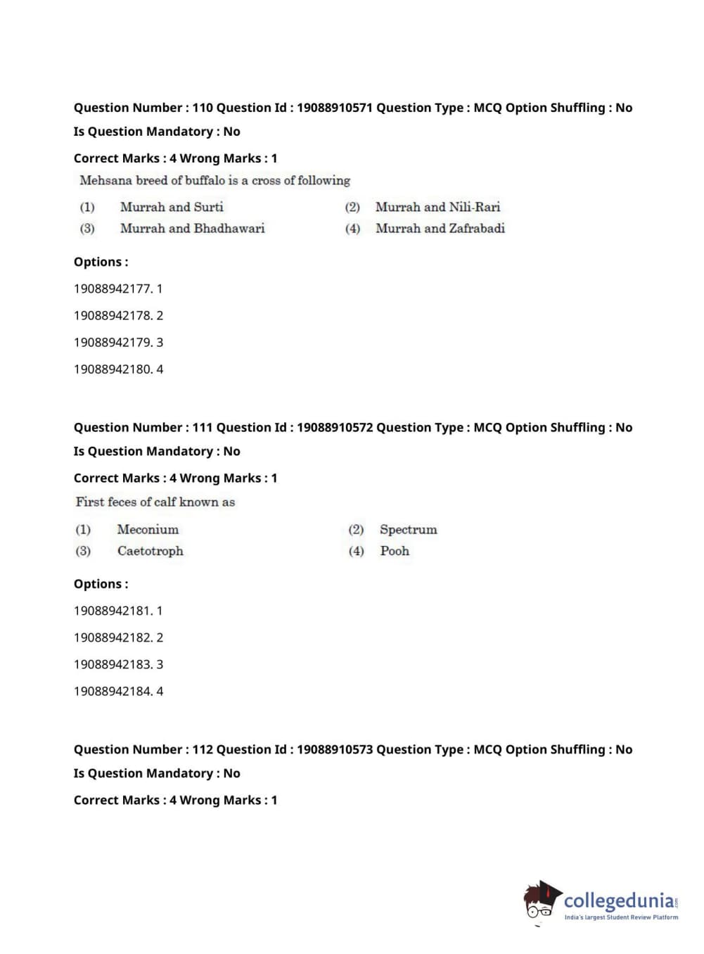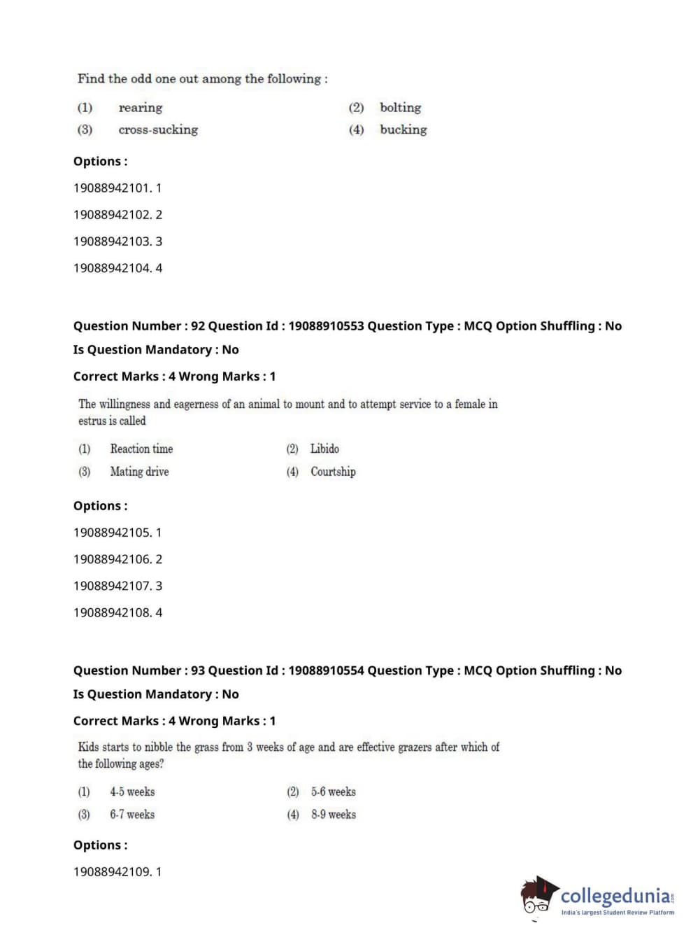 ICAR AIEEA 2021 JRF - LIVESTOCK PRODUCTION MANAGEMENT Question Paper with Answer Key PDFs Afternoon Session