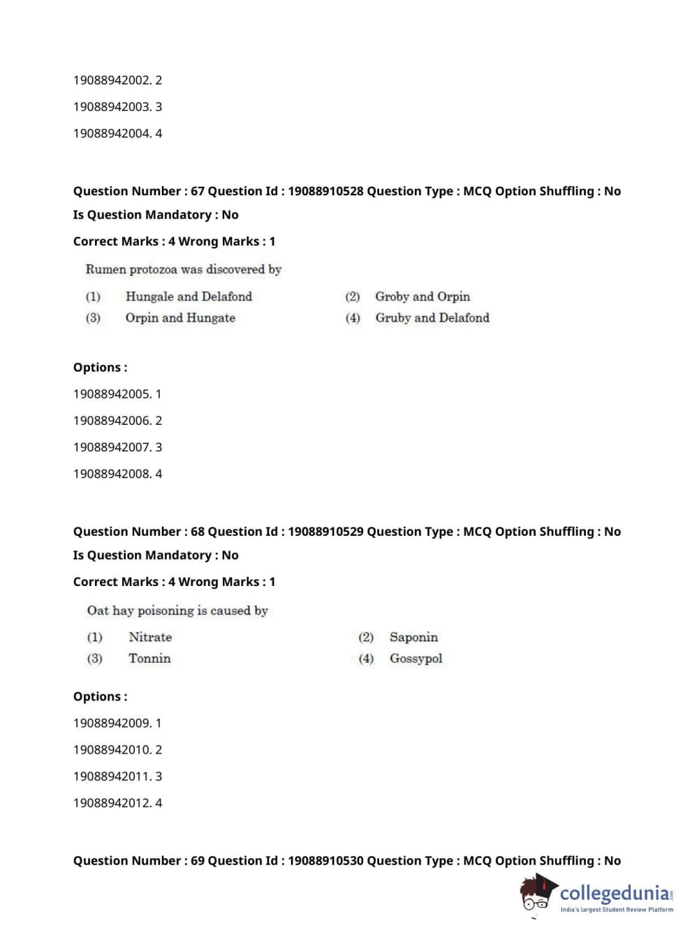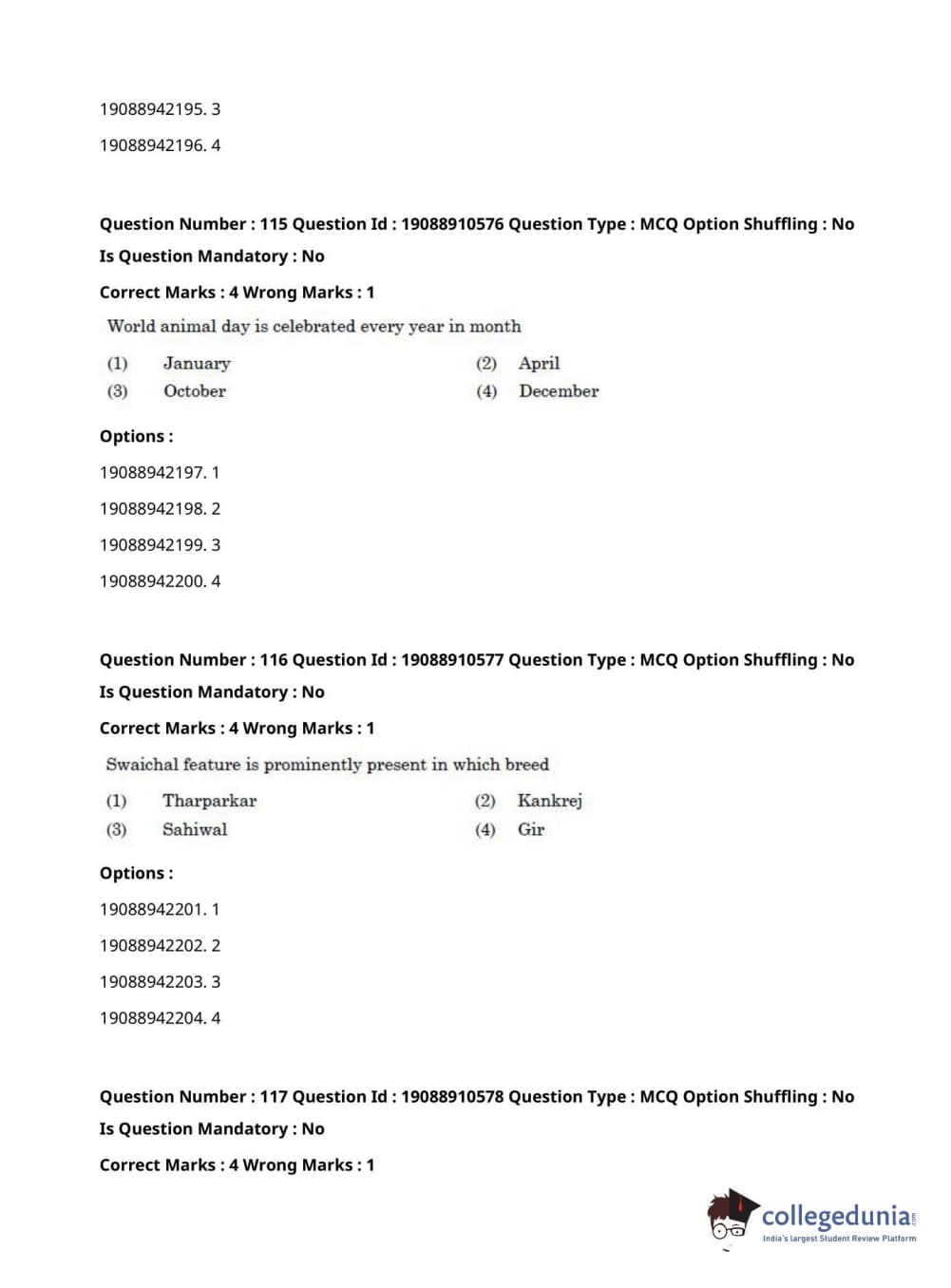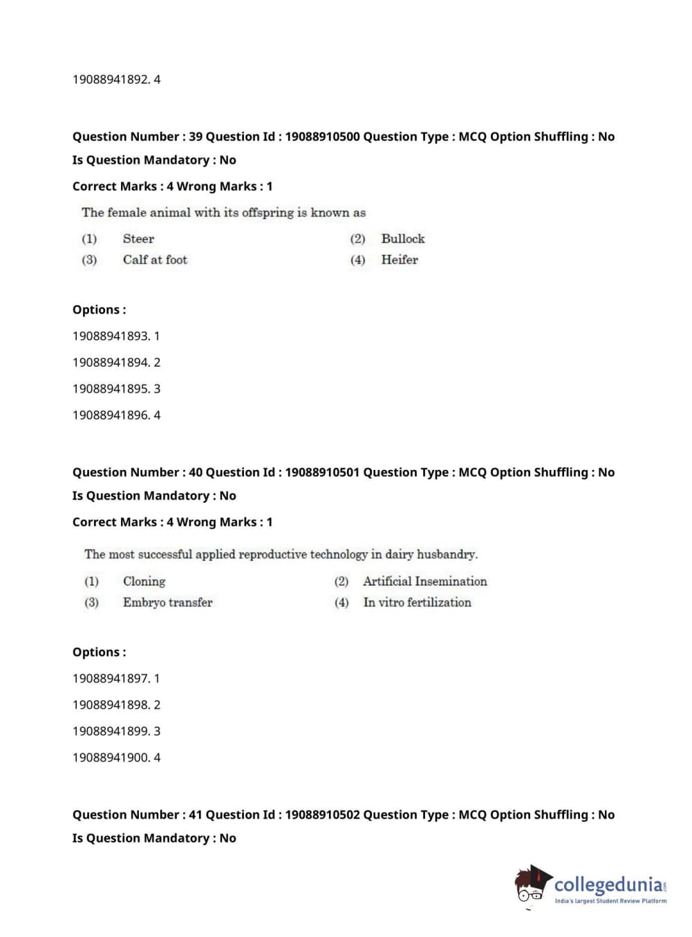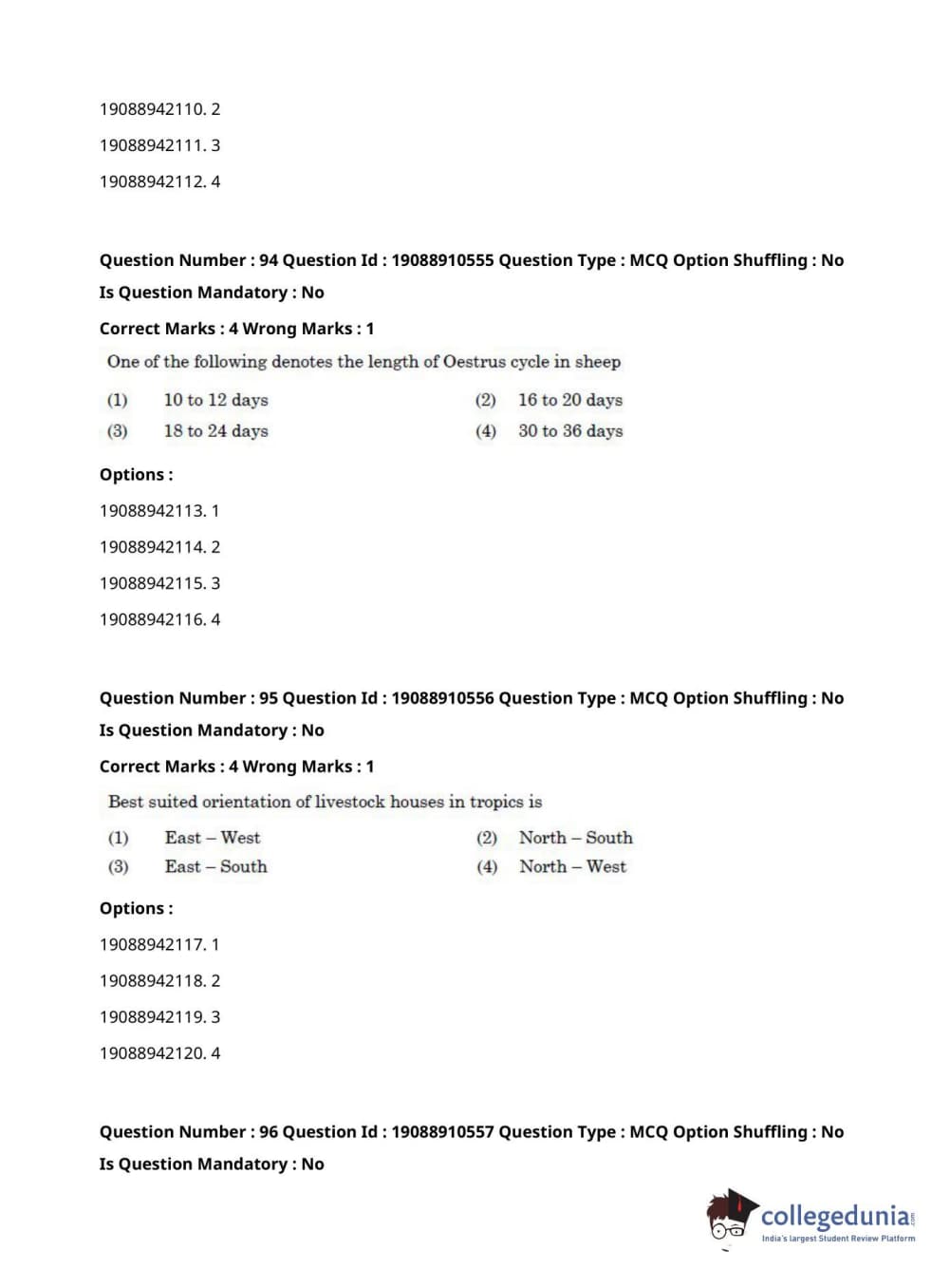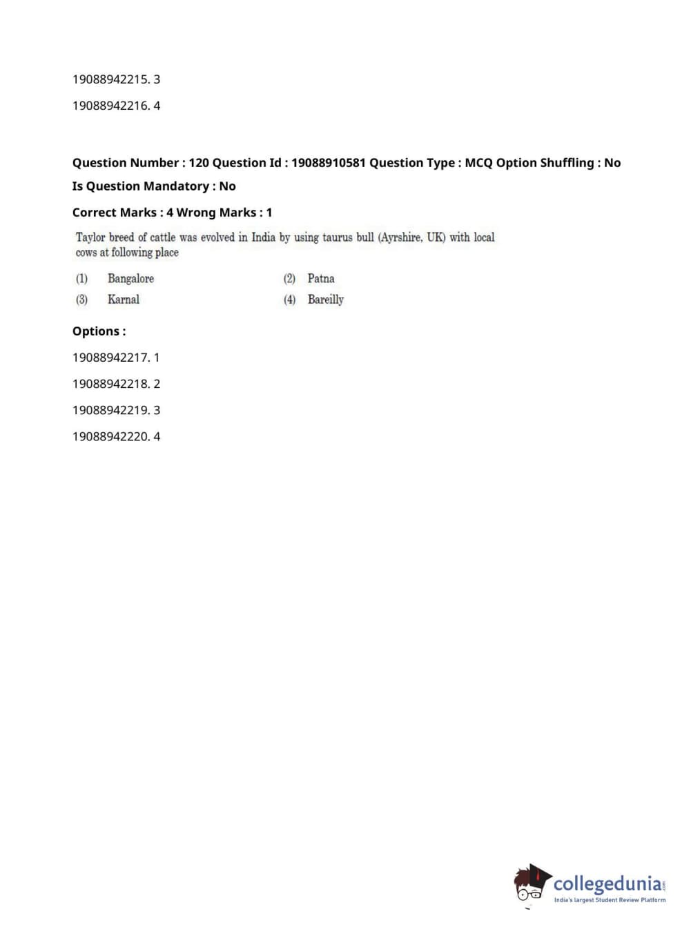 ICAR AIEEA 2021 JRF - LIVESTOCK PRODUCTION MANAGEMENT Question Paper with Answer Key PDFs Afternoon Session