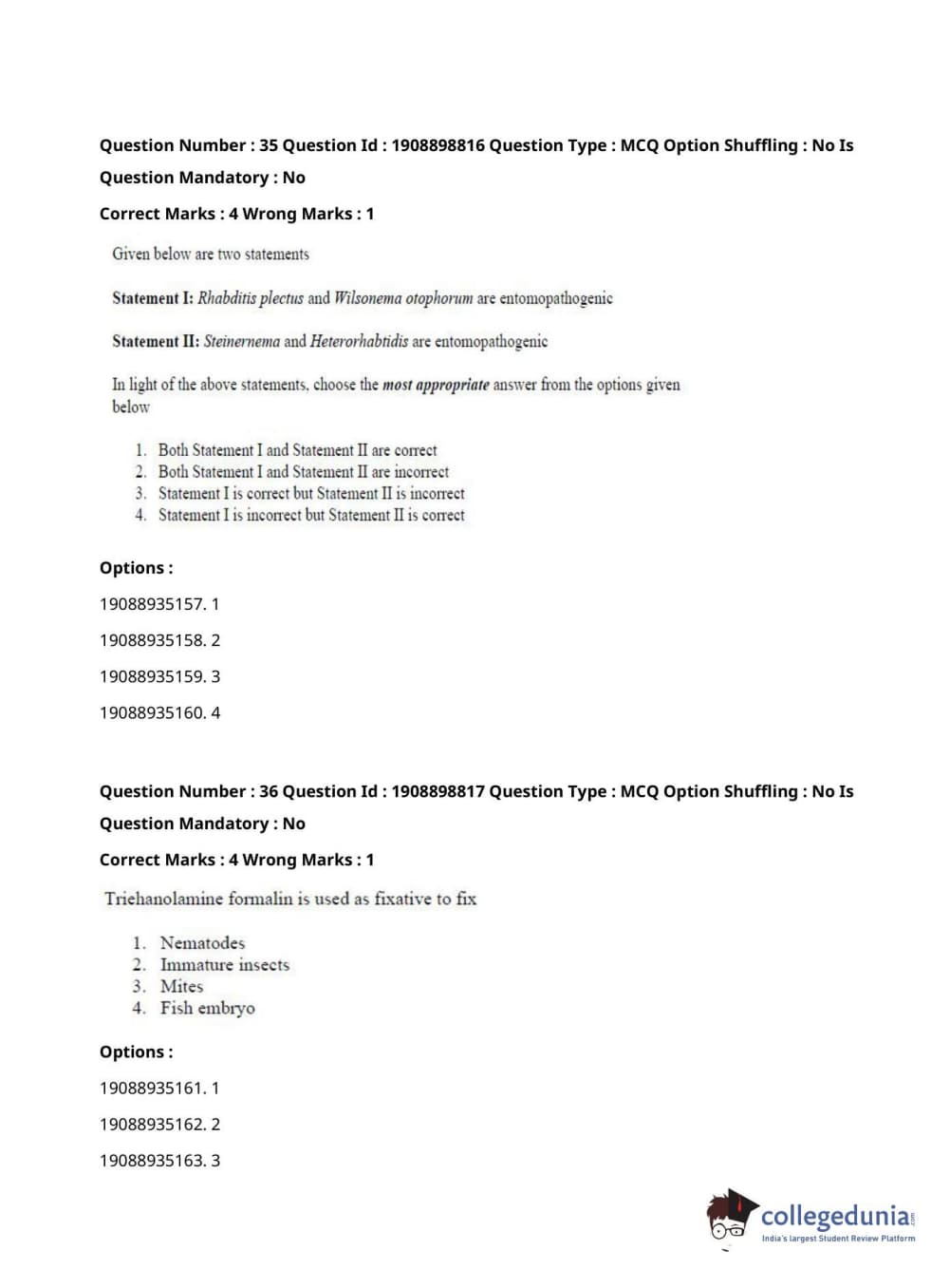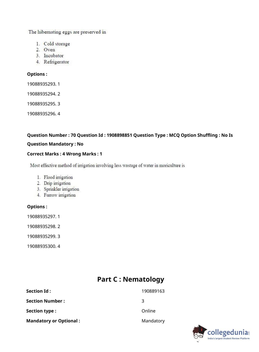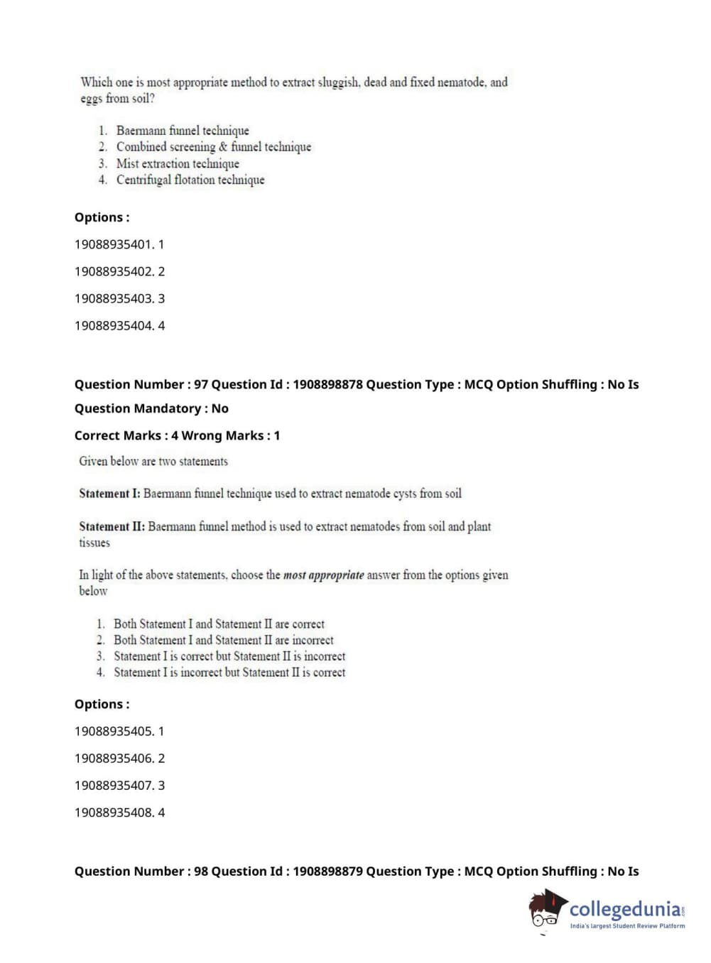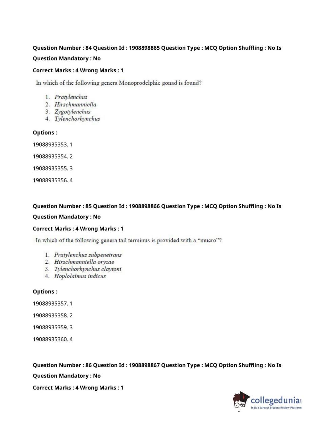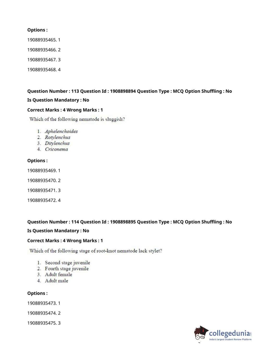 ICAR AIEEA 2021 JRF - NEMATOLOGY Question Paper with Answer Key PDFs Afternoon Session
