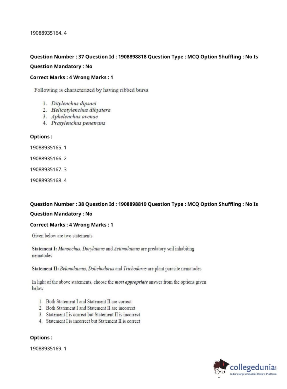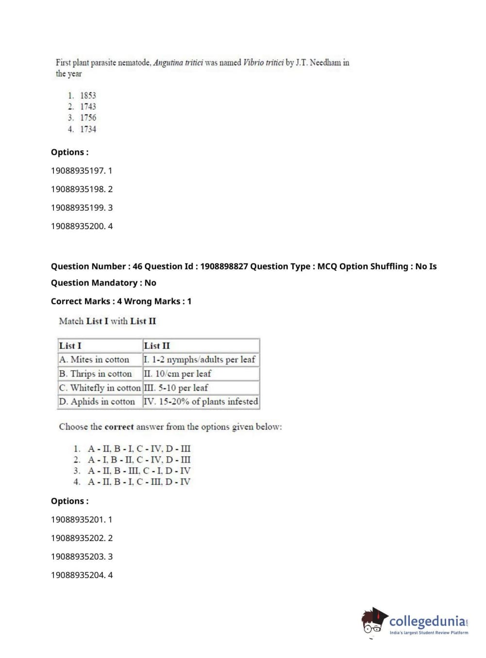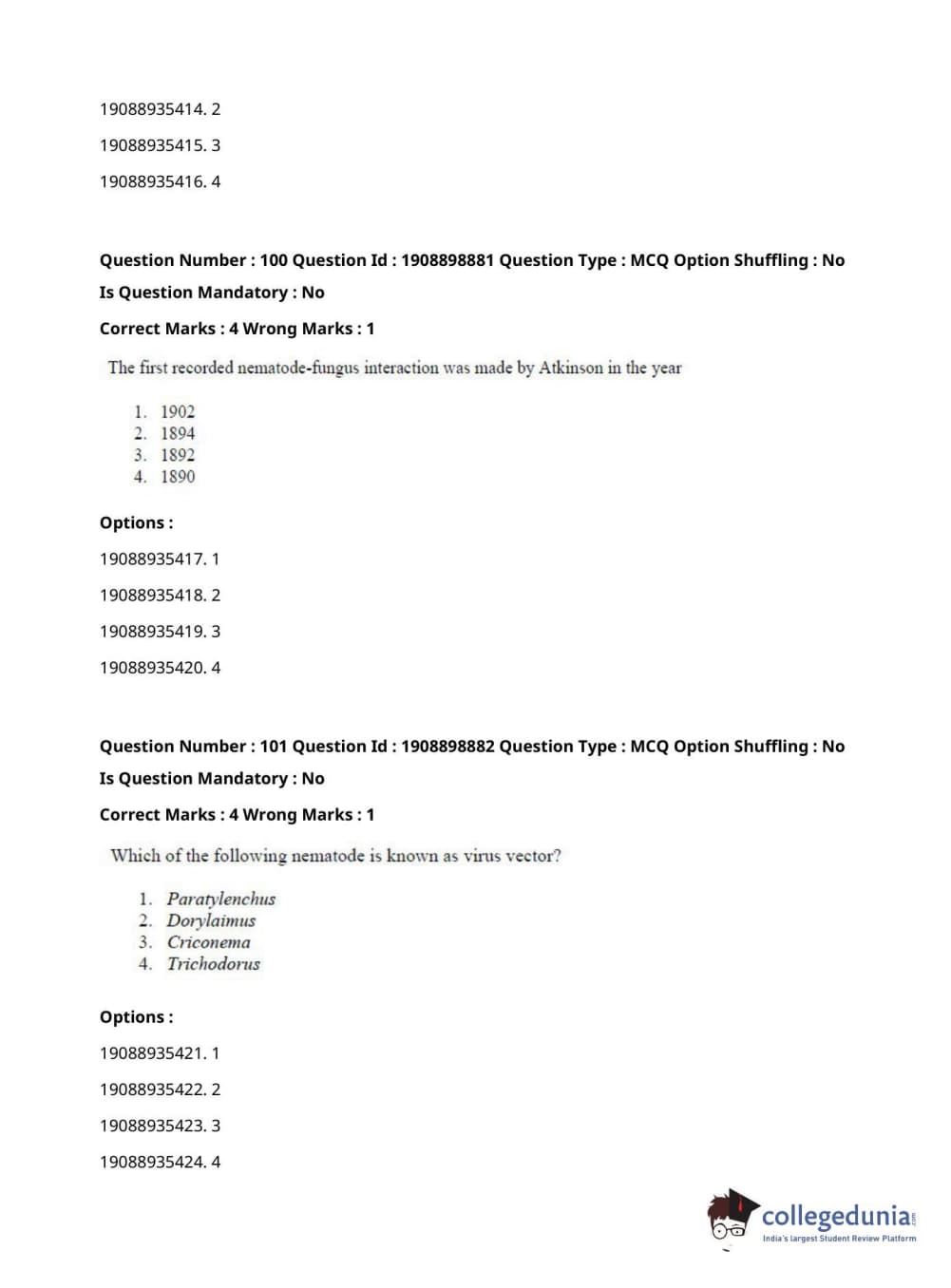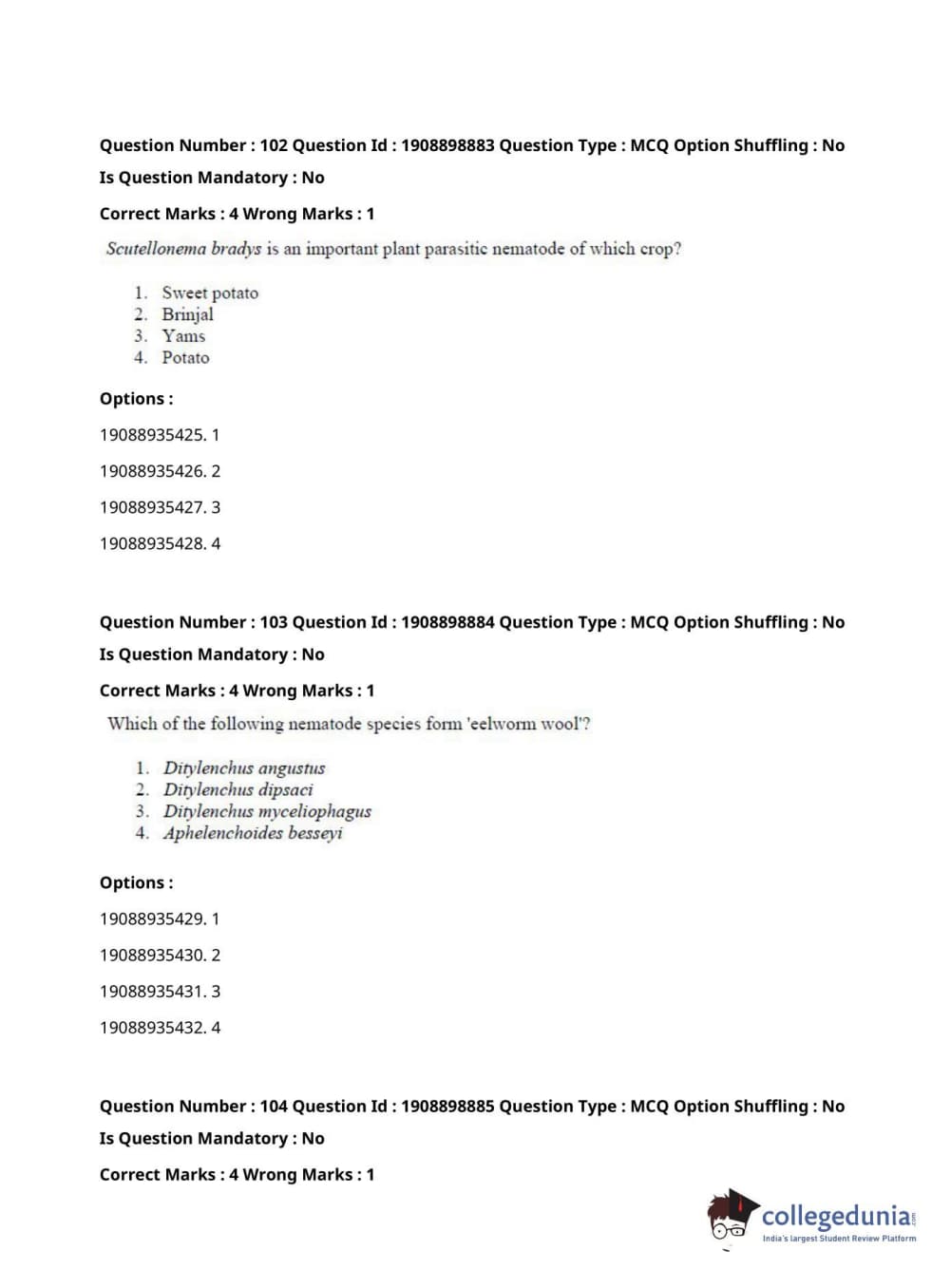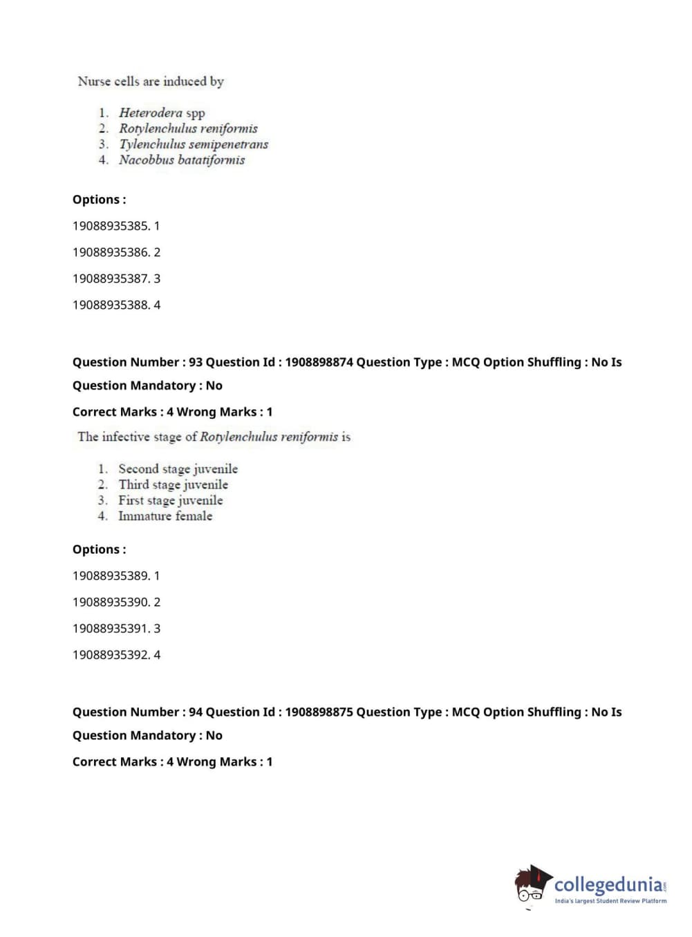 ICAR AIEEA 2021 JRF - NEMATOLOGY Question Paper with Answer Key PDFs Afternoon Session