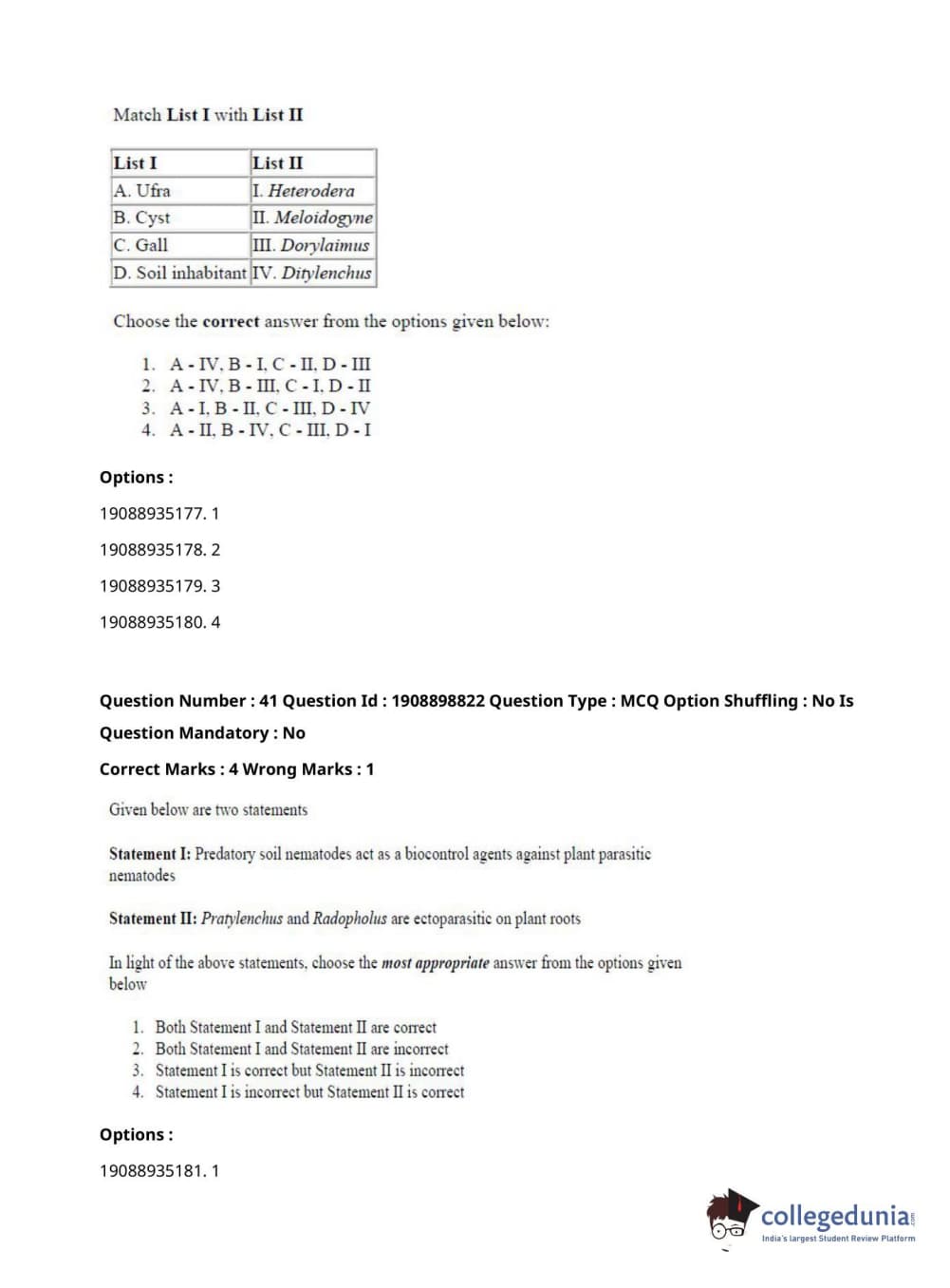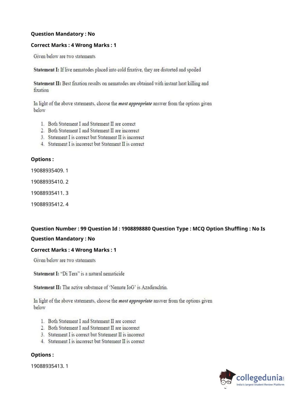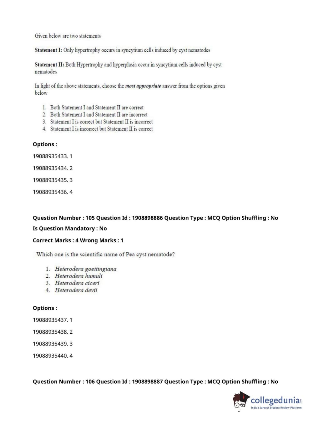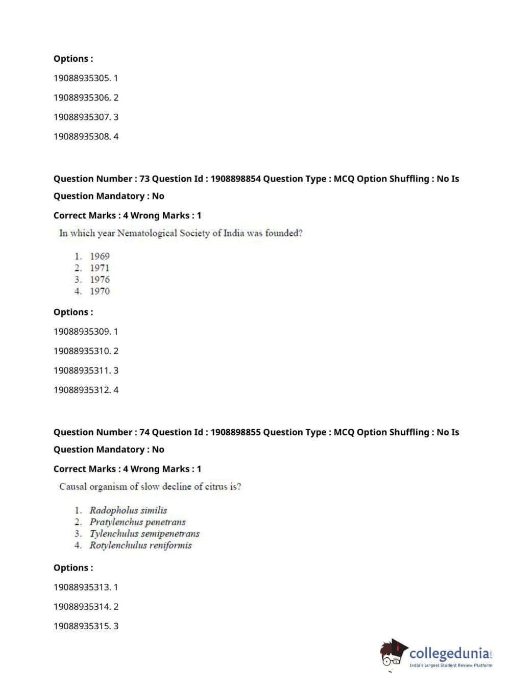 ICAR AIEEA 2021 JRF - NEMATOLOGY Question Paper with Answer Key PDFs Afternoon Session