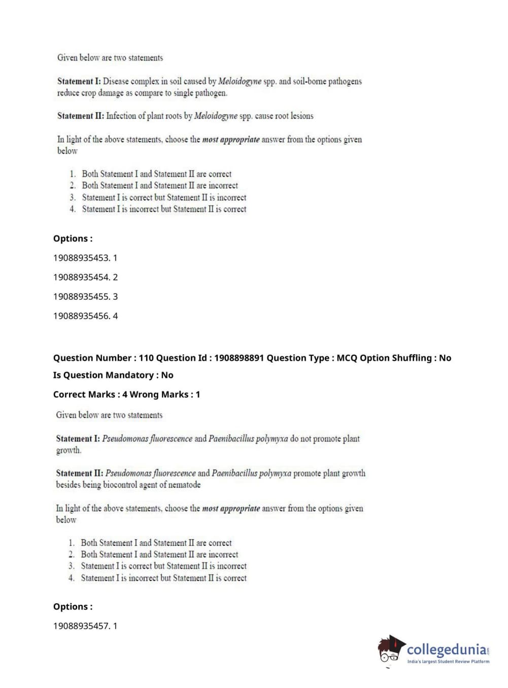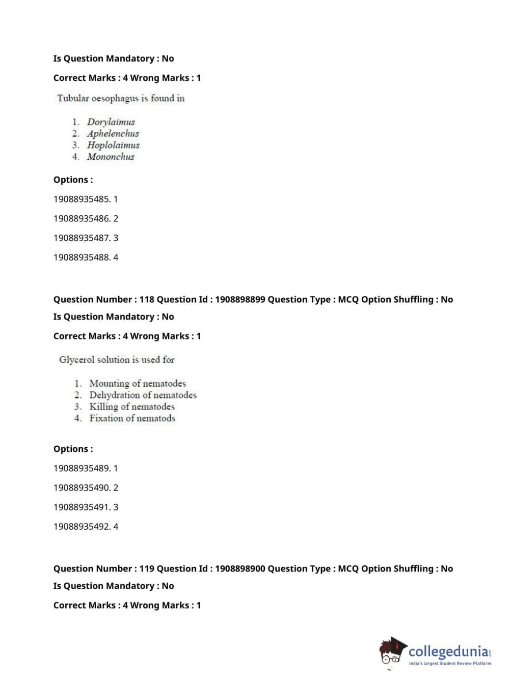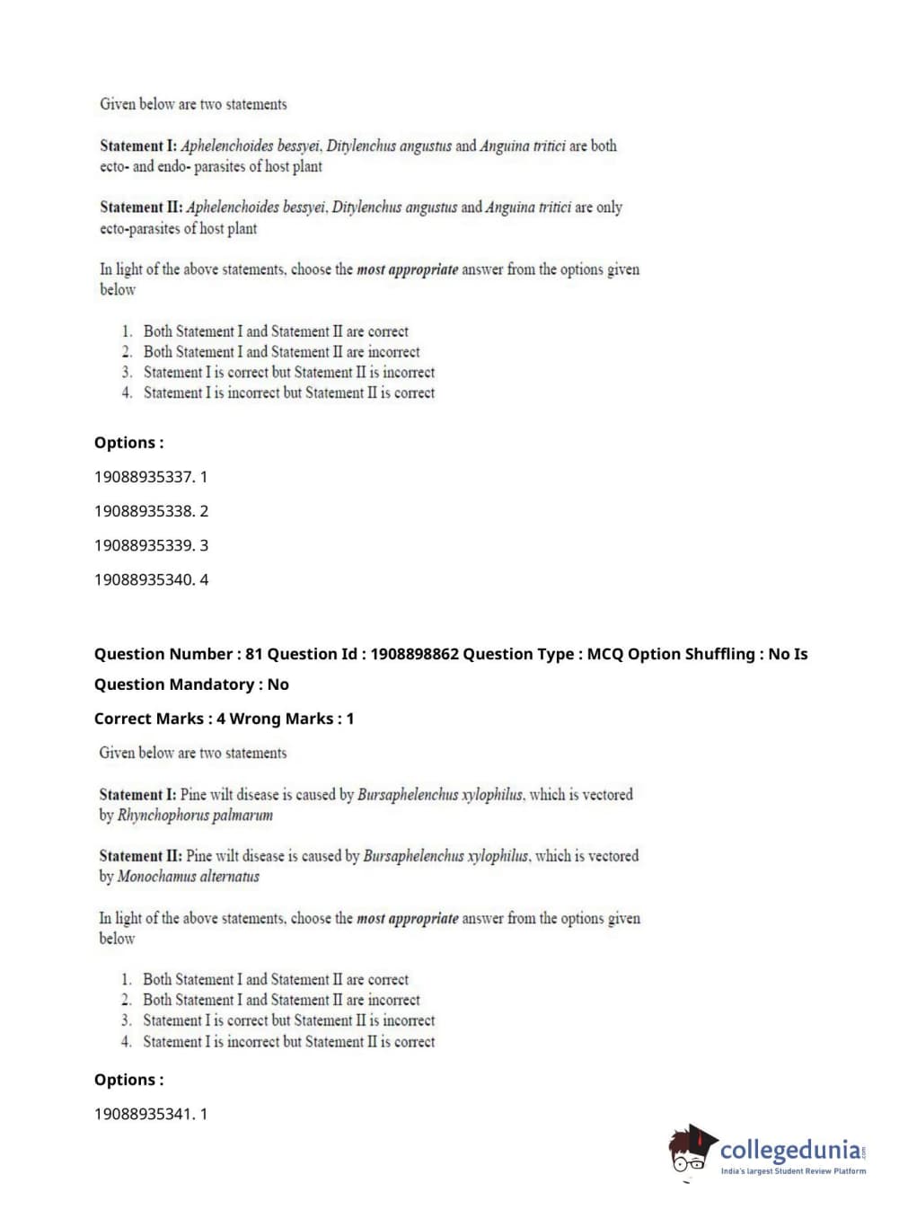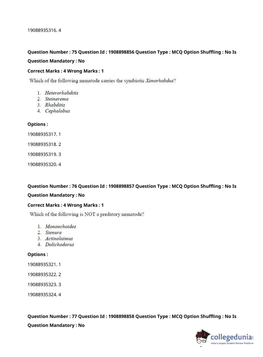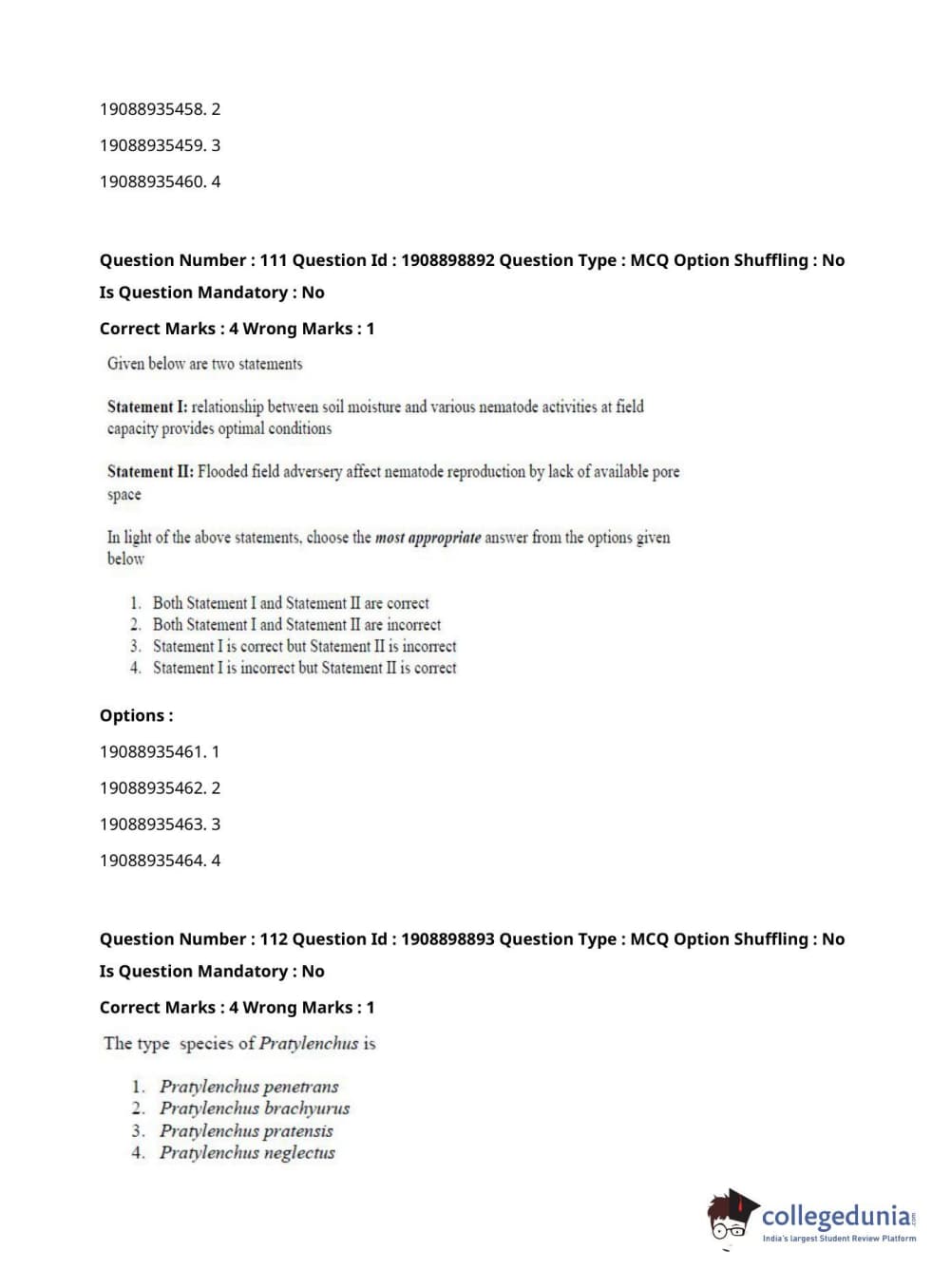 ICAR AIEEA 2021 JRF - NEMATOLOGY Question Paper with Answer Key PDFs Afternoon Session