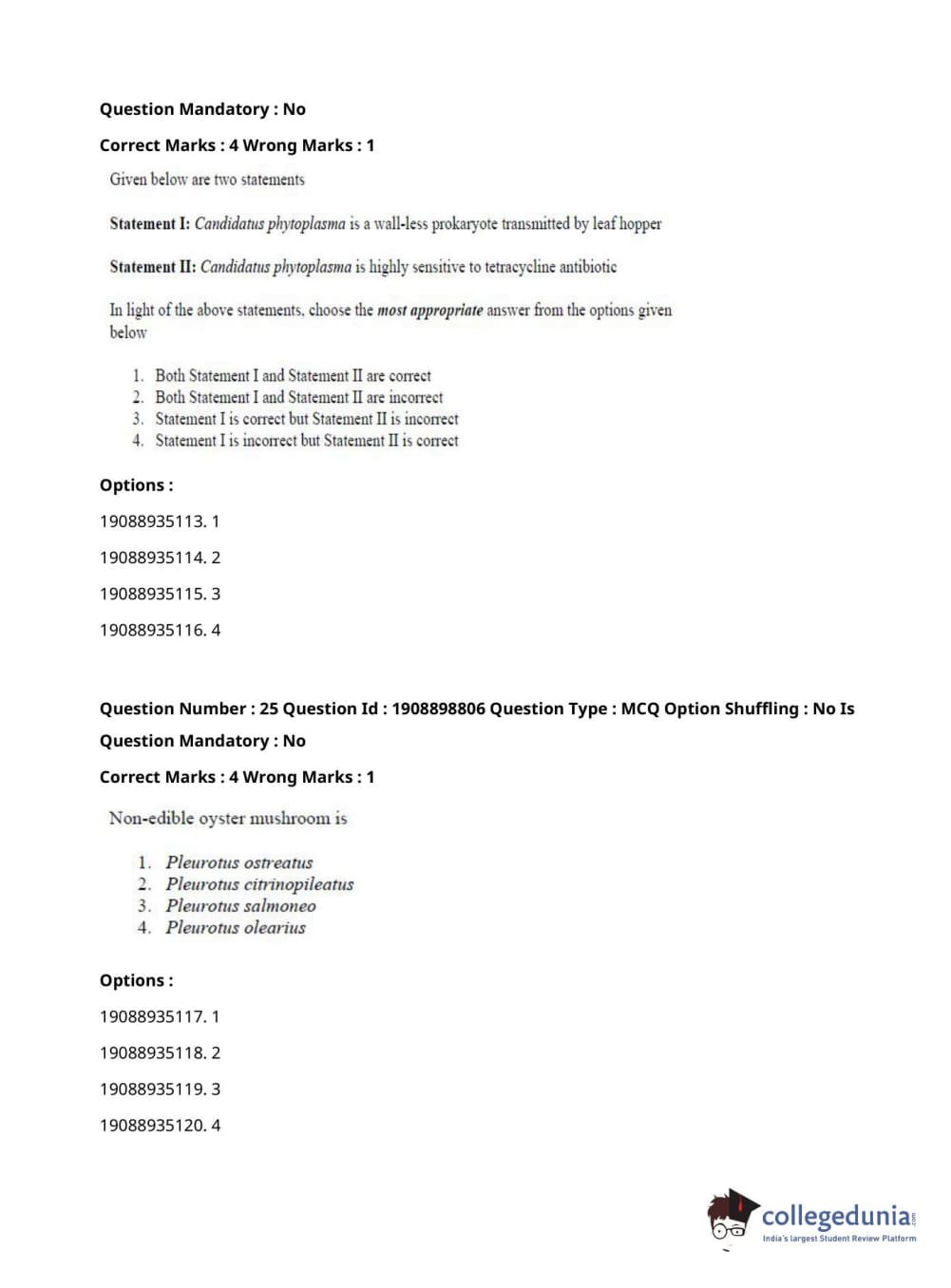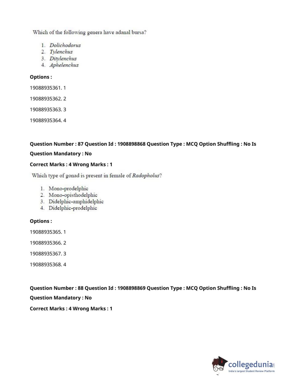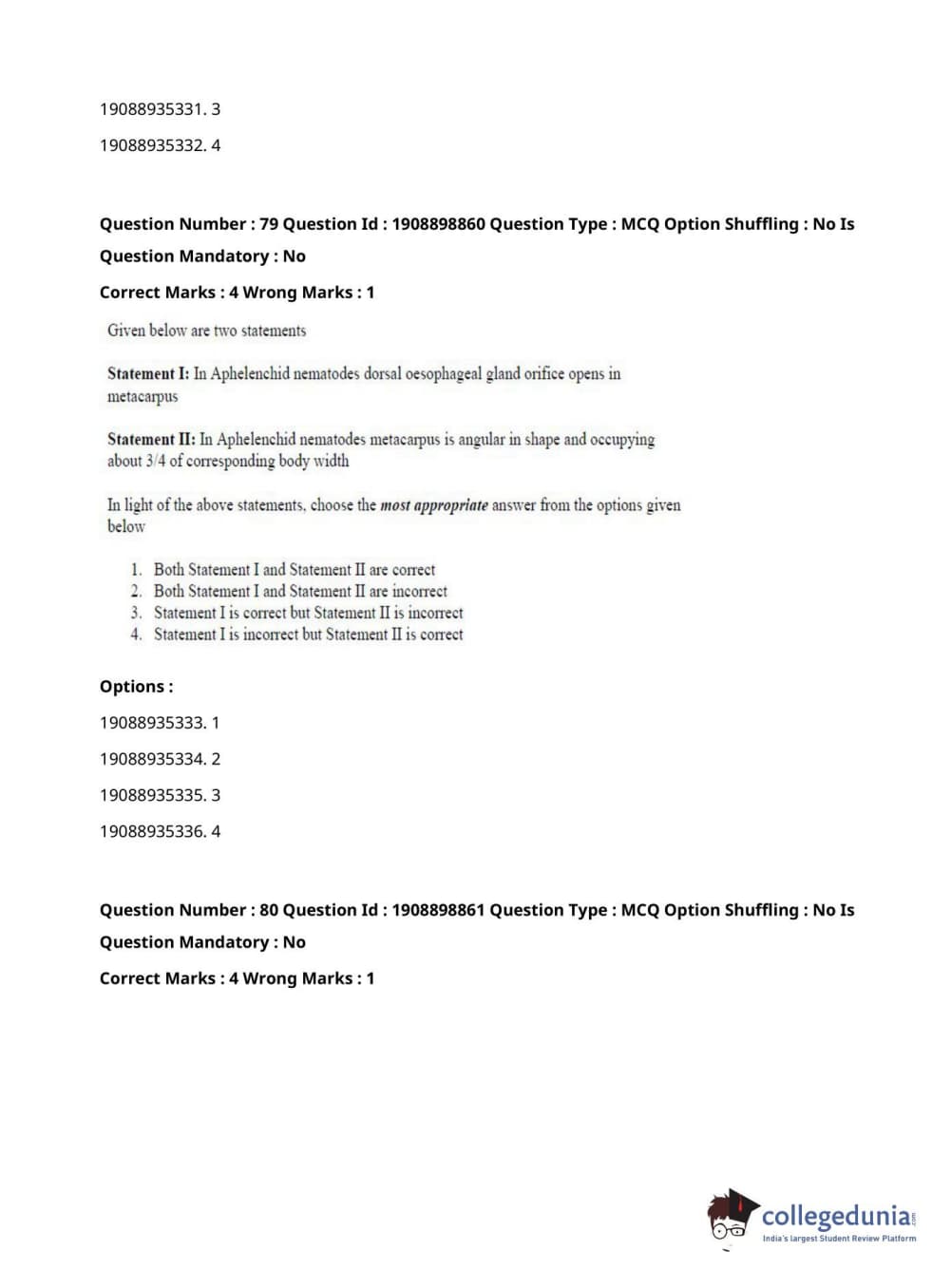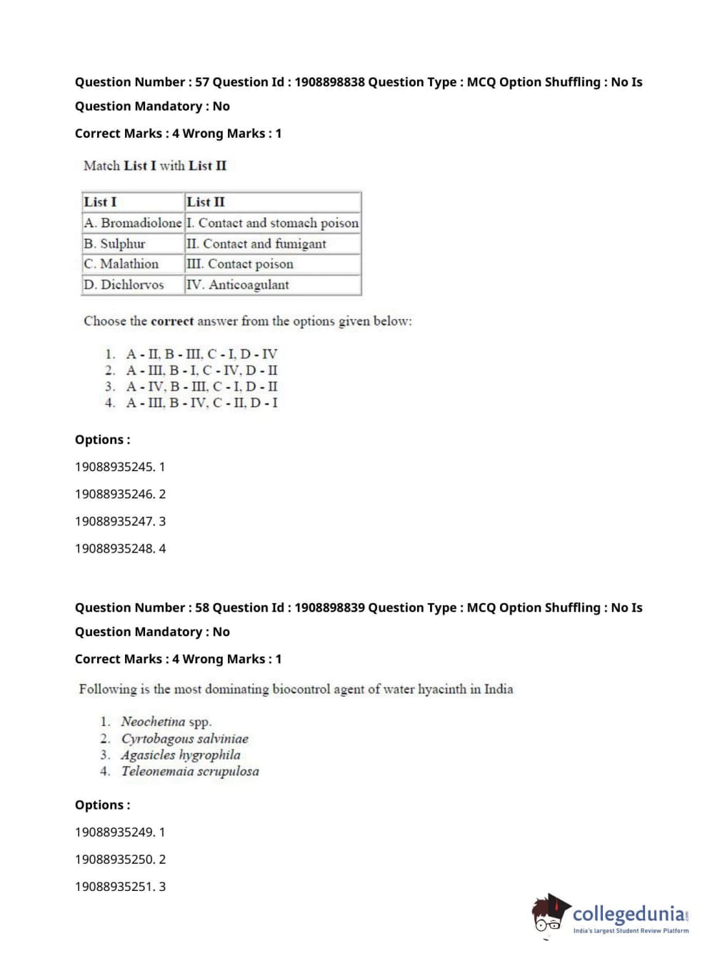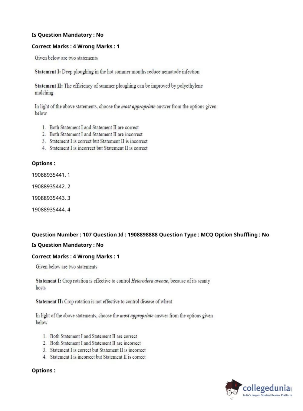 ICAR AIEEA 2021 JRF - NEMATOLOGY Question Paper with Answer Key PDFs Afternoon Session