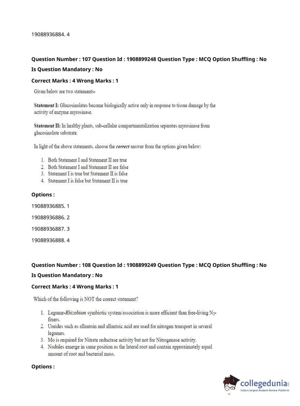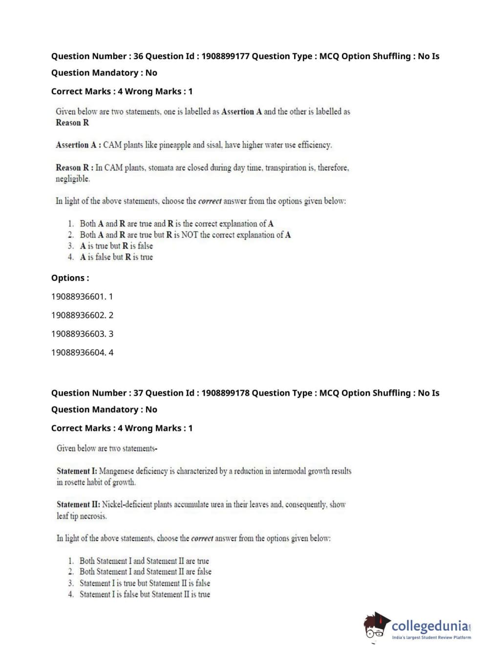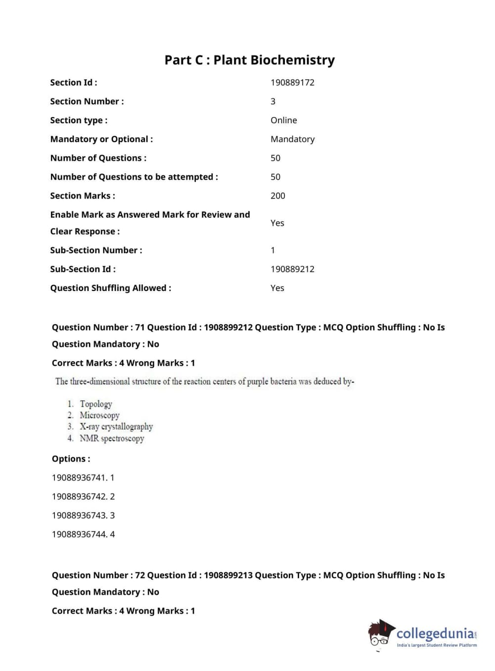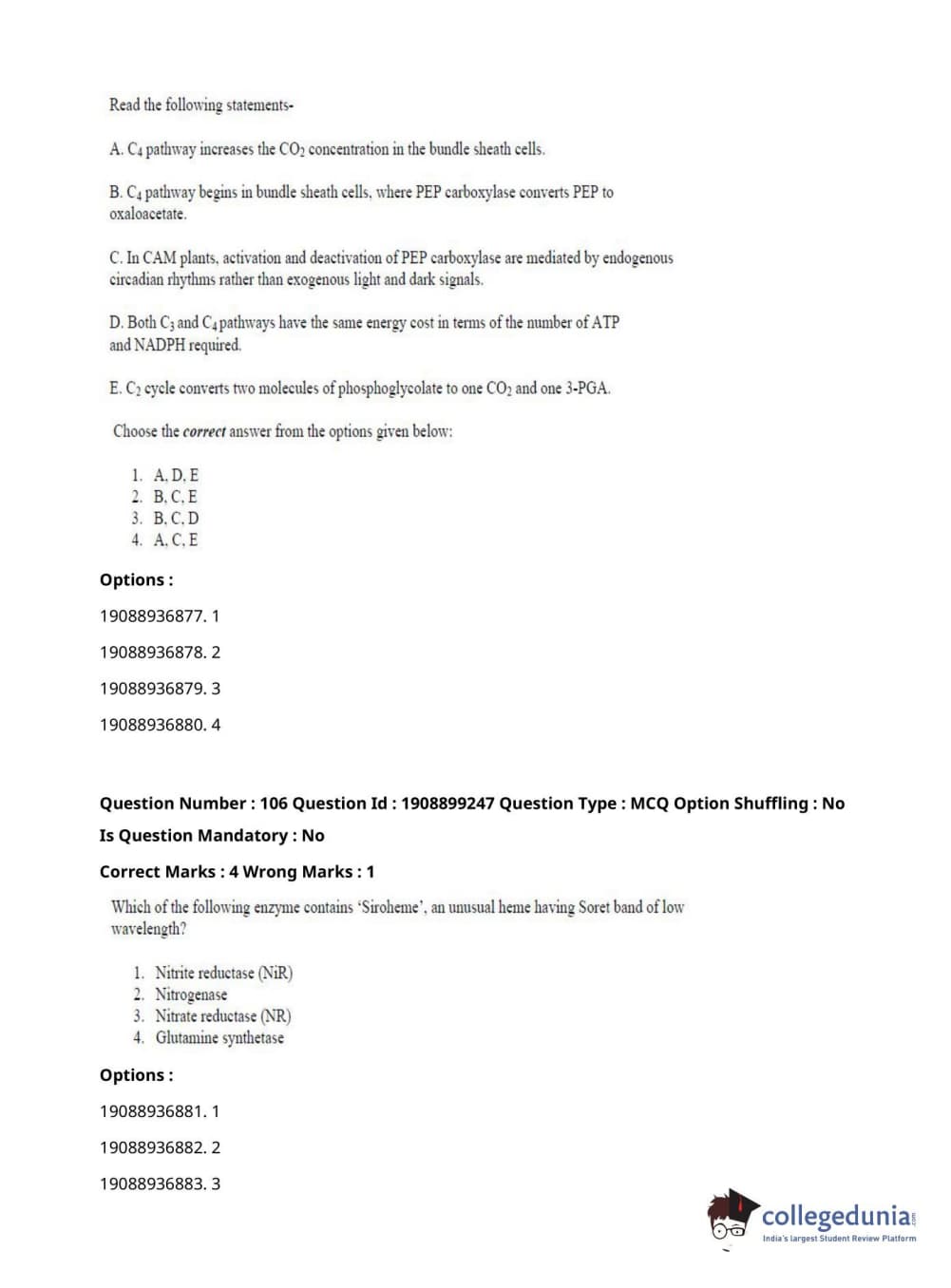 ICAR AIEEA 2021 JRF - PLANT BIOCHEMISTRY Question Paper with Answer Key PDFs Afternoon Session