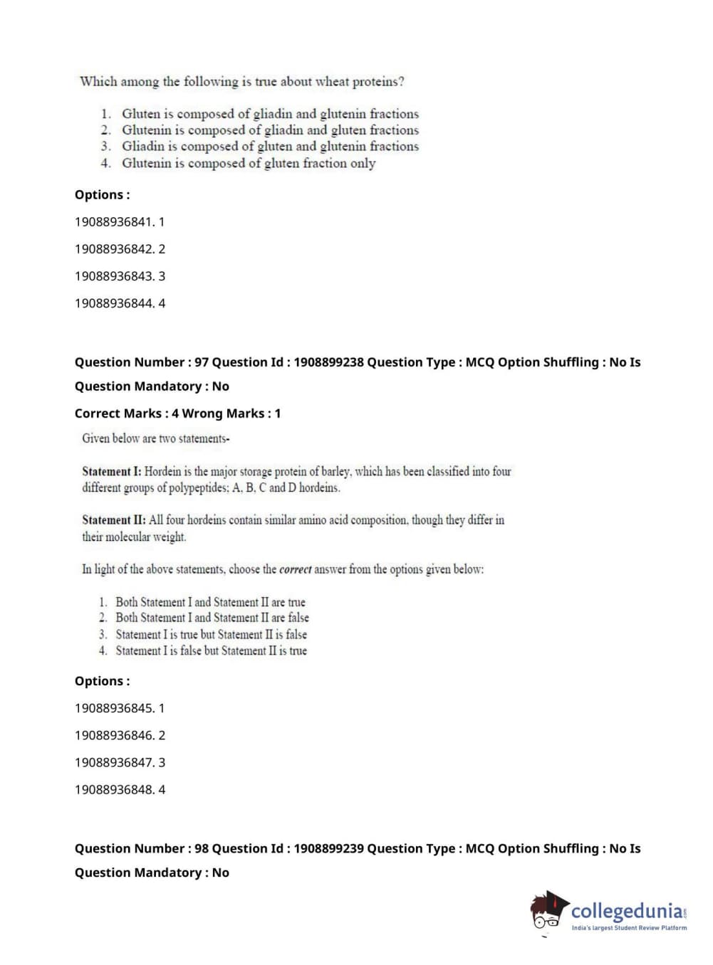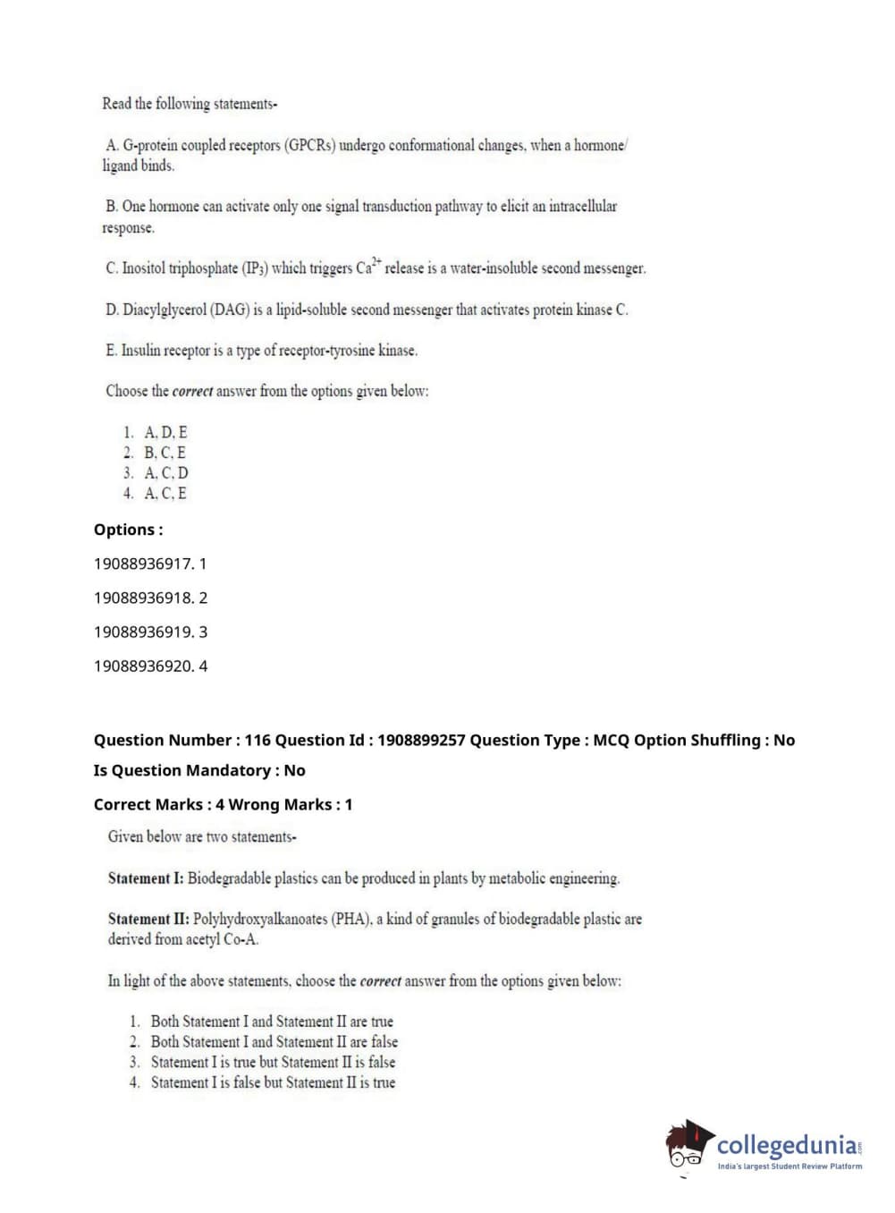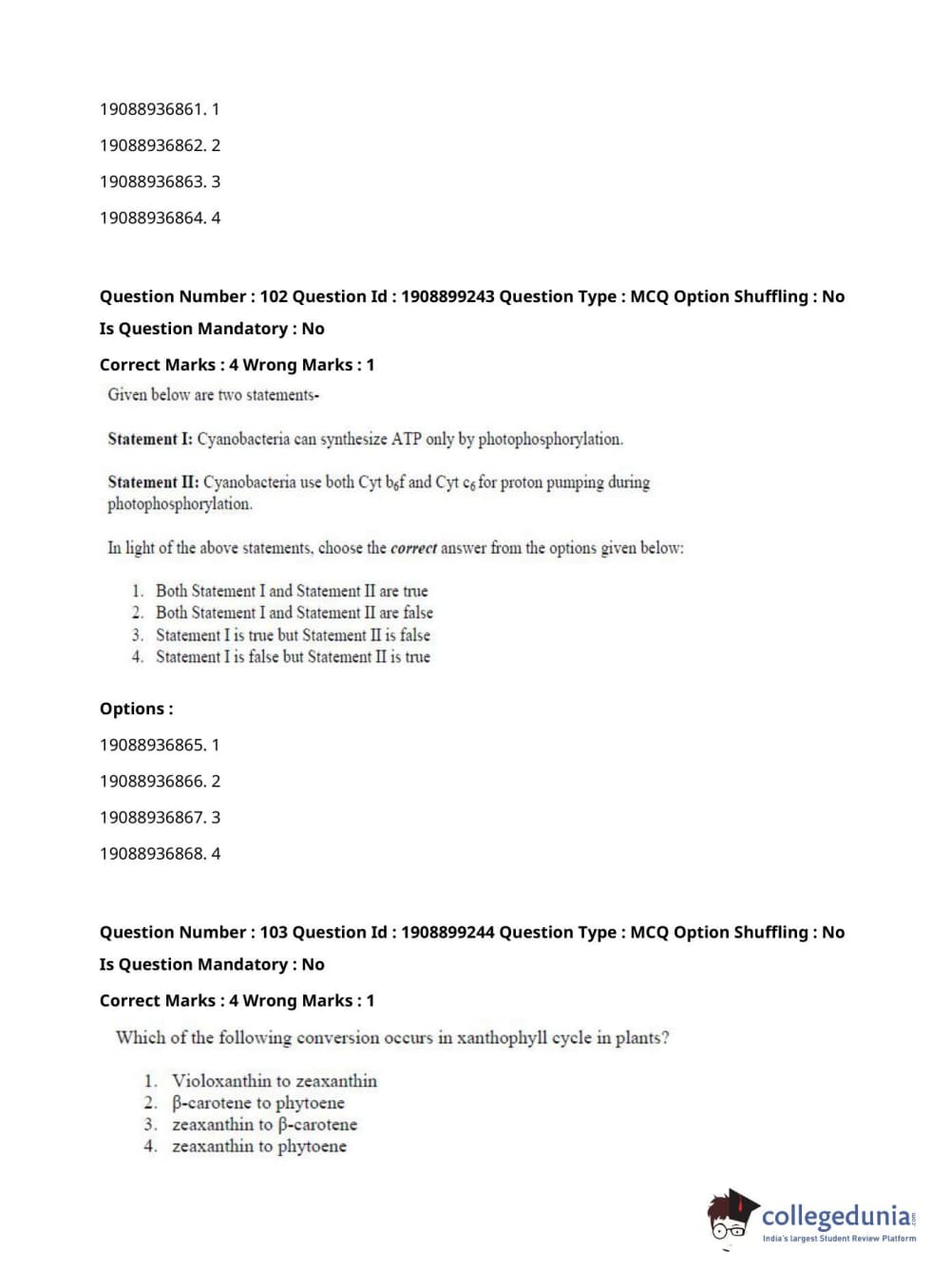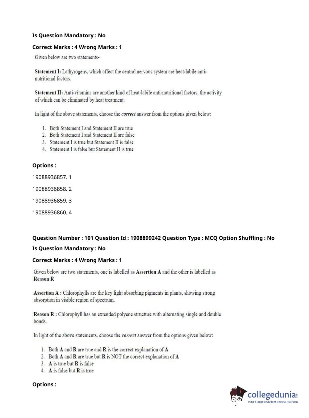 ICAR AIEEA 2021 JRF - PLANT BIOCHEMISTRY Question Paper with Answer Key PDFs Afternoon Session