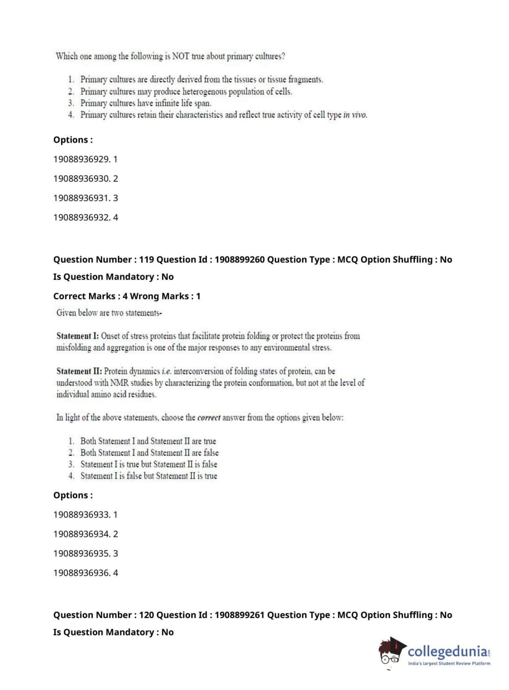 ICAR AIEEA 2021 JRF - PLANT BIOCHEMISTRY Question paper with answer key pdf conducted on September 17, 2021 in Afternoon Session is available for download. The exam was successfully organized by National Testing Agency (NTA). The question paper comprised a total of 120 questions.